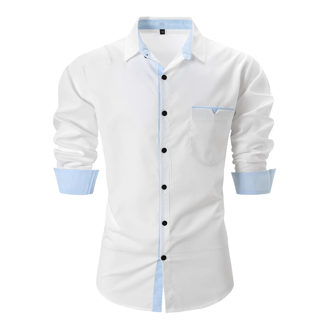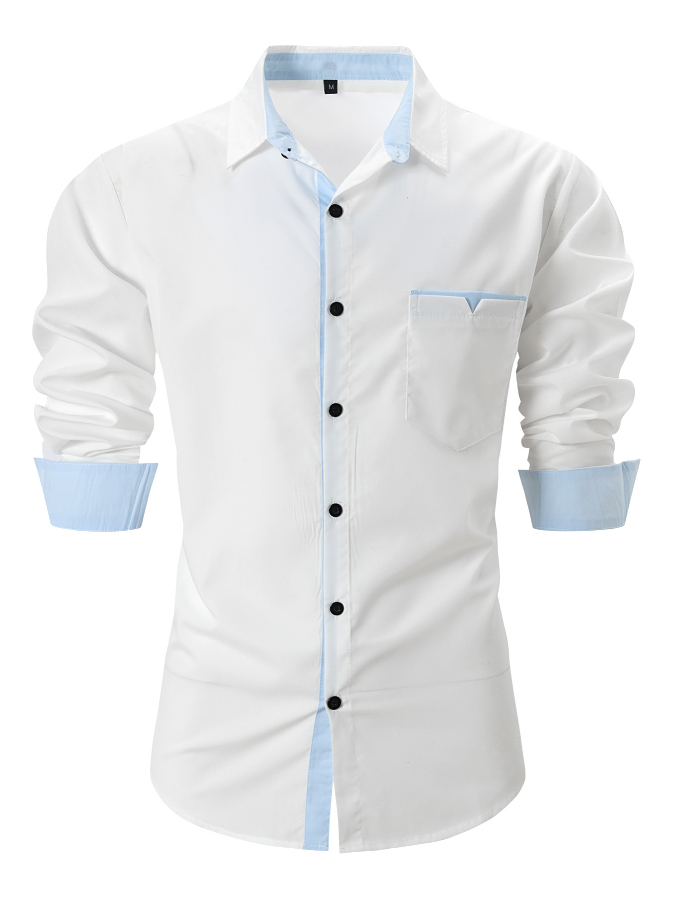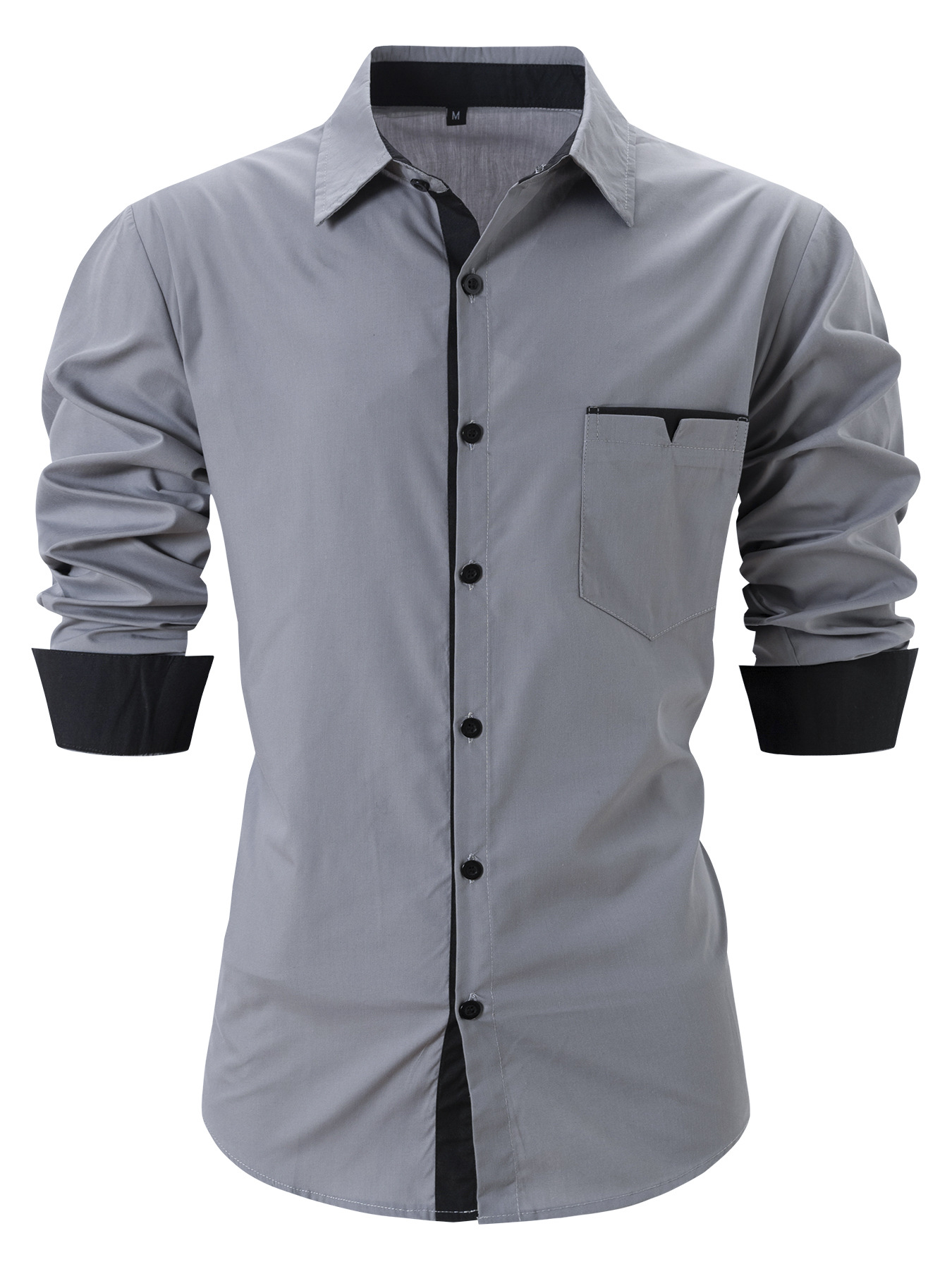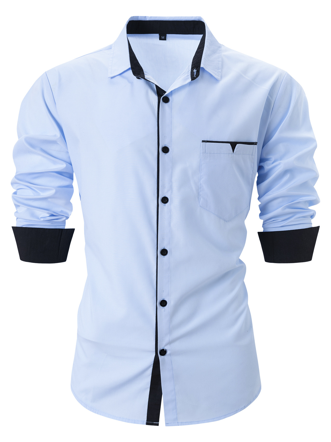 2025 크로스보더 유럽과 미국 패션 남성 봄, 가을 코튼 컬러 블록 포켓 라펠 슬림 캐주얼 남성 긴팔 셔츠