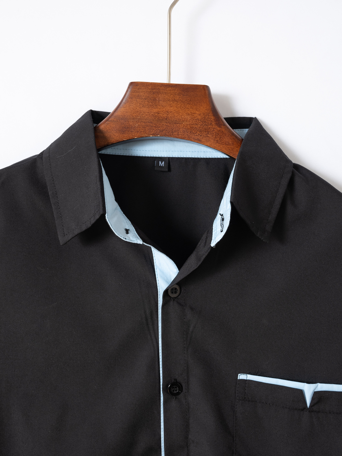 2025 크로스보더 유럽과 미국 패션 남성 봄, 가을 코튼 컬러 블록 포켓 라펠 슬림 캐주얼 남성 긴팔 셔츠스토어 가기