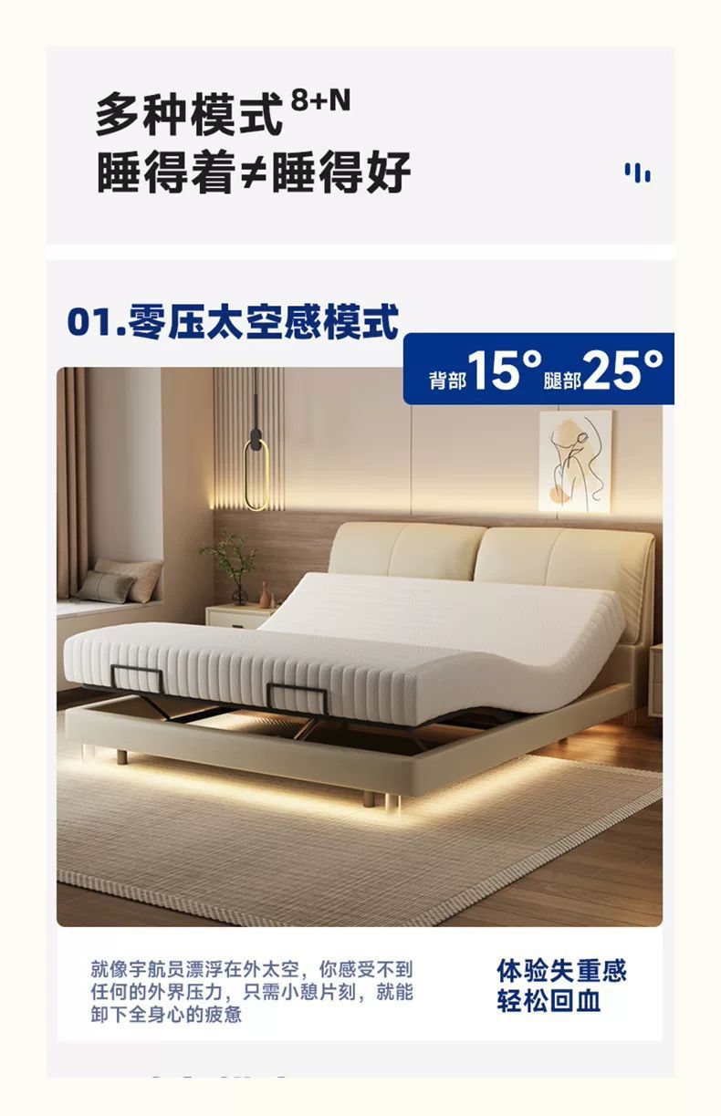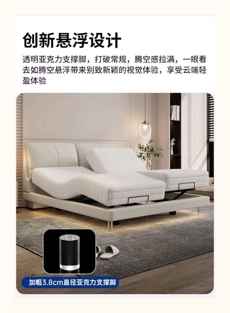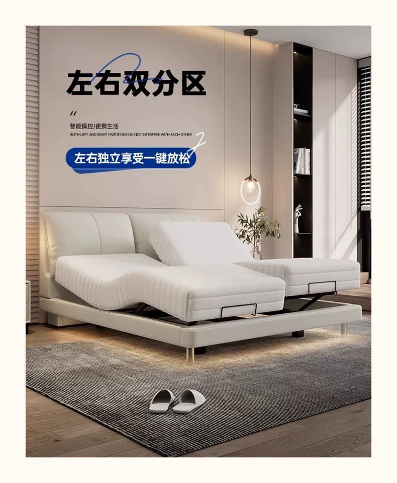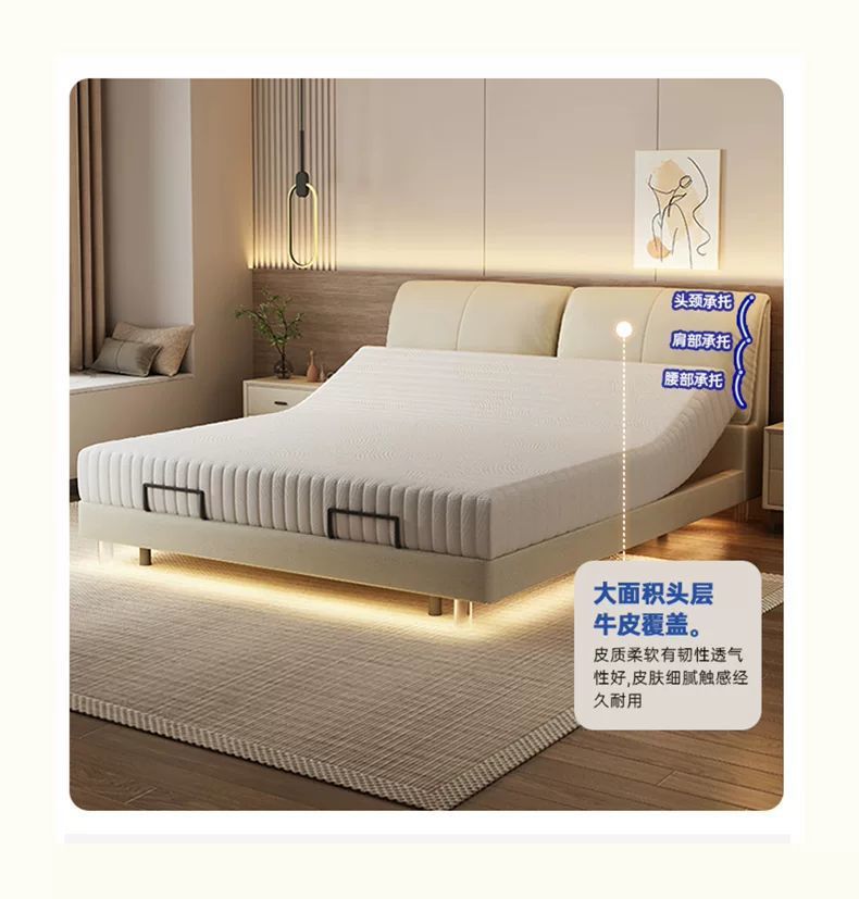 • 소가죽 침대 + 독일 OKIN 듀얼 모터 + 제로 압력 스폰지 매트리스