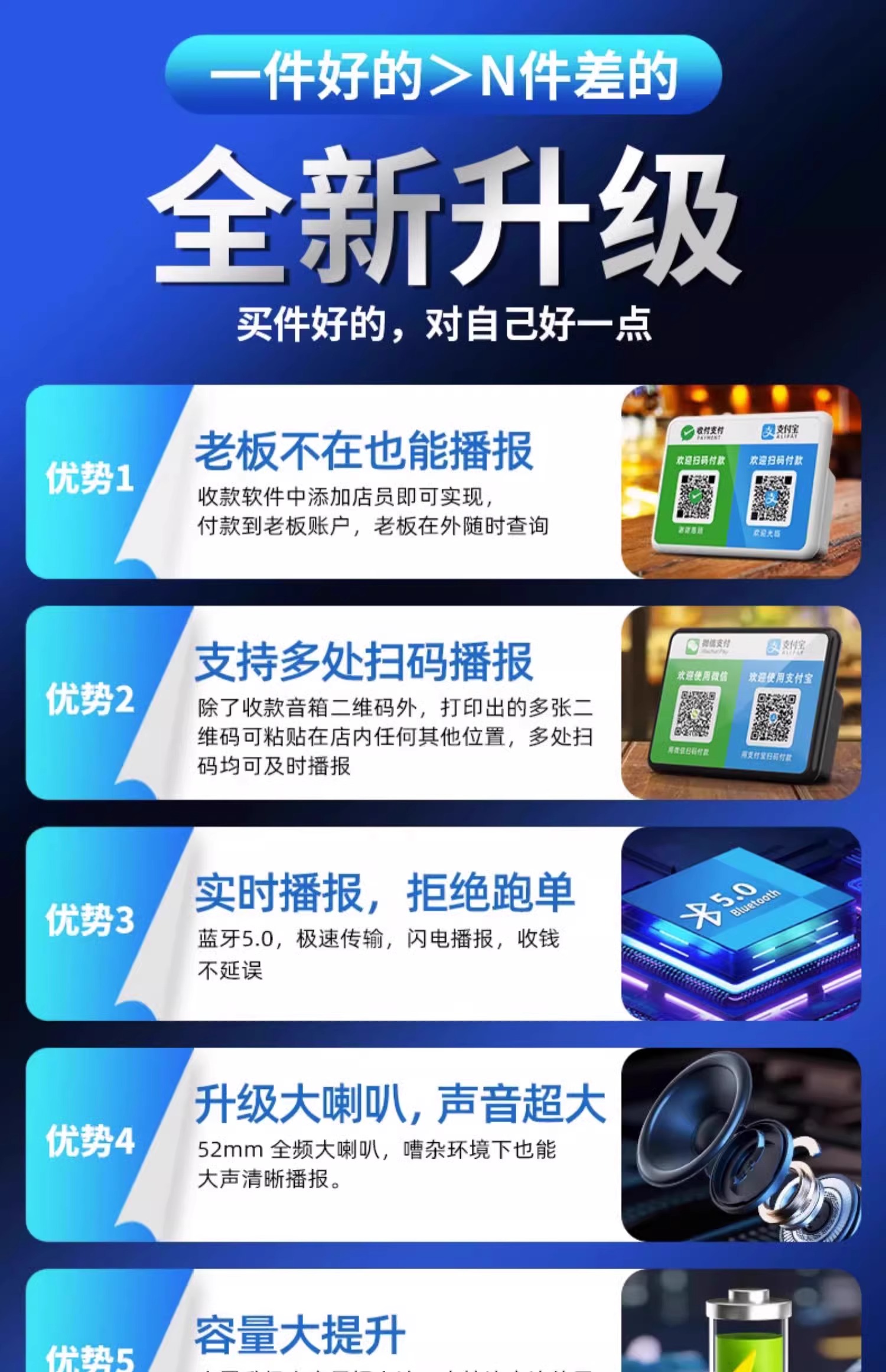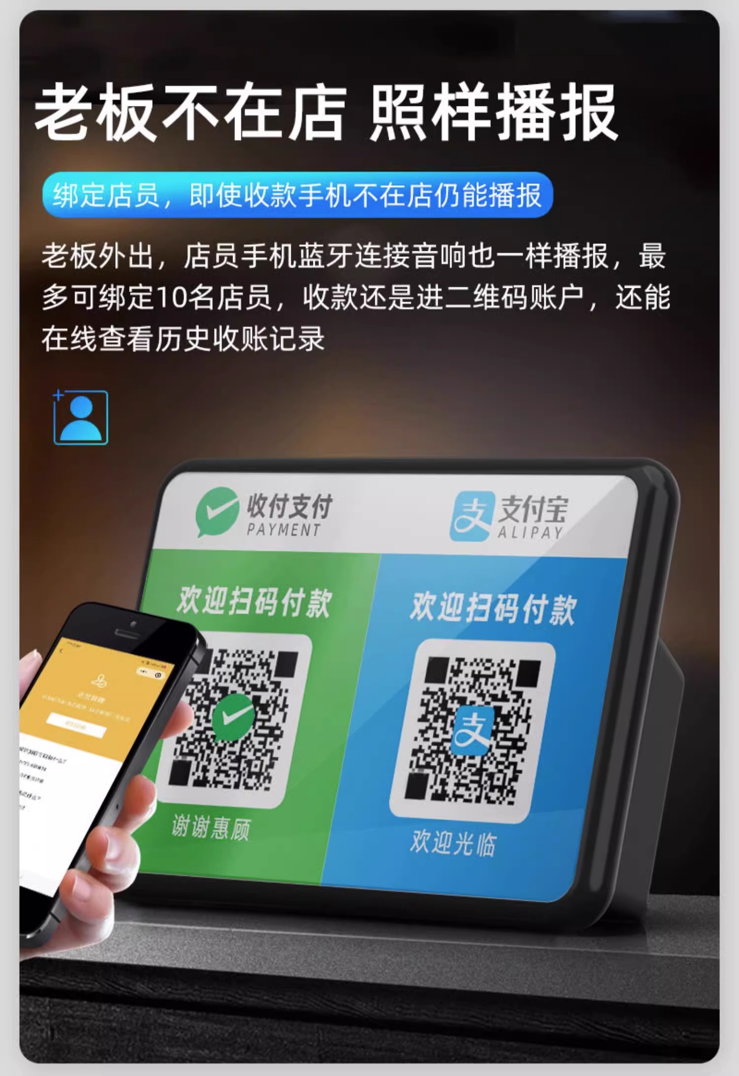 상점의 WeChat 결제 음성 방송기, 결제 계산, Bluetooth 오디오, Alipay QR 코드 스캔 알림 스피커스토어 가기