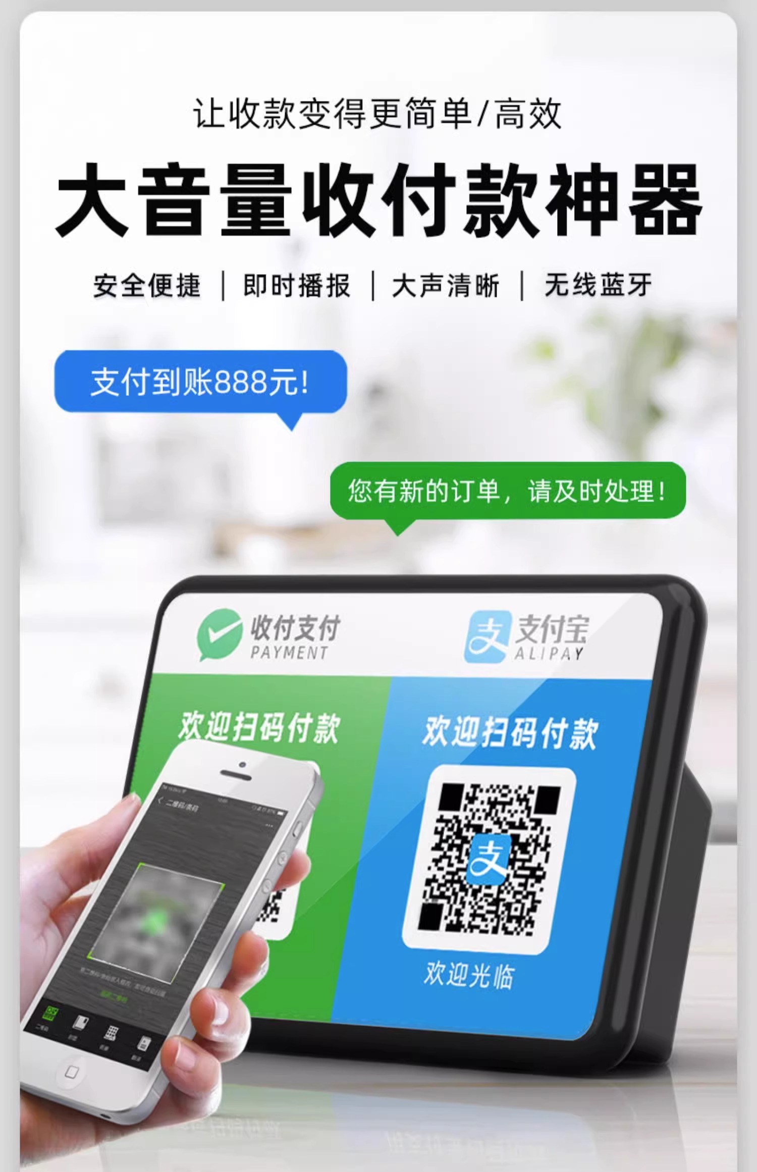 상점의 WeChat 결제 음성 방송기, 결제 계산, Bluetooth 오디오, Alipay QR 코드 스캔 알림 스피커
