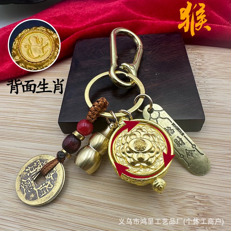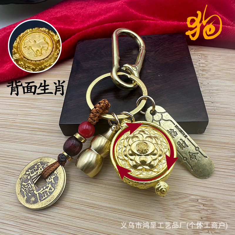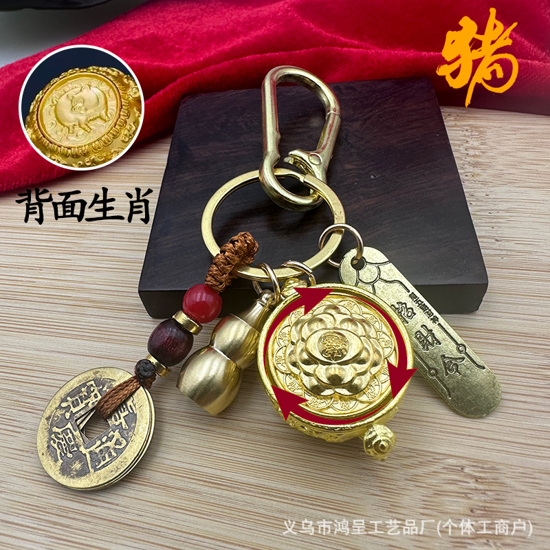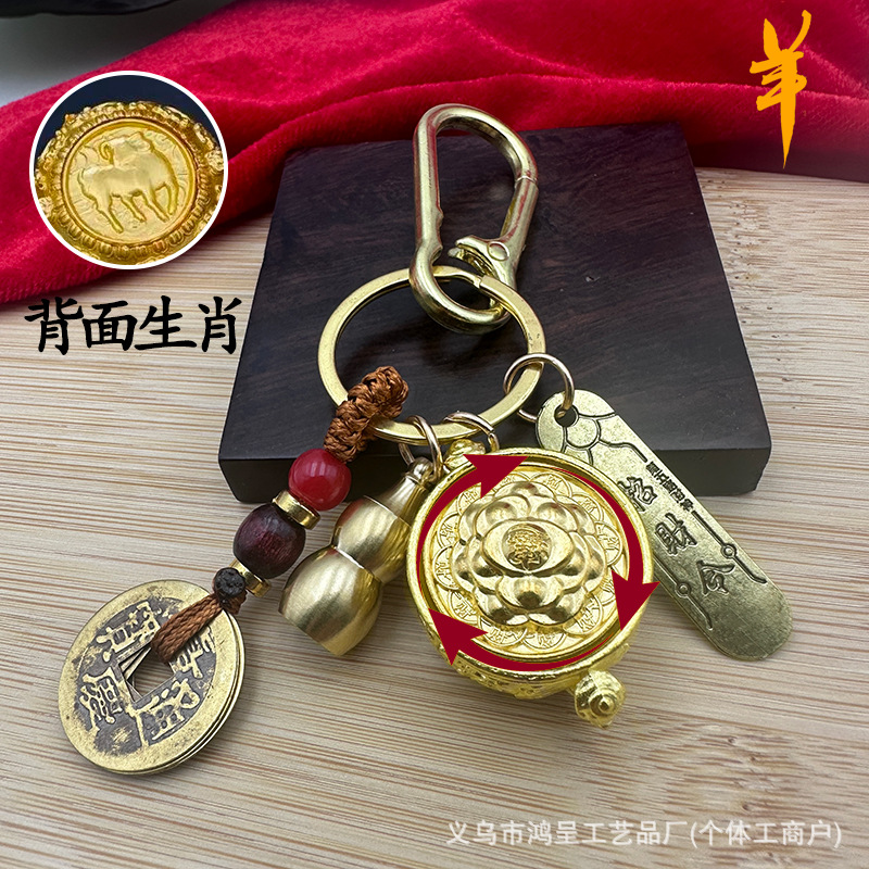 새로운 Wufu 골동품 열쇠 고리, 행운의 꽃 열쇠 고리, 12개의 별자리 펜던트, 보물 그릇스토어 가기