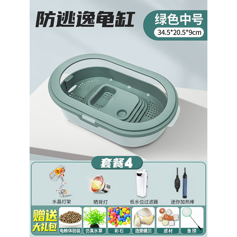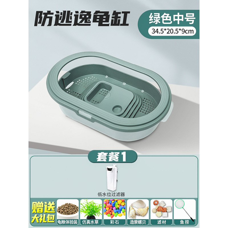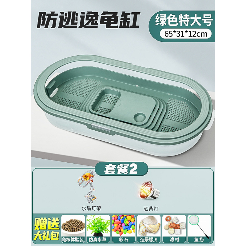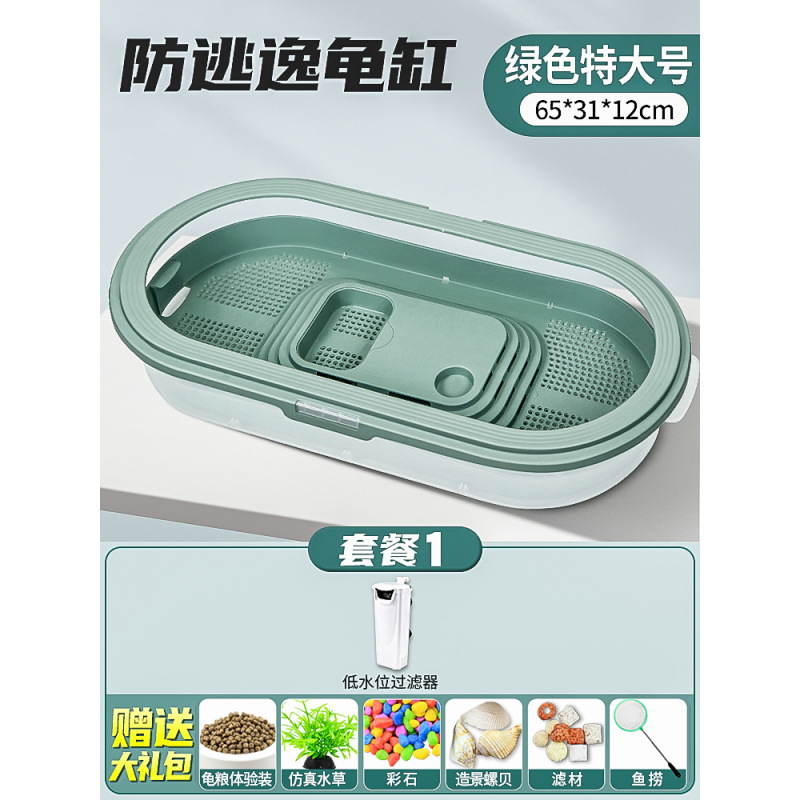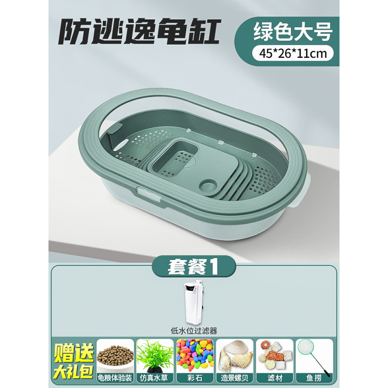 • 배수 거북이 분지 초대형 녹색 + 필터 + 사육 선물 팩