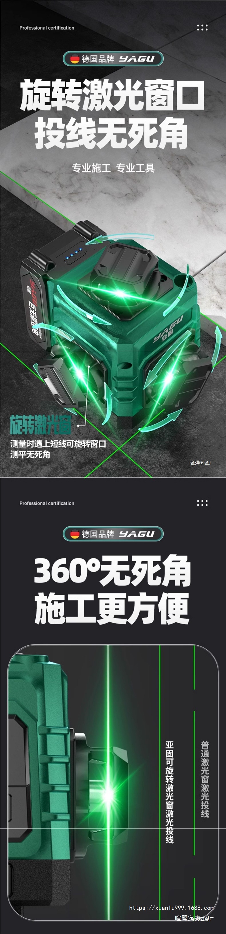 Yagu 12 라인 녹색광 고정밀 강한 빛 얇은 라인 레벨 레이저 실외 자동 레벨링 적외선 평면 Jinye스토어 가기