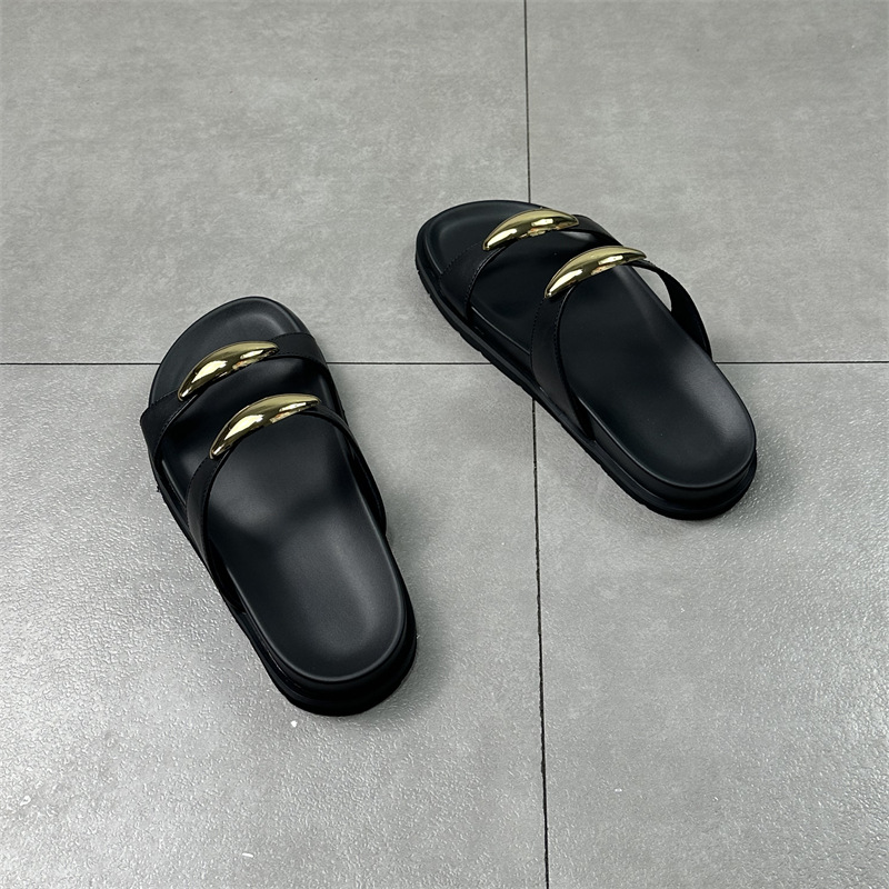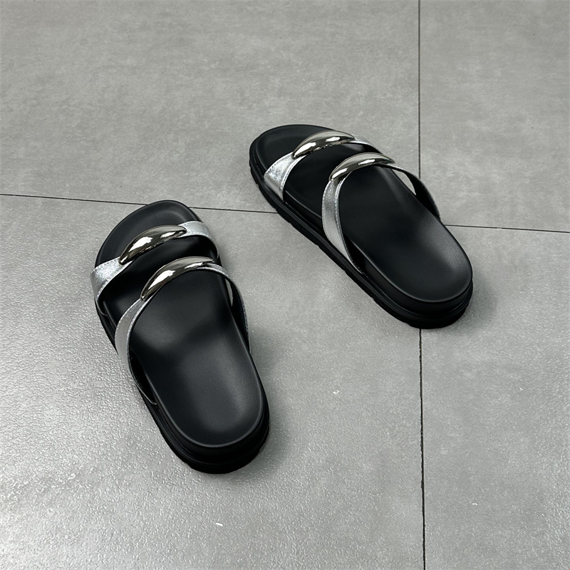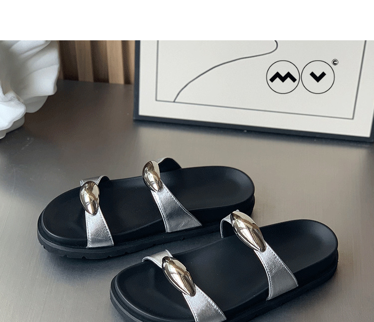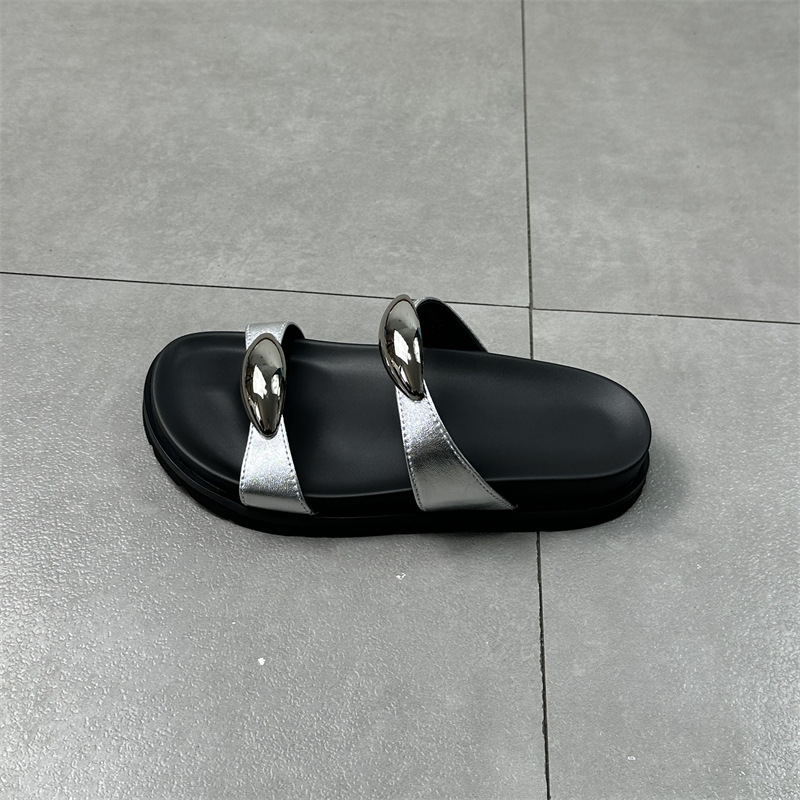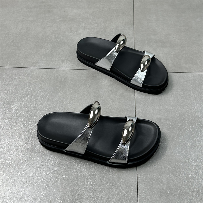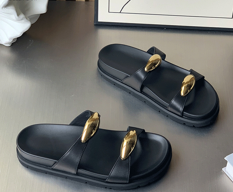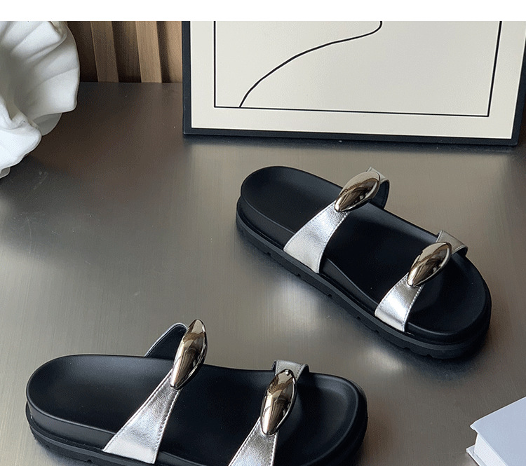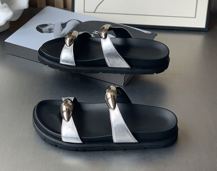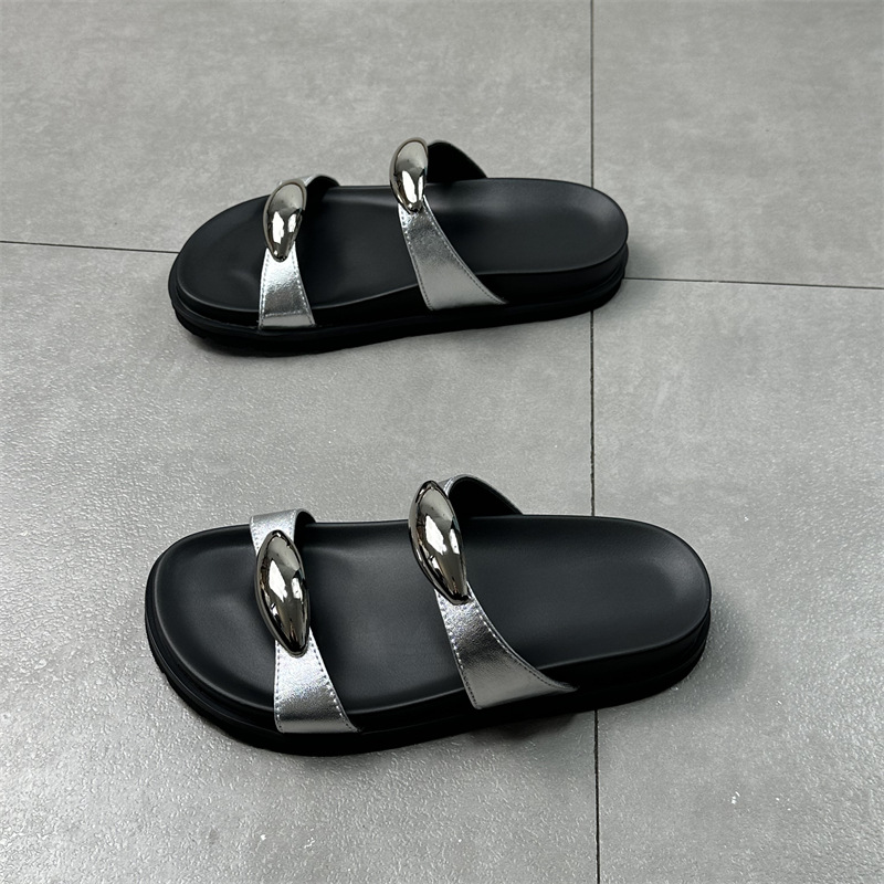 여성용 여름 캐주얼 아우터웨어 2025 새로운 스타일의 두꺼운 밑창 슬리퍼 스커트 금속 편안한 부드러운 밑창 비치 오픈 토 샌들
