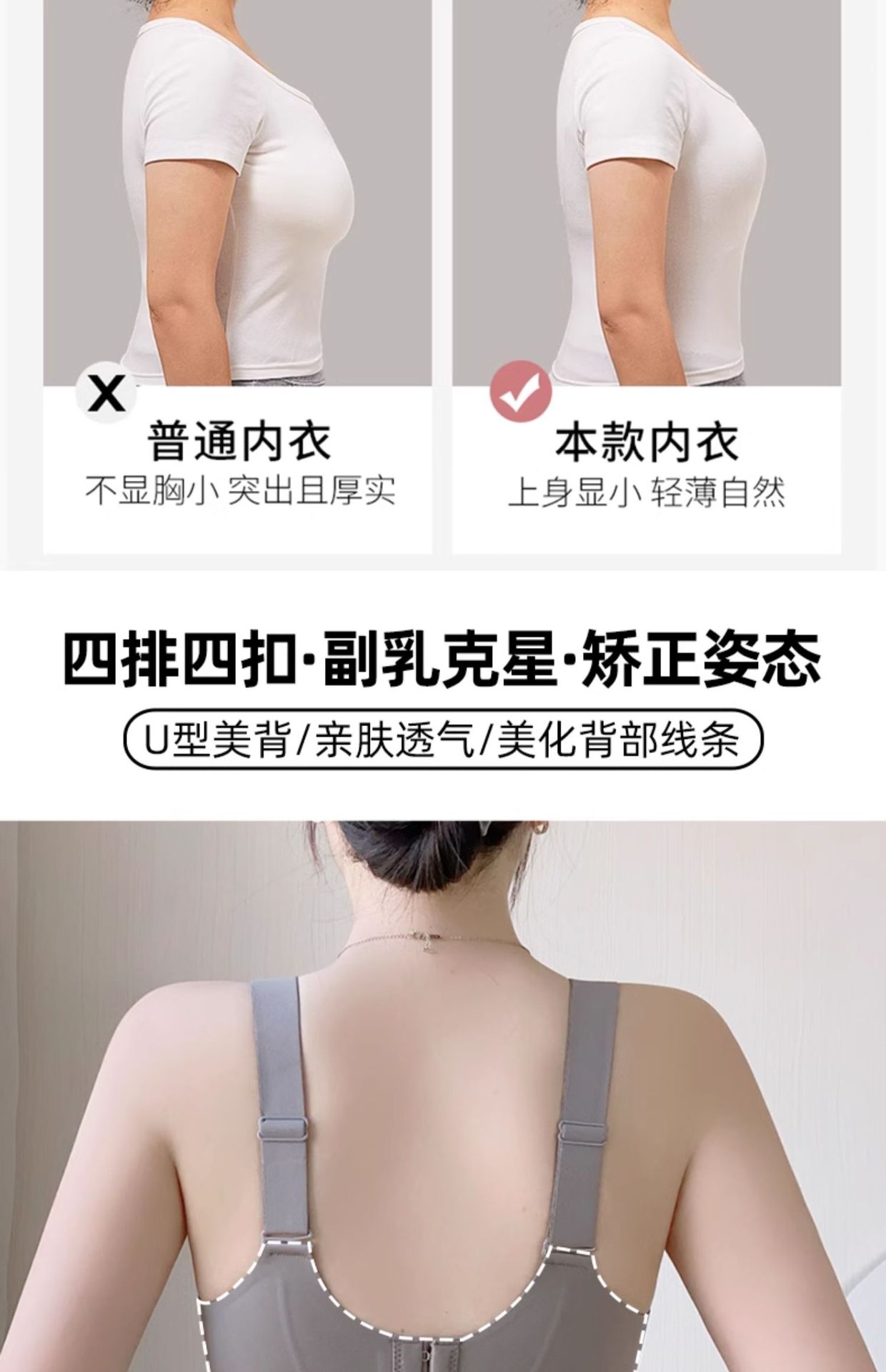 여성용 심리스 큰가슴 슬리밍 속옷, 푸쉬업, 처짐방지, 보조가슴축소, 조절형 고정컵 브라, 얇은 스타일스토어 가기
