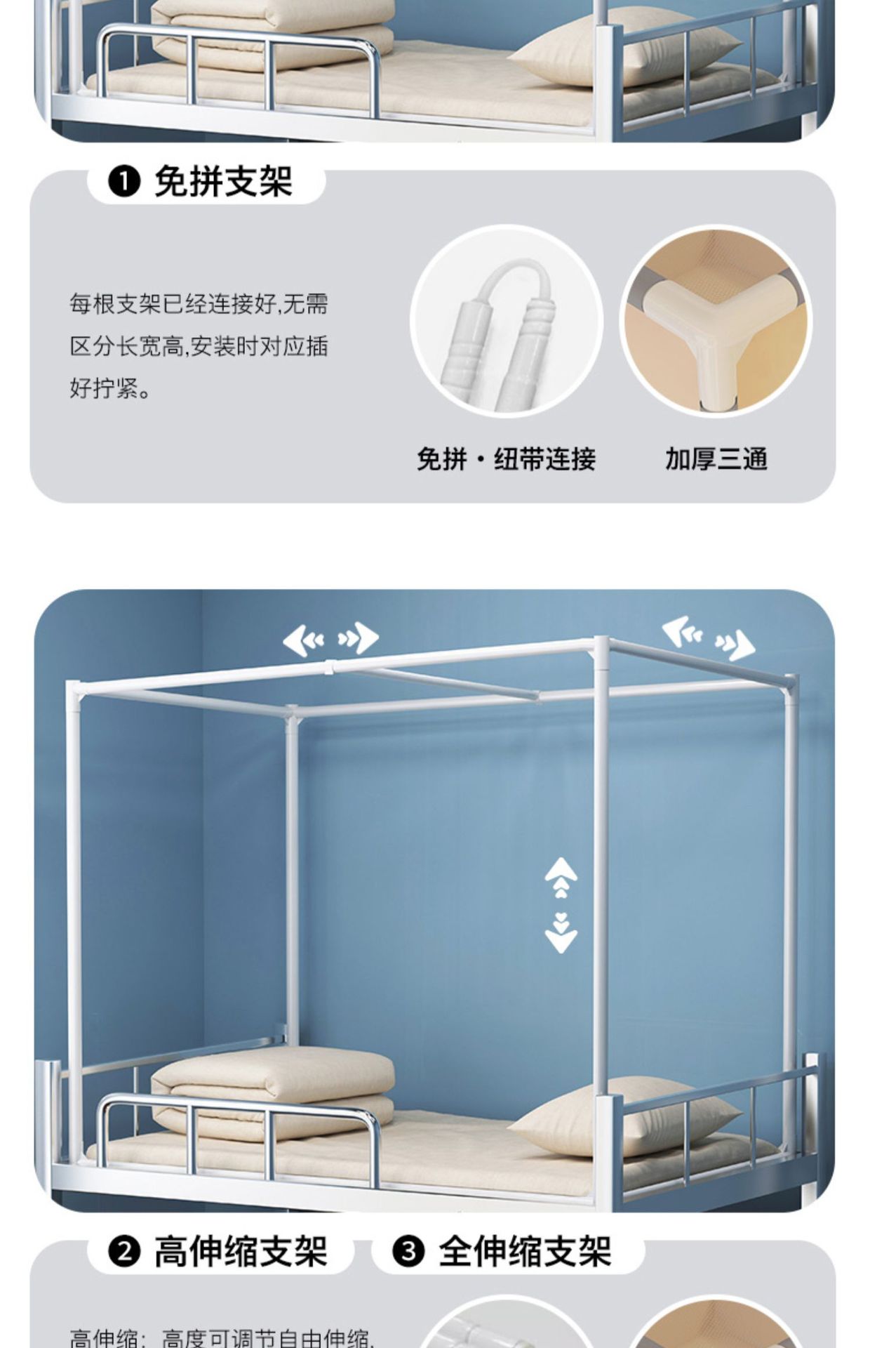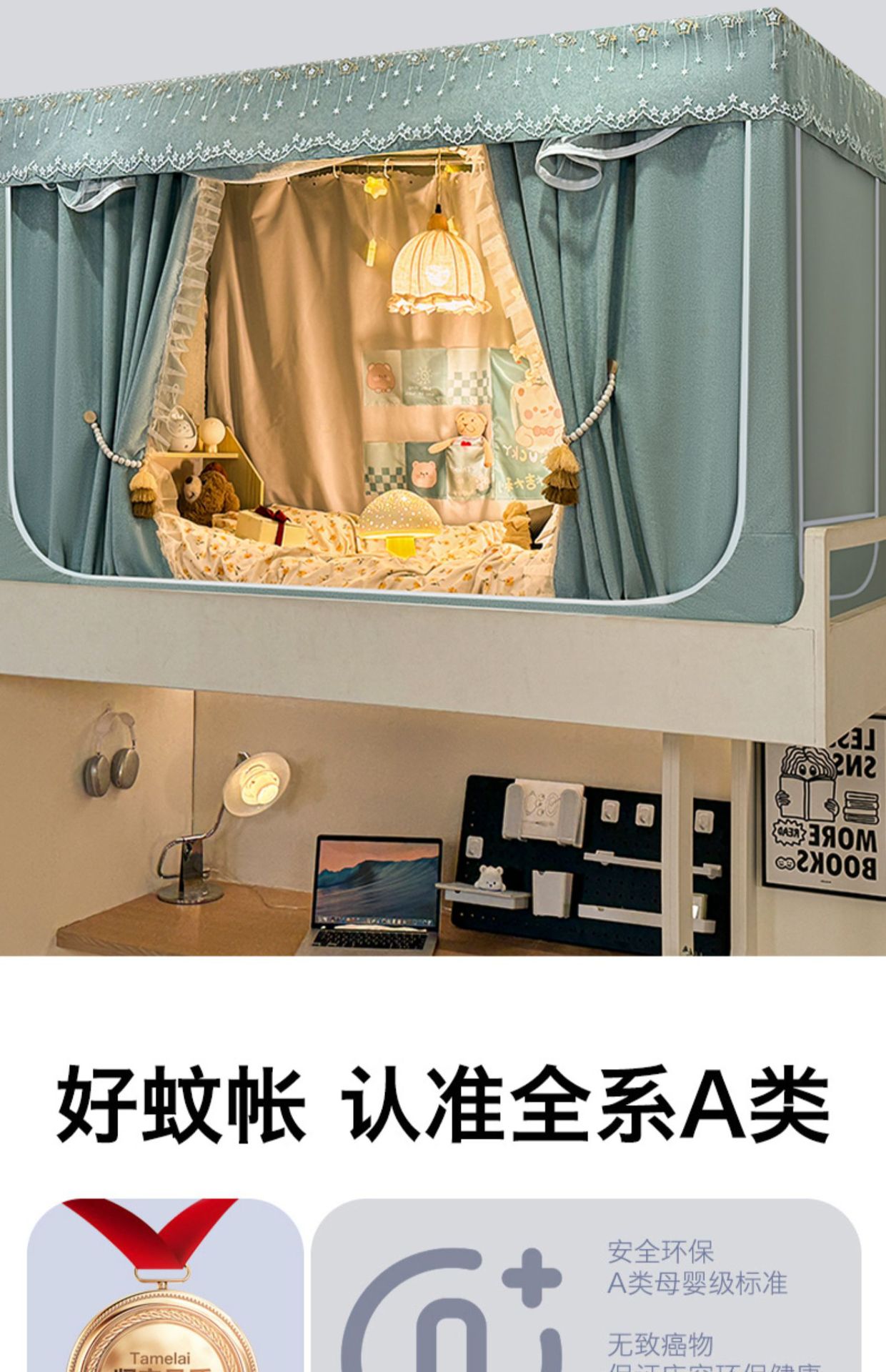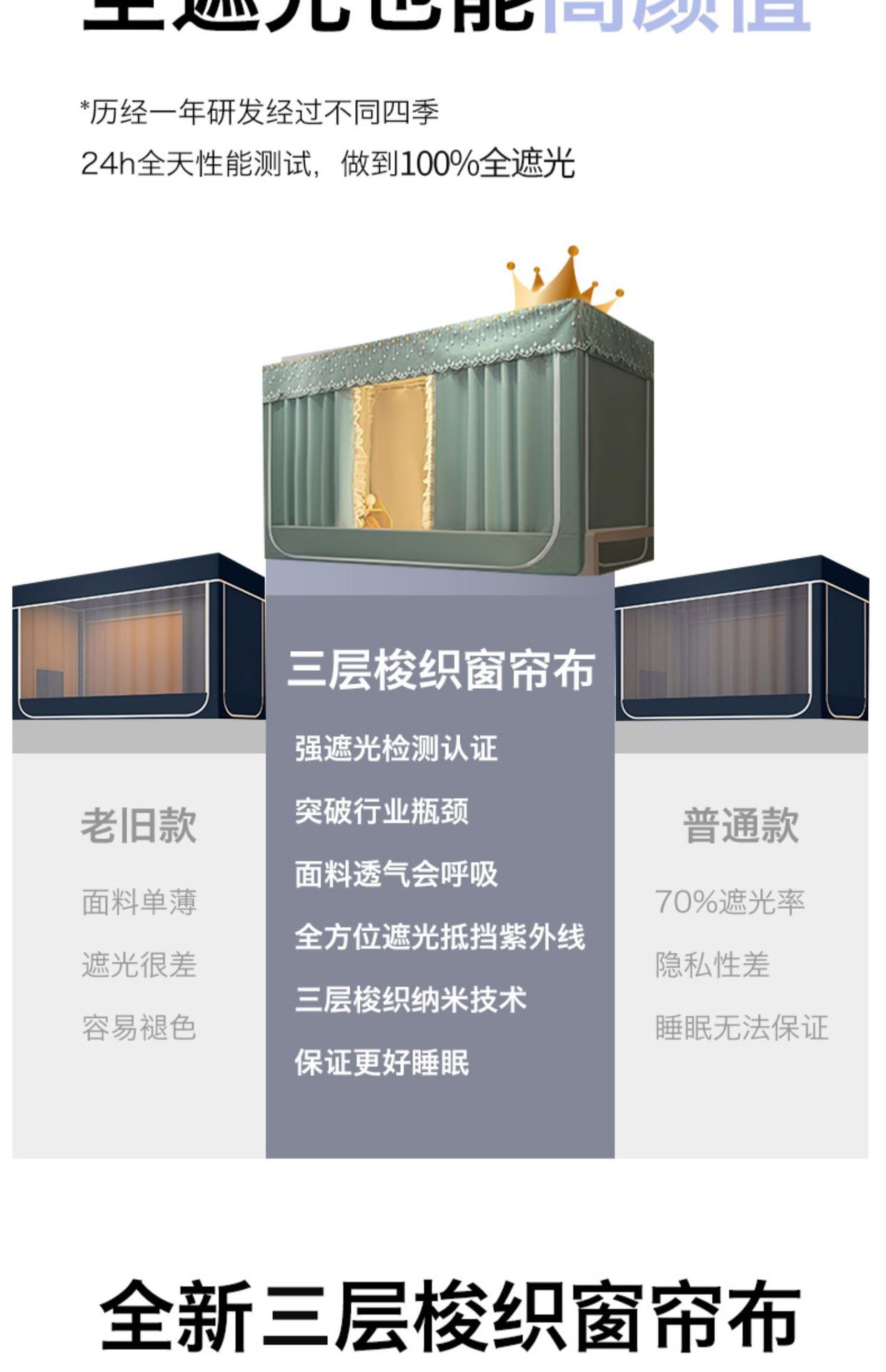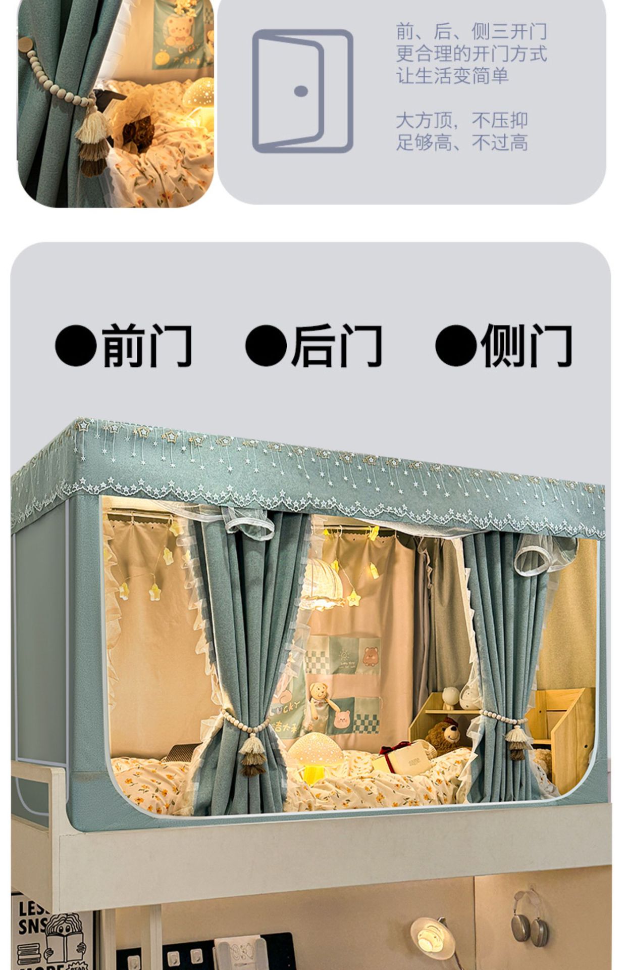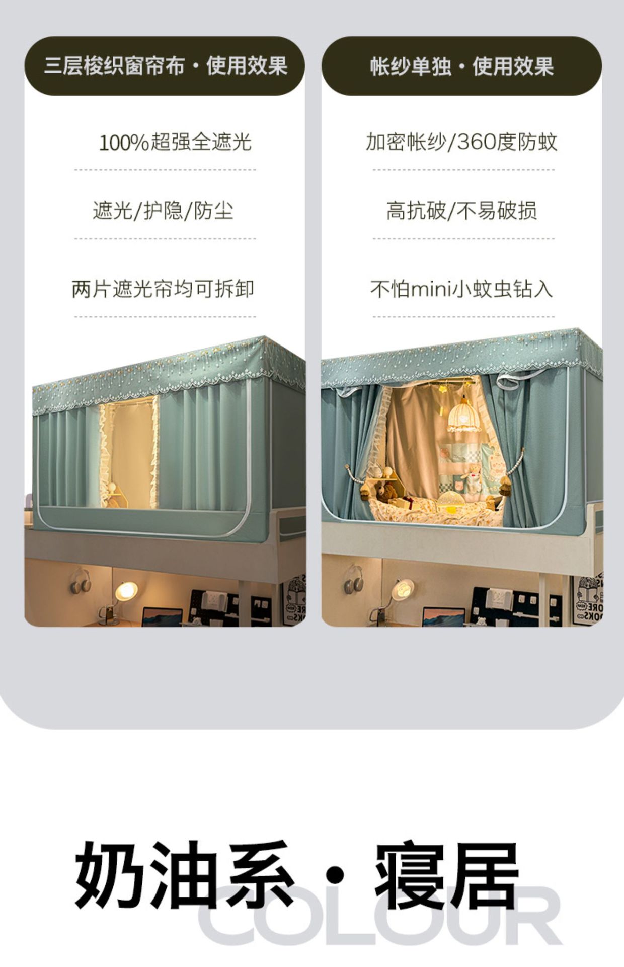 대학생 기숙사 일체형 모기장 2025 신형 싱글 침대 두꺼운 침대 커튼 90x190 이층 침대 커튼