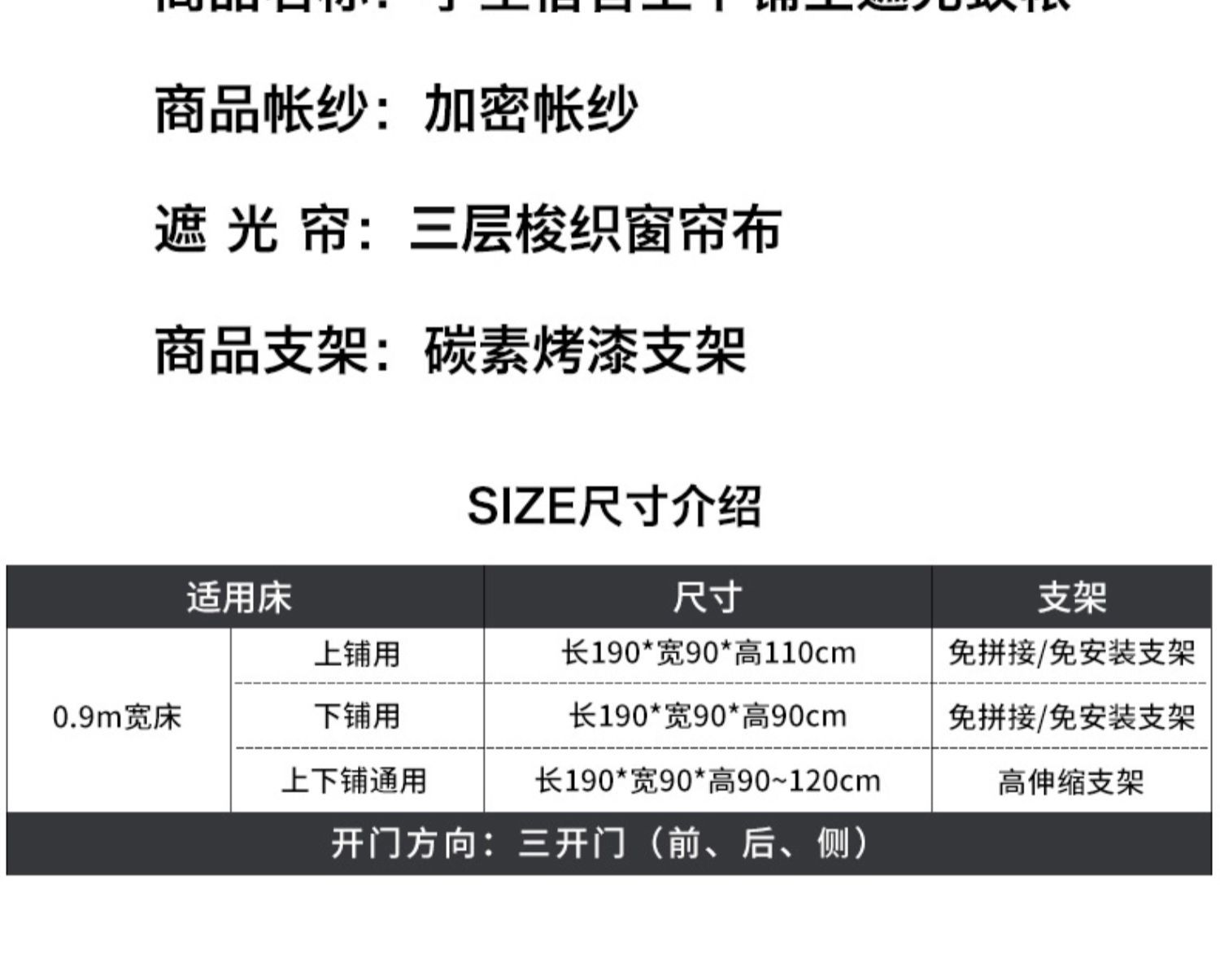 • 0.9m 침대 [높은 하단 침대 - 단일 도어] 폭 90* 길이 190* 높이 90 [게으른 분들을 위해 설치 브래킷이 필요 없으며 열어서 사용할 수 있습니다]