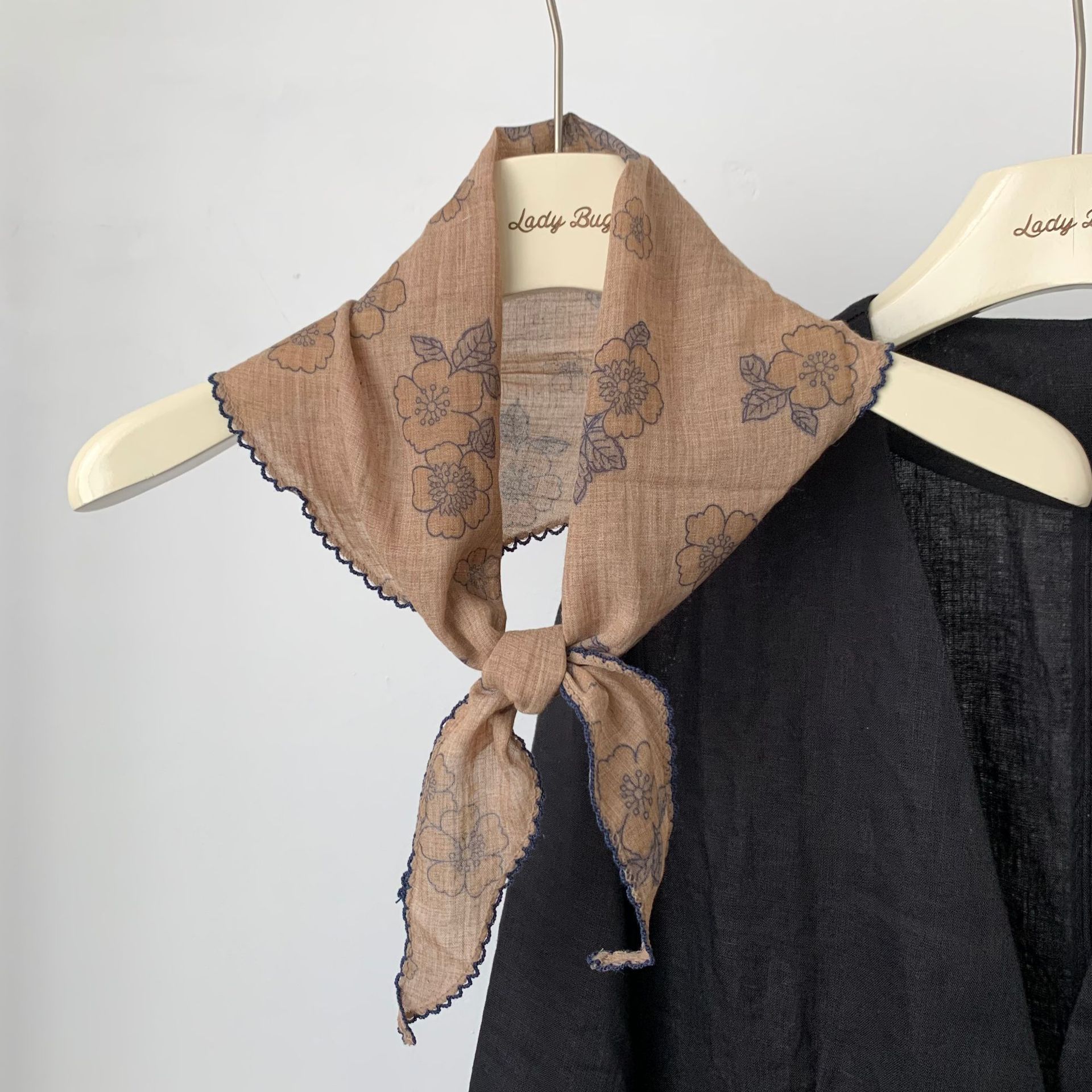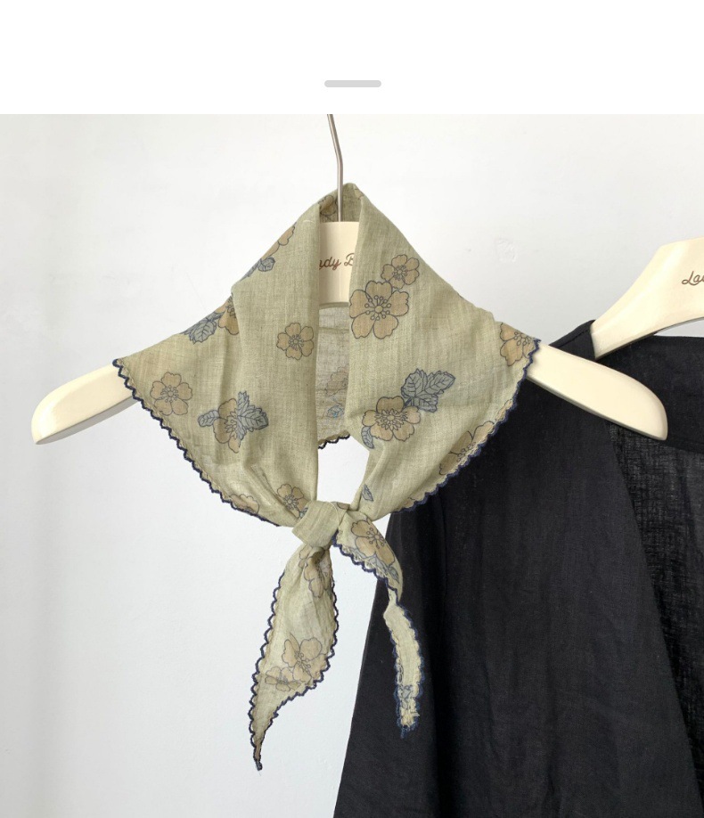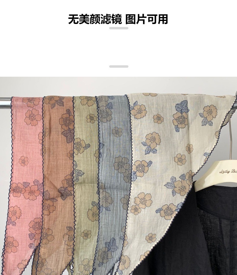 여성을위한 복고풍 면화 및 린넨 중국 스타일 꽃 삼각형 스카프 여름 얇은 Hanfu 의상 장식 실크 스카프 다용도 작은 목도리