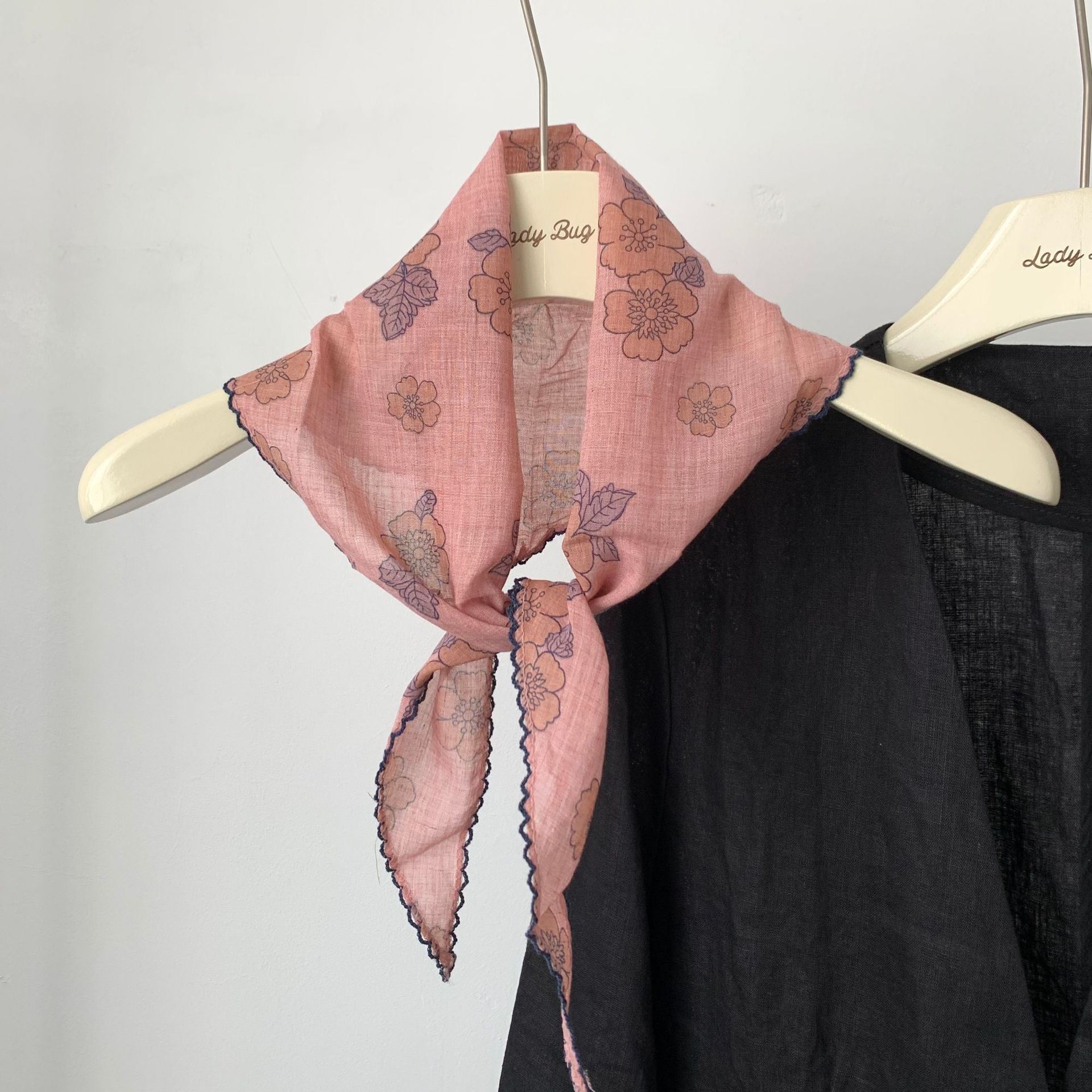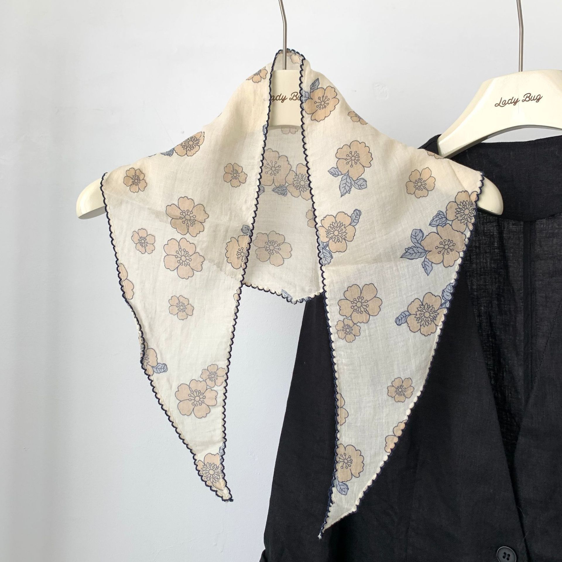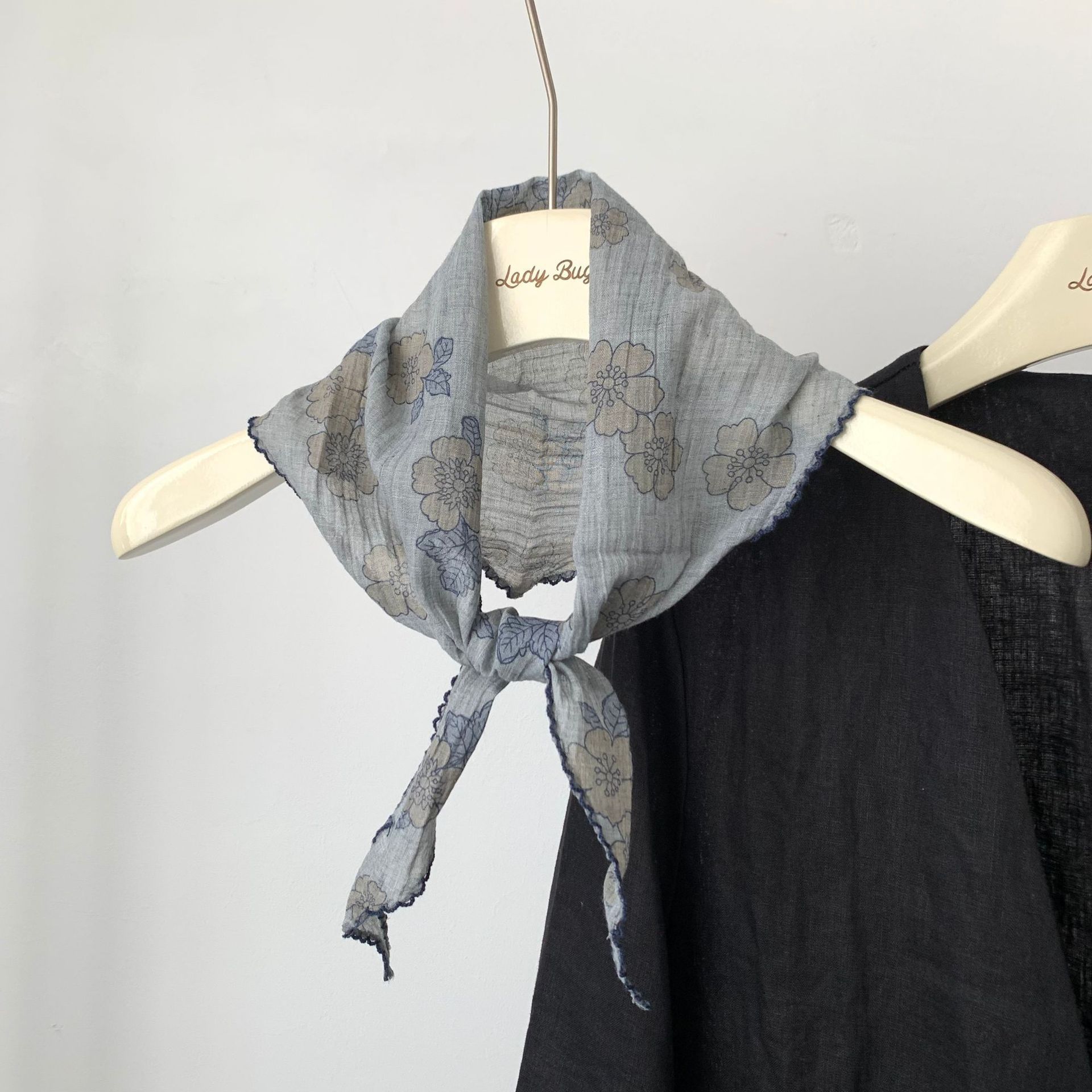 여성을위한 복고풍 면화 및 린넨 중국 스타일 꽃 삼각형 스카프 여름 얇은 Hanfu 의상 장식 실크 스카프 다용도 작은 목도리