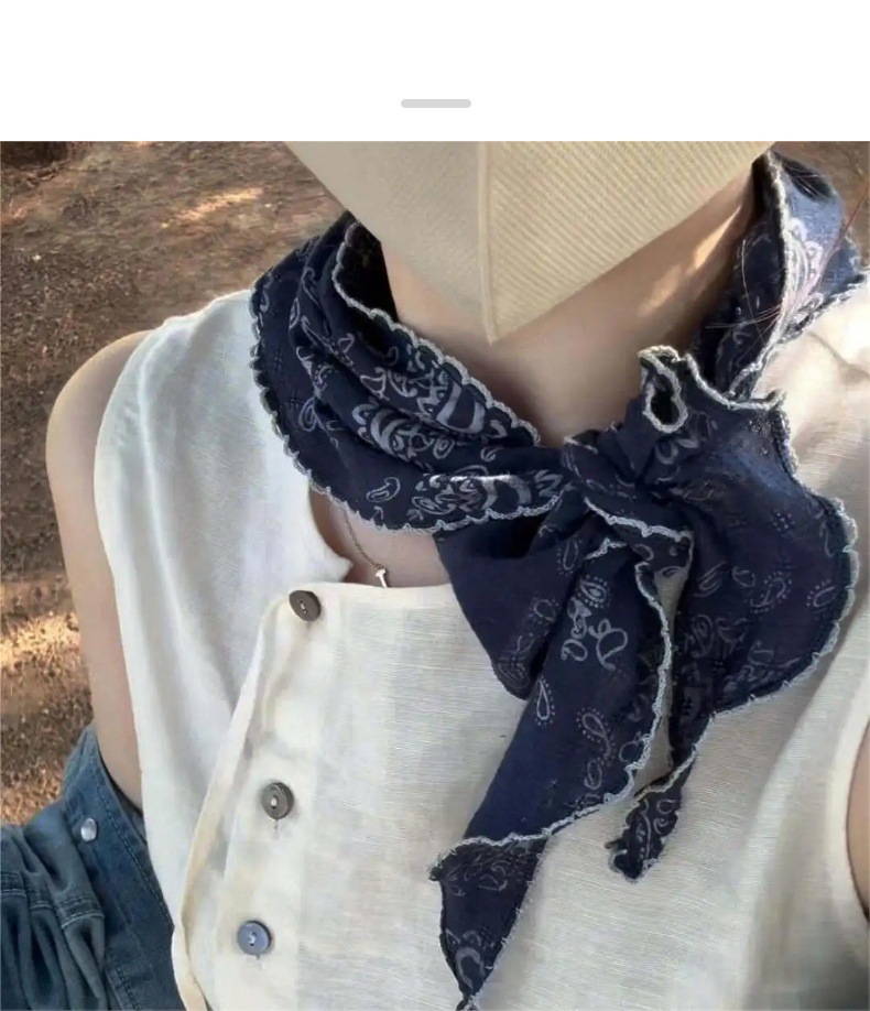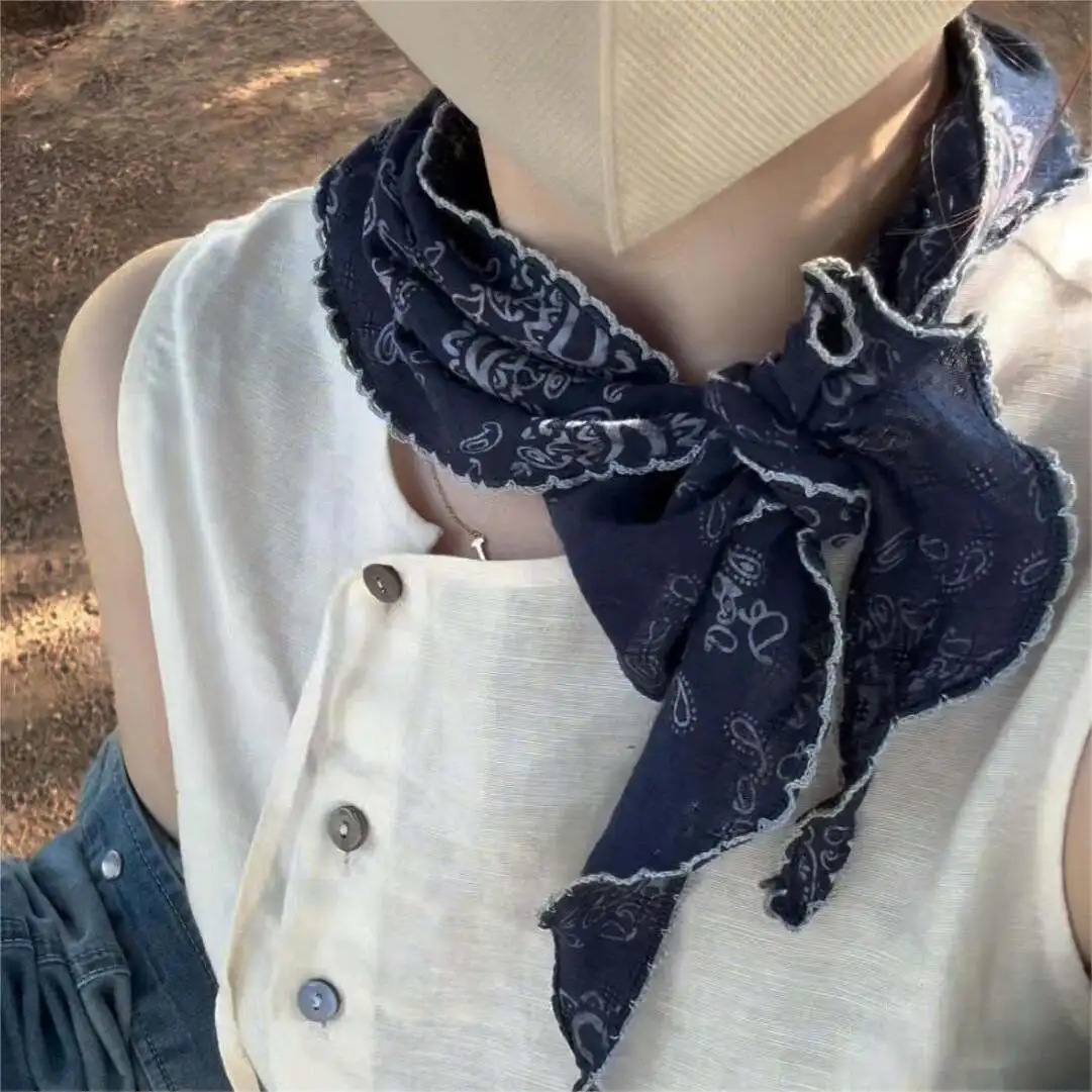 여성을위한 복고풍 면화 및 린넨 중국 스타일 꽃 삼각형 스카프 여름 얇은 Hanfu 의상 장식 실크 스카프 다용도 작은 목도리스토어 가기