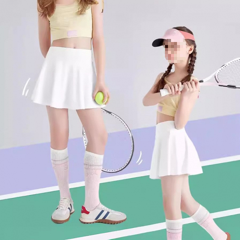 아동용 테니스 스커트, 여아용 스커트, 봄 여름 가볍고 속건성 스커트, 흰색 주름 스커트, 노출 방지 스포츠 스커트