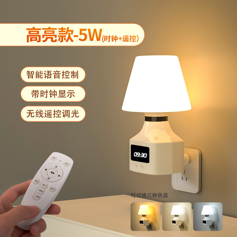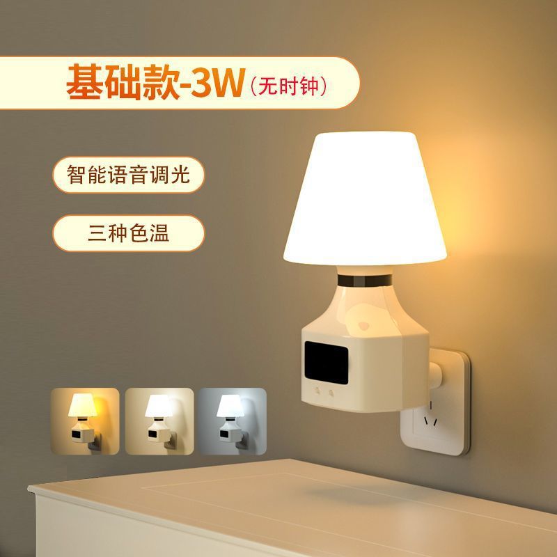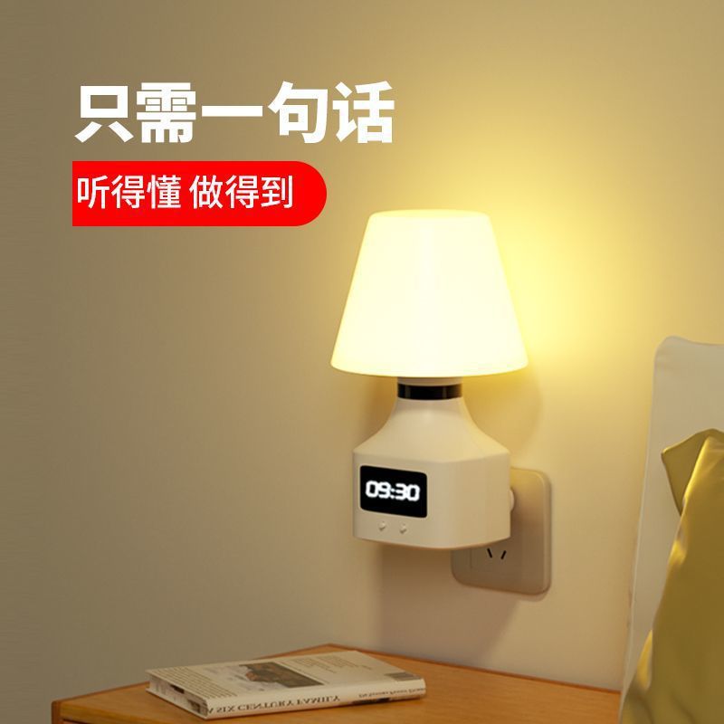 지능형 음성 야간 조명 플러그인 침실 수면 야간 아기 수유 눈 보호 에너지 절약 음성 제어 유도 침대 옆 램프