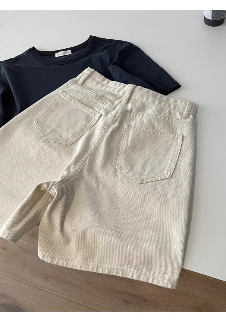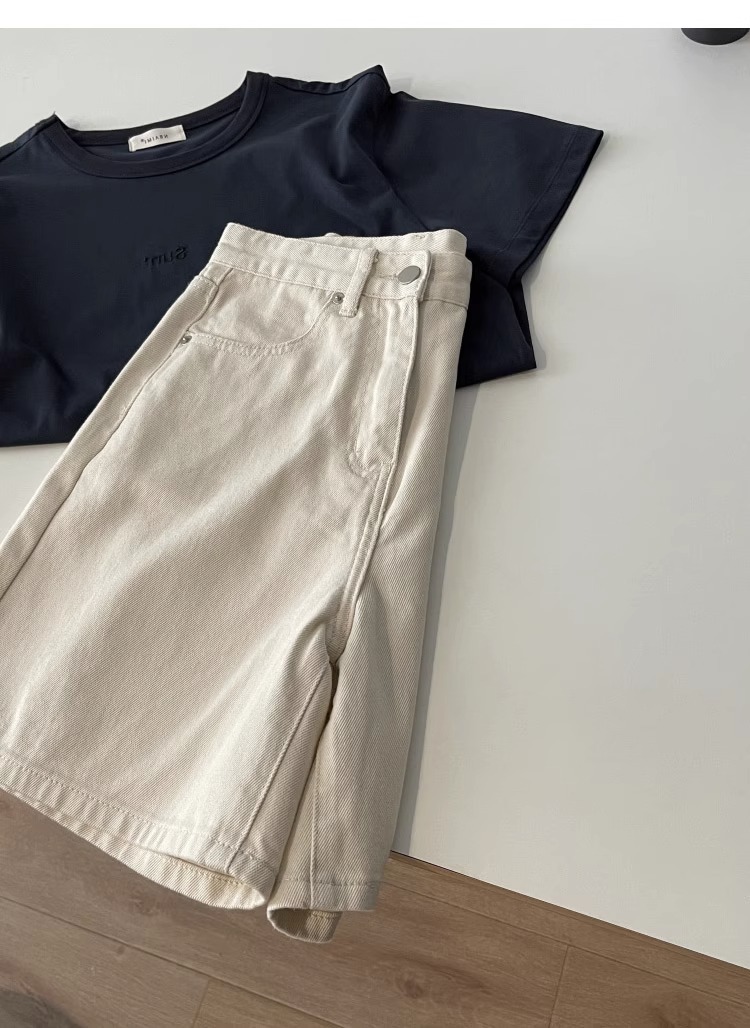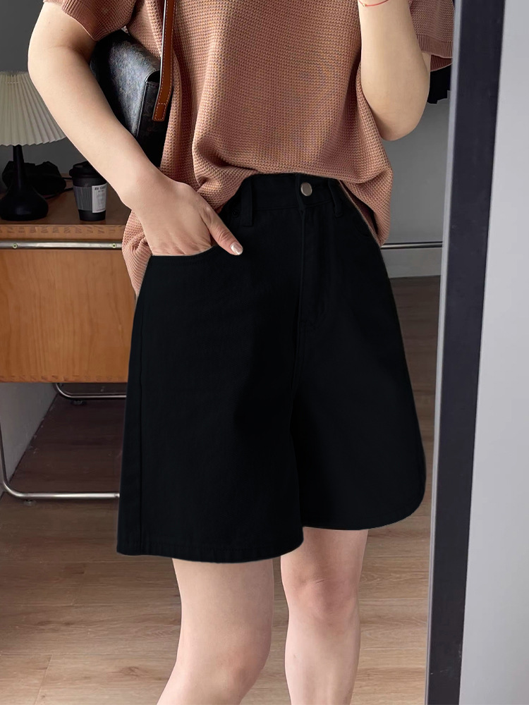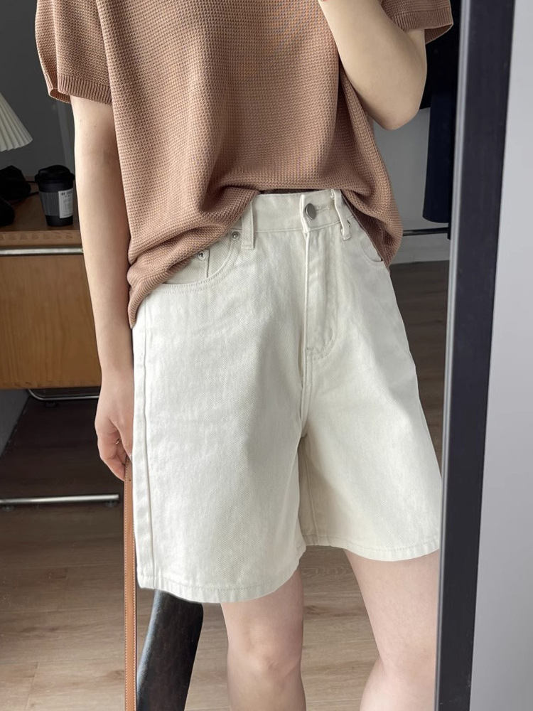 여름용 여성용 미색 데님 반바지 얇은 플러스 사이즈 뚱뚱한 여성용 하이 웨이스트 루즈 슬리밍 스트레이트 와이드 레그 5부 바지스토어 가기