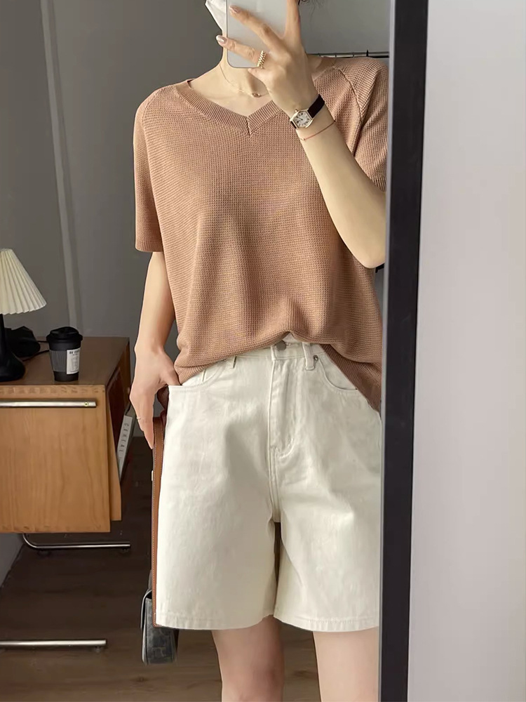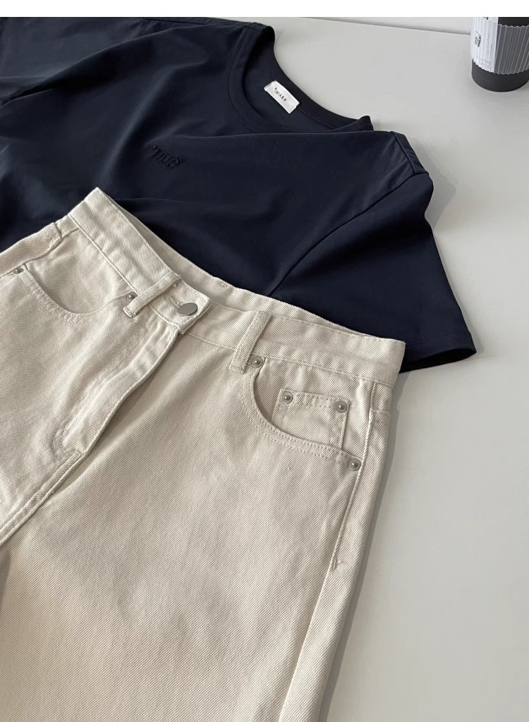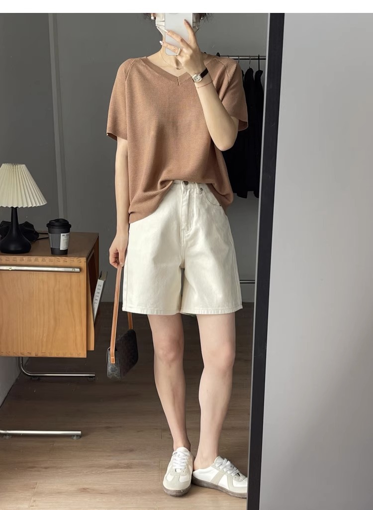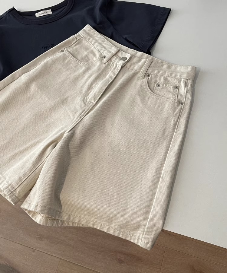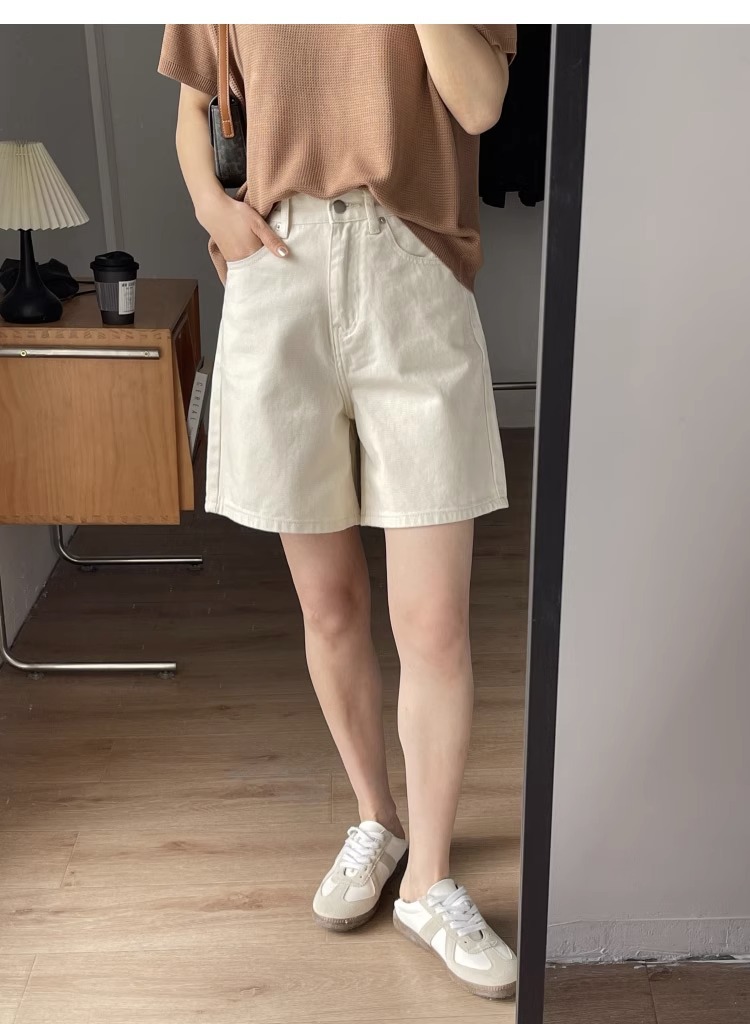 여름용 여성용 미색 데님 반바지 얇은 플러스 사이즈 뚱뚱한 여성용 하이 웨이스트 루즈 슬리밍 스트레이트 와이드 레그 5부 바지스토어 가기