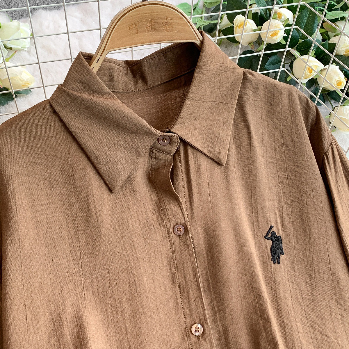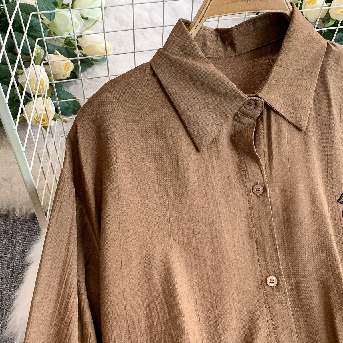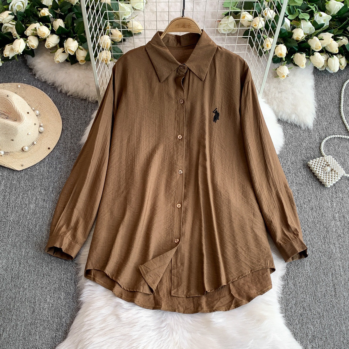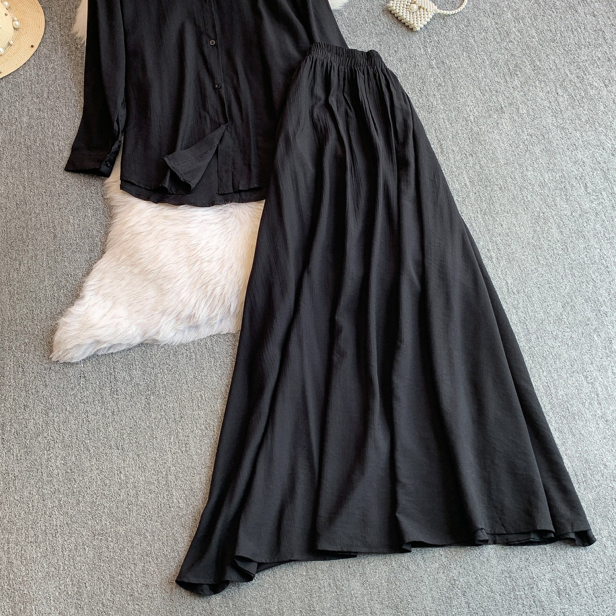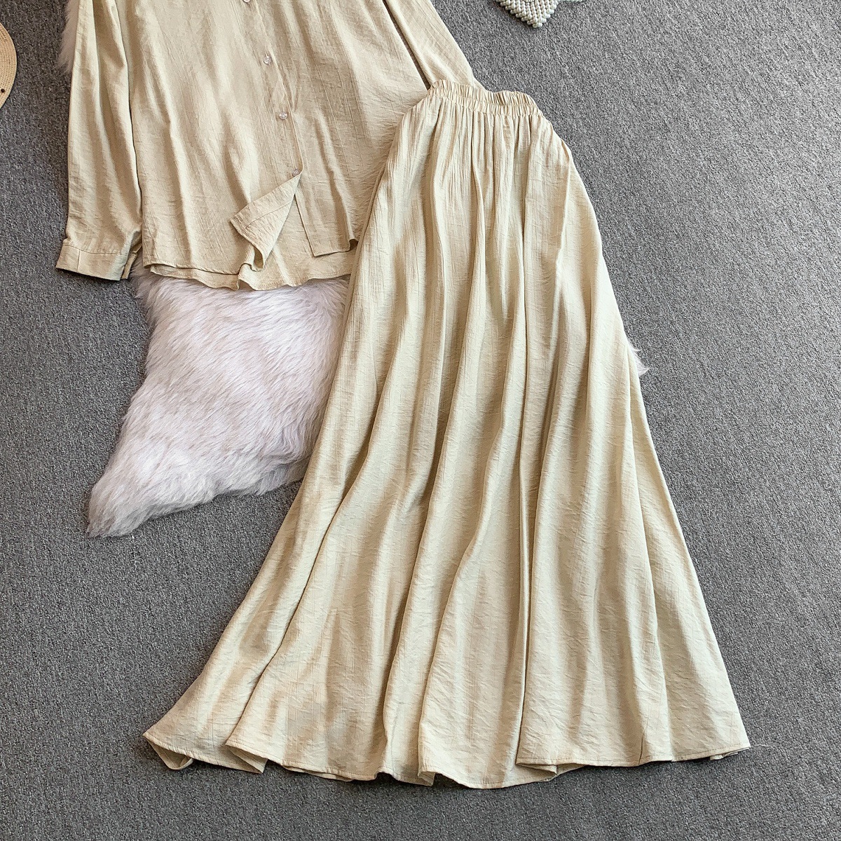 패션 정장 여성 캐주얼 루즈 자수 긴팔 자외선 차단 셔츠 + 하이 웨이스트 슬리밍 스커트 투피스 세트