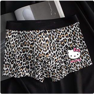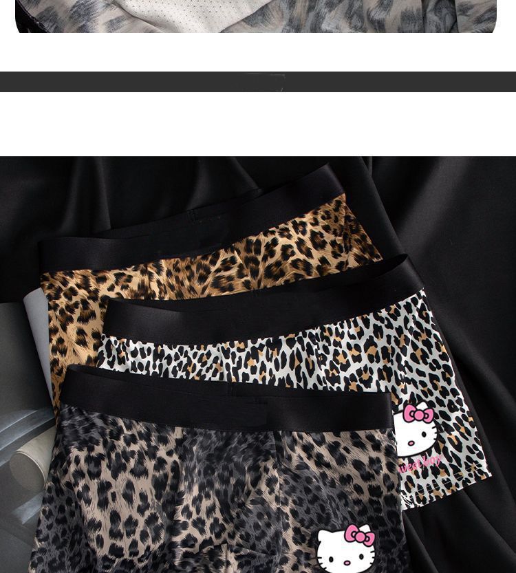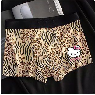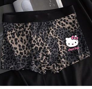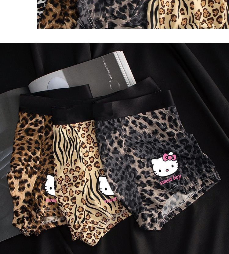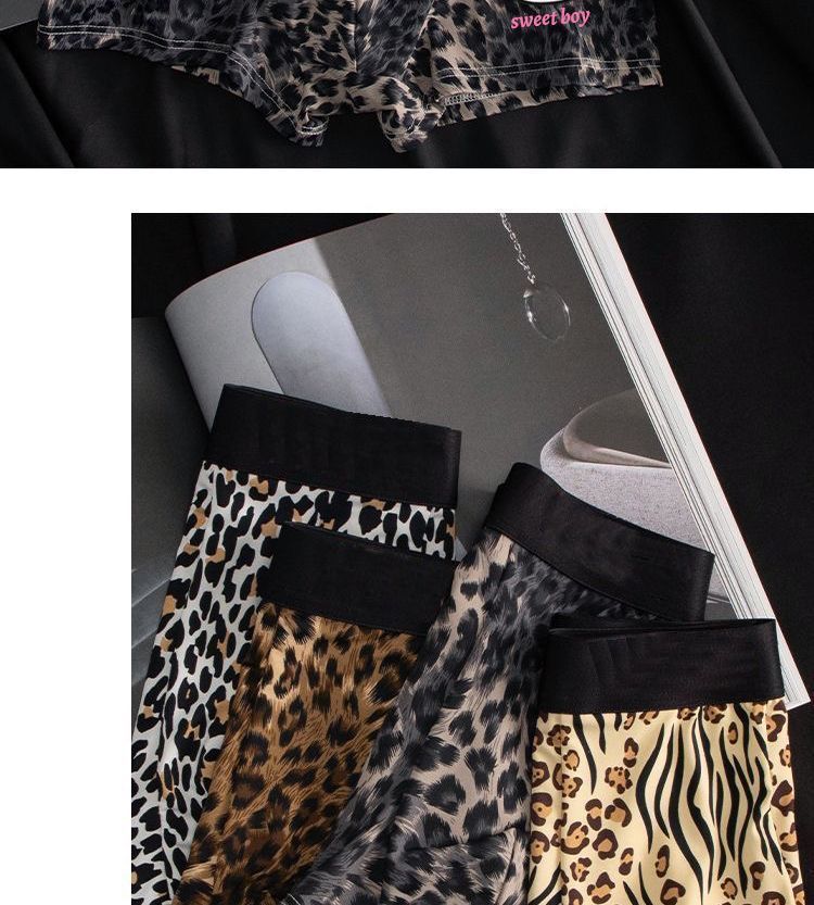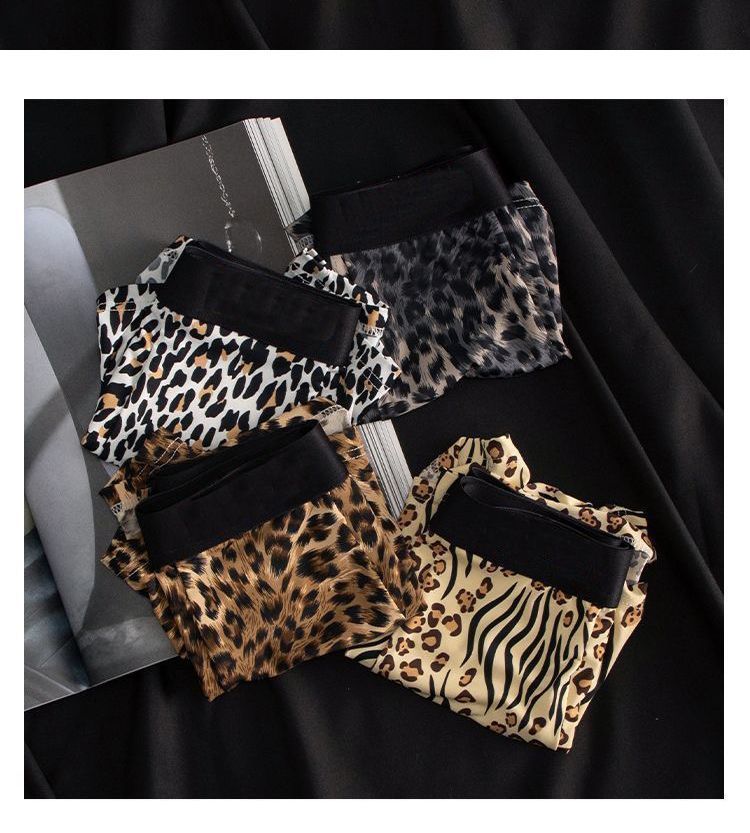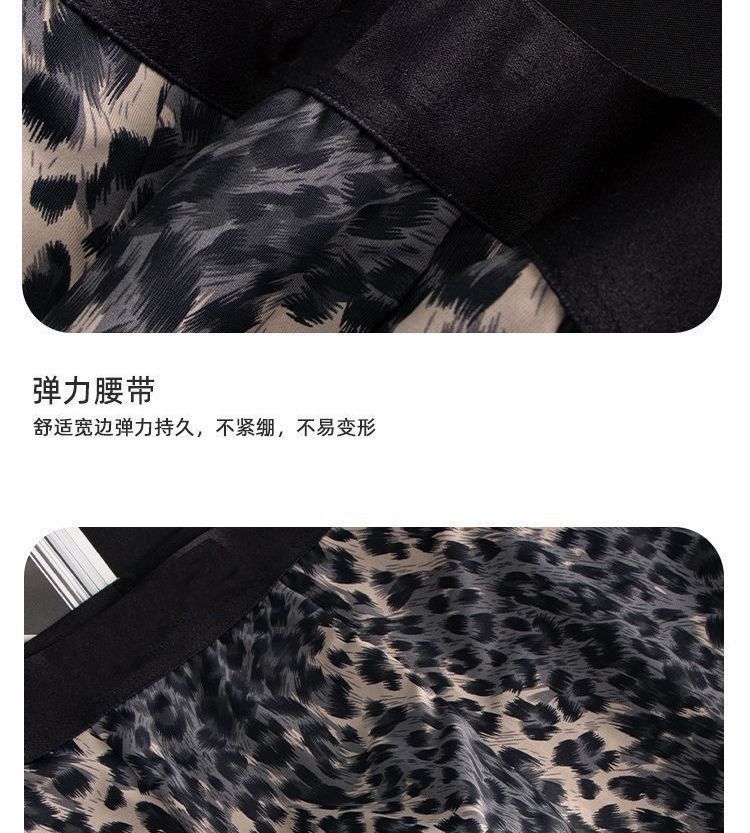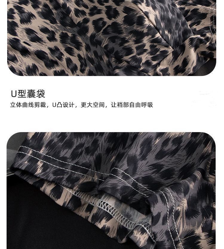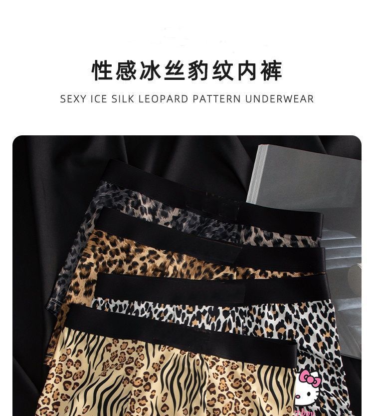 아이스 실크 남성 속옷 레오파드 프린트 복서 편안하고 통기성이 뛰어나며 트렌디한 소년의 섹시한 맞춤형 바지 복서 반바지
