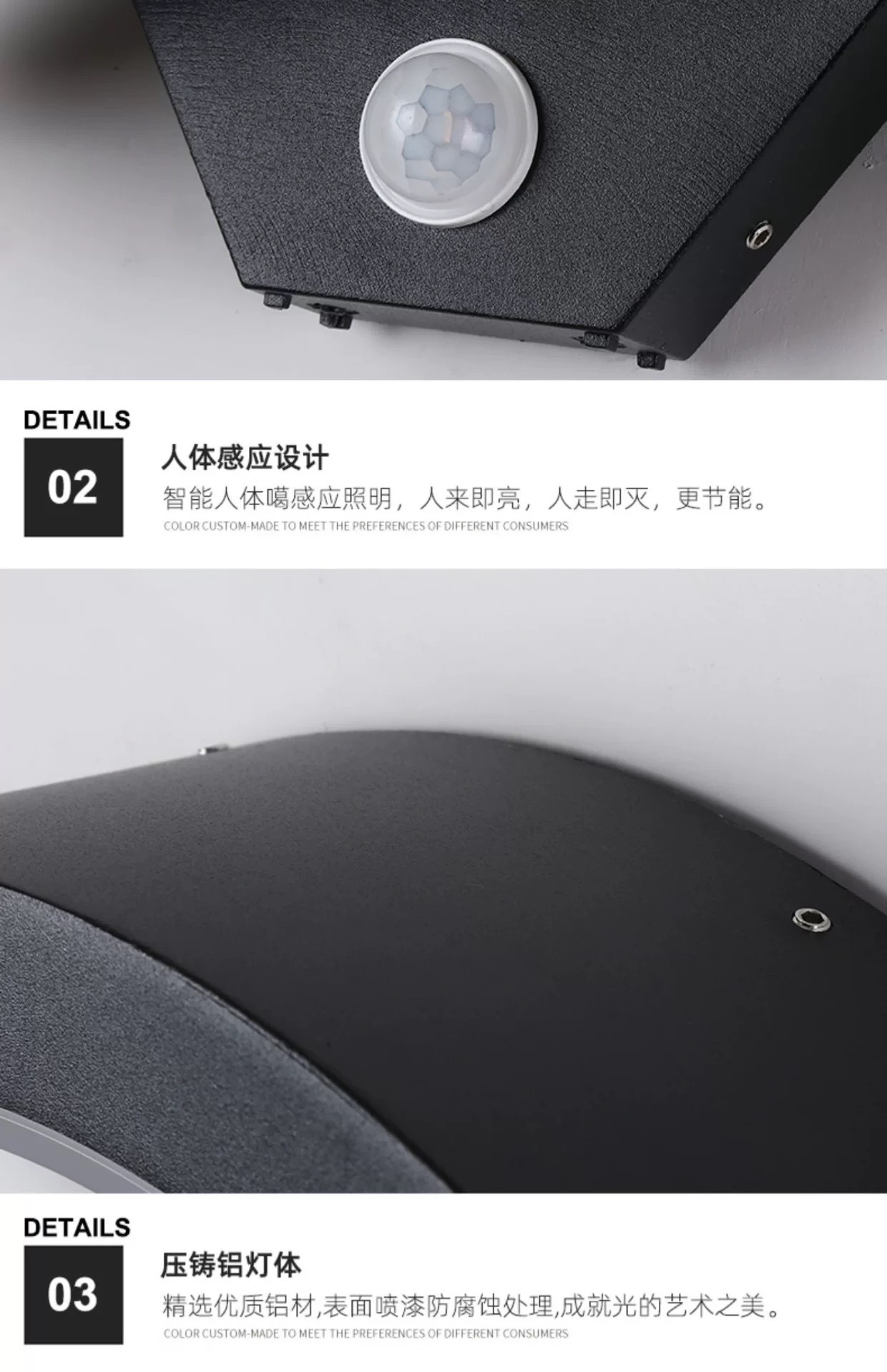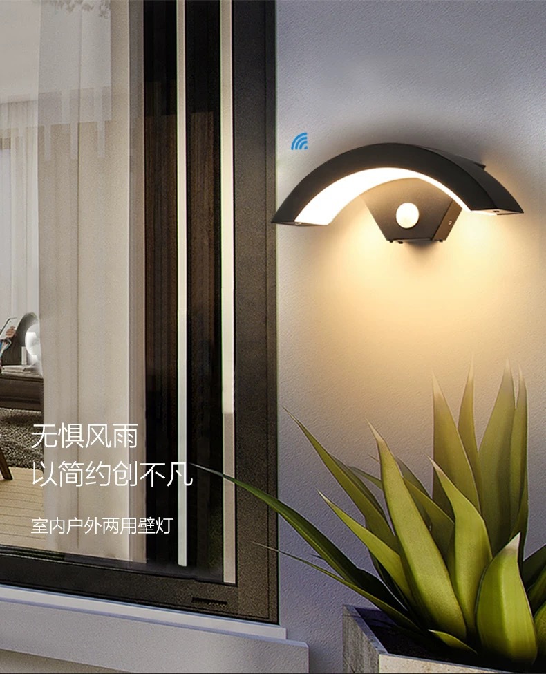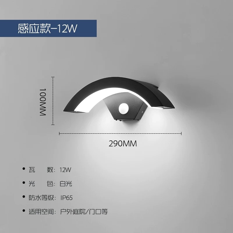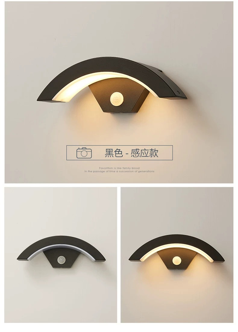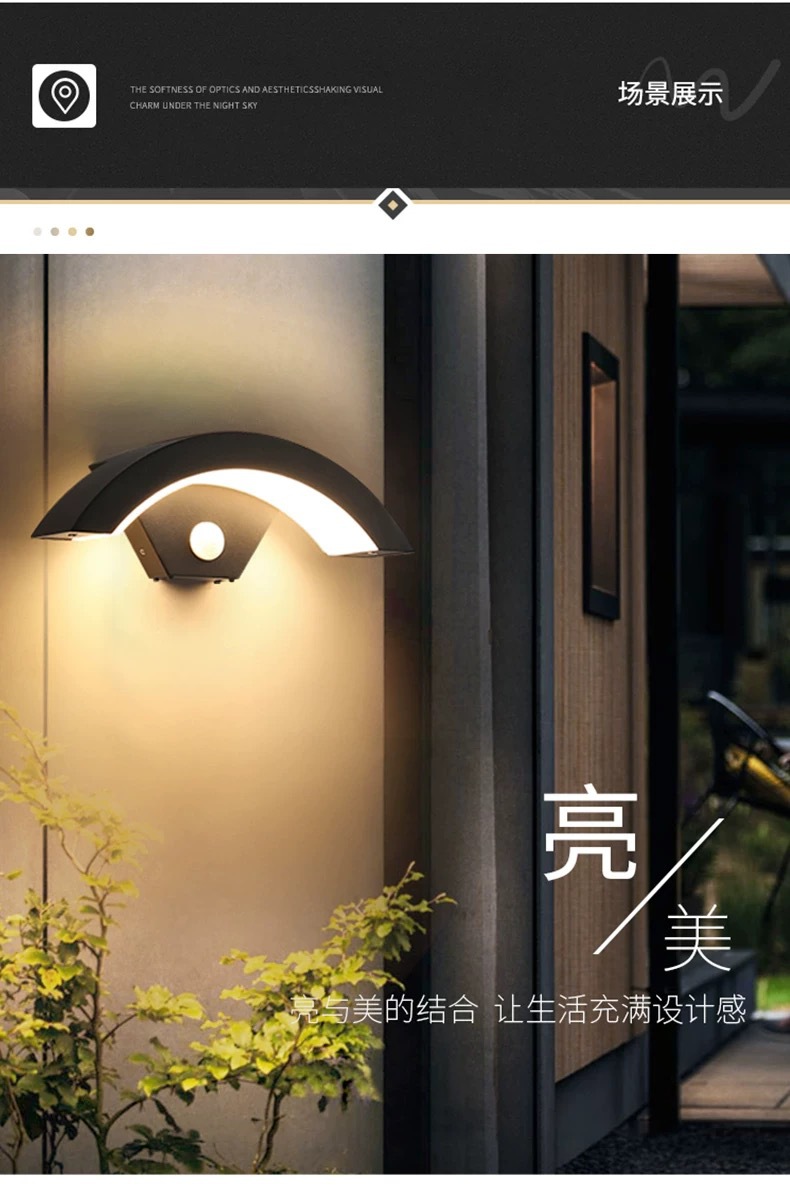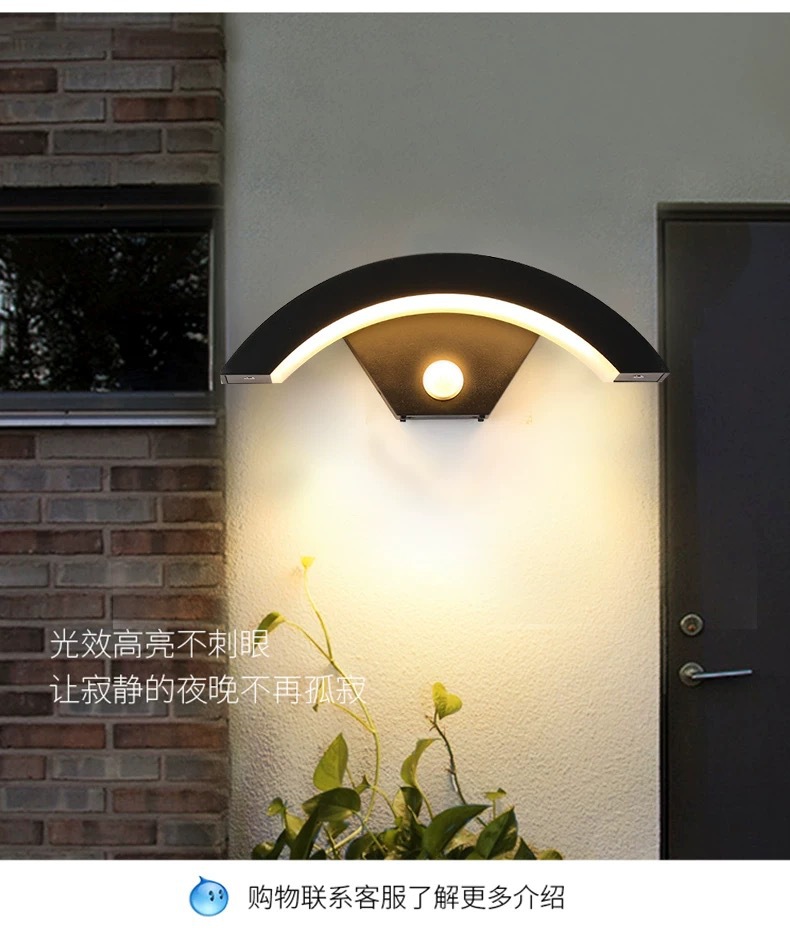 Led 야외 방수 인체 유도 벽 램프 안뜰 간단한 크리 에이 티브 야외 발코니 문 달 모양의 벽 램프