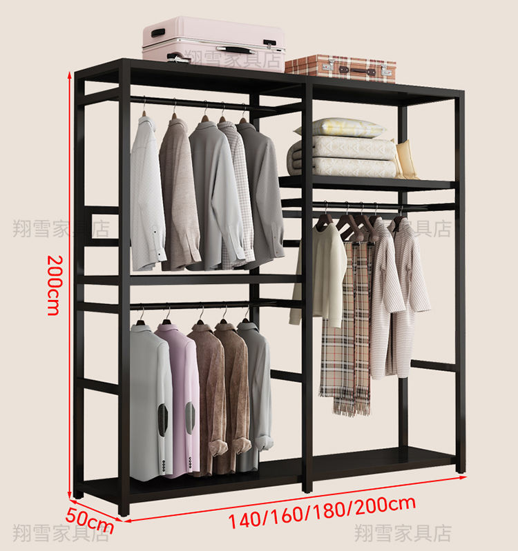 새로운 침실 전체 강철 개방형 바닥에서 천장까지 금속 옷장 옷걸이 다층 옷걸이 옷걸이는 매우 내구성이 뛰어난 보관 랙입니다.스토어 가기