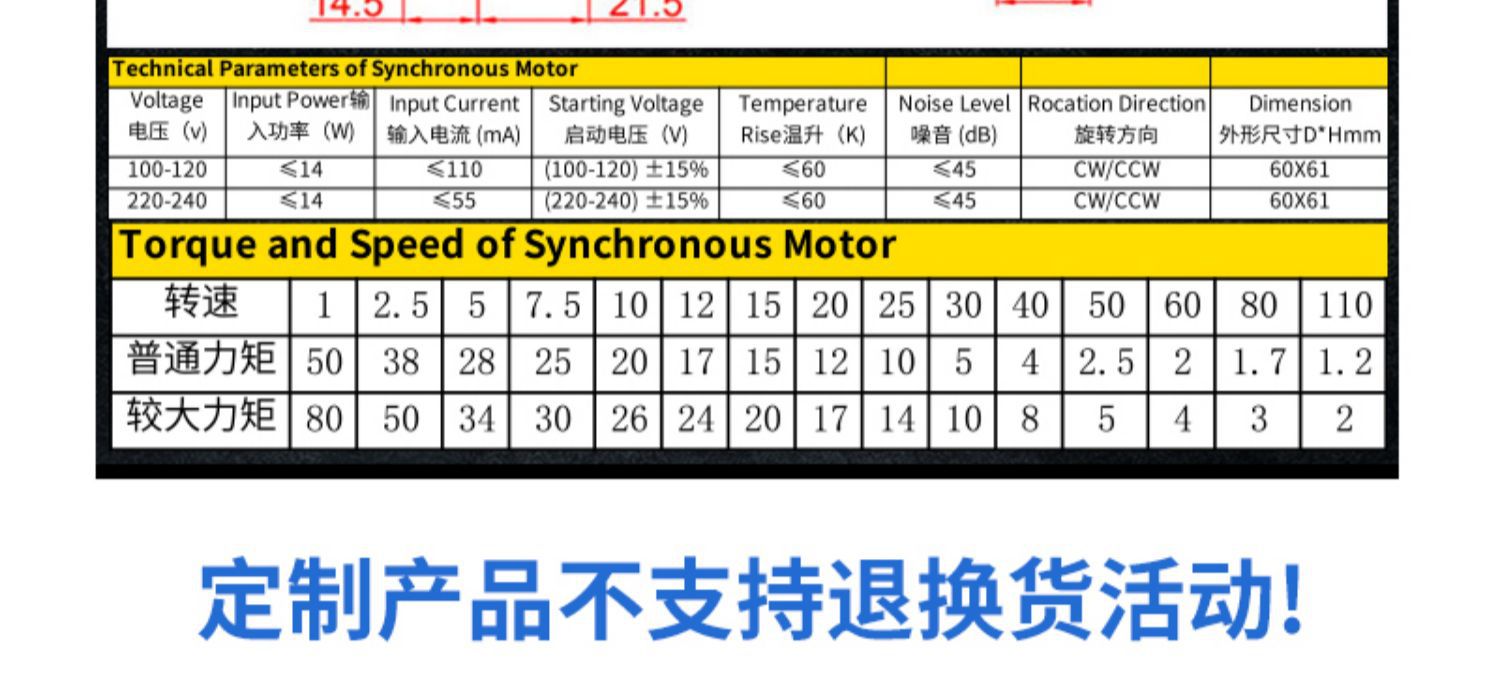 • 샤프트 7mm 구멍 샤프트 14W 강화 모터 분당 2.5회전