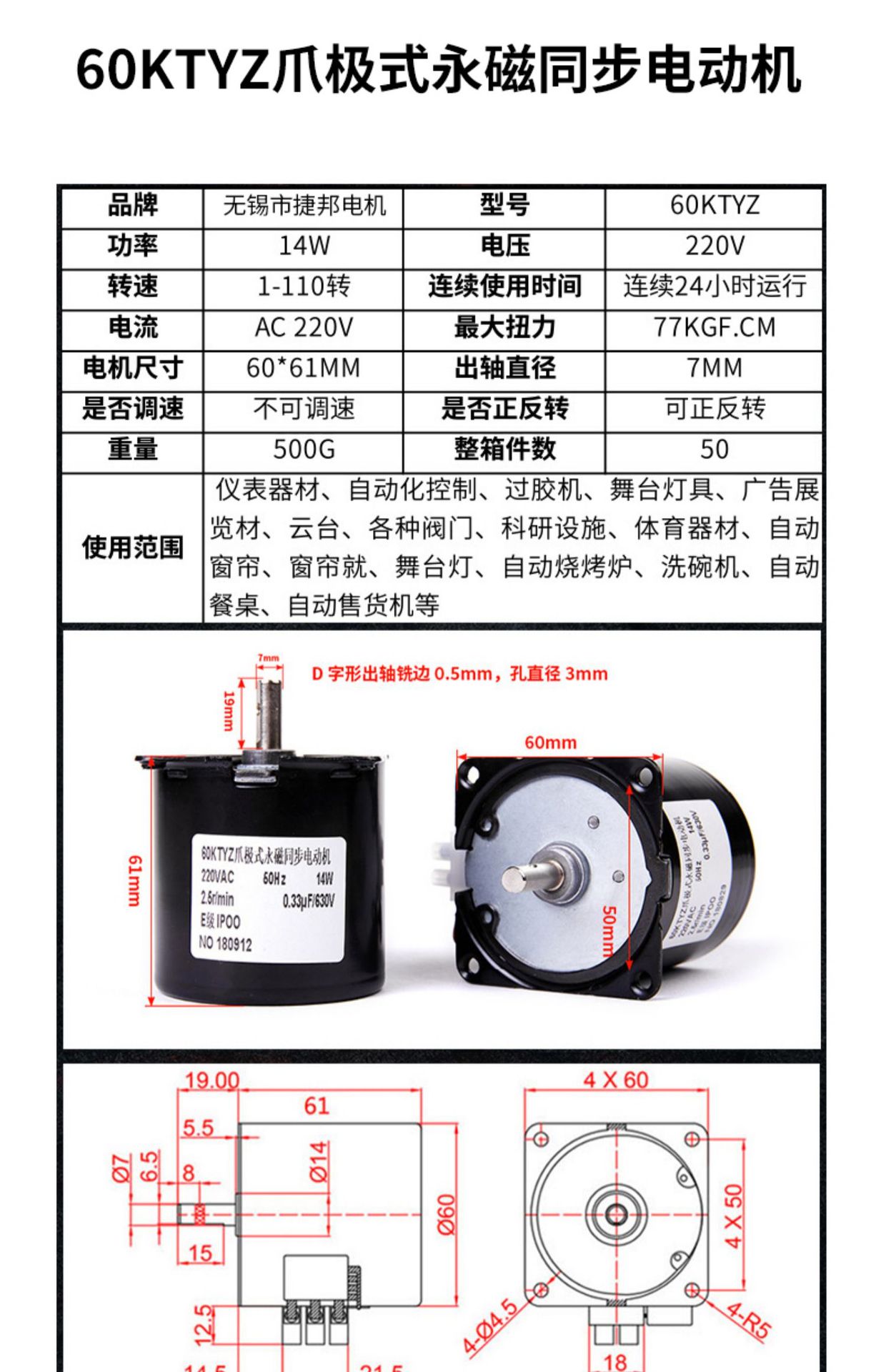 저속 모터 60KTYZ AC 영구 자석 동기 모터 220V 소형 정방향 및 역방향 마이크로 감속 소형 모터스토어 가기