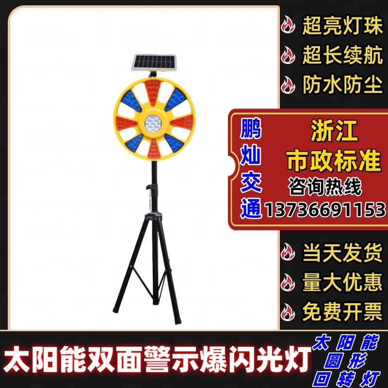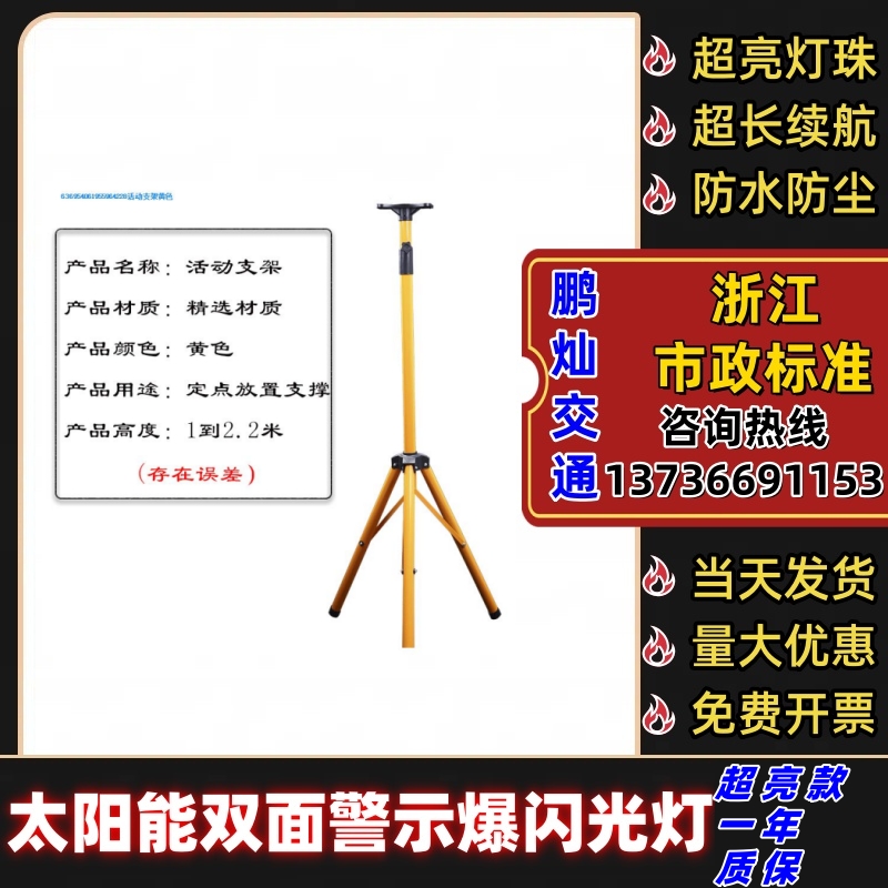 • [태양광 원형 회전등] + 노란색 이동식 삼각대 스탠드