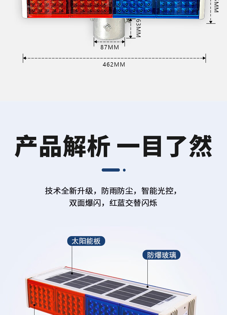 태양광 깜박임 경고등 LED 회전등 강한 빛 교통 바리케이드 학교 건설 현장 빨간색과 파란색 스트로브 신호등스토어 가기