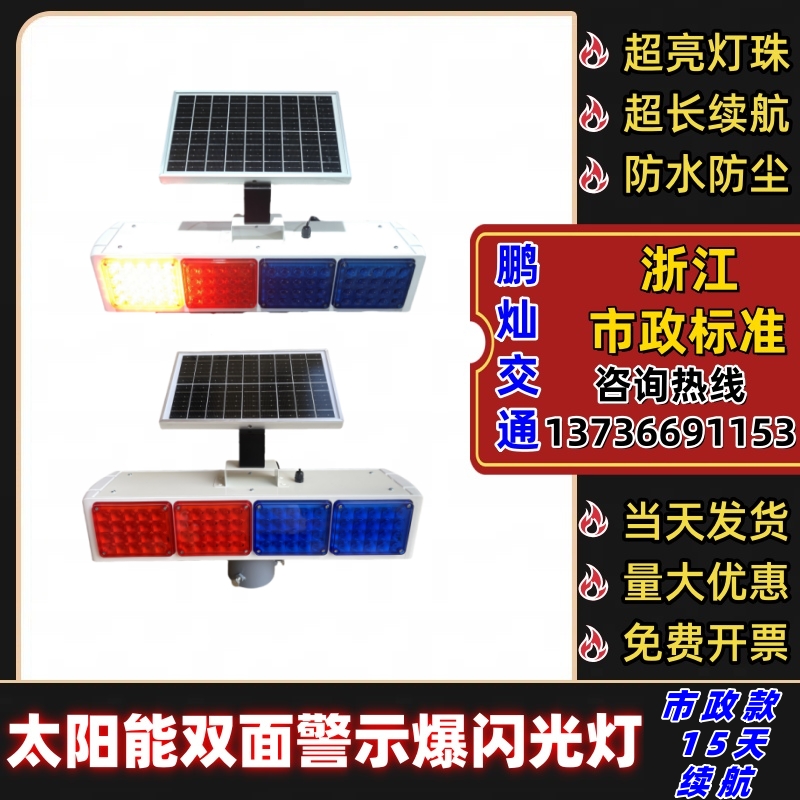 태양광 깜박임 경고등 LED 회전등 강한 빛 교통 바리케이드 학교 건설 현장 빨간색과 파란색 스트로브 신호등