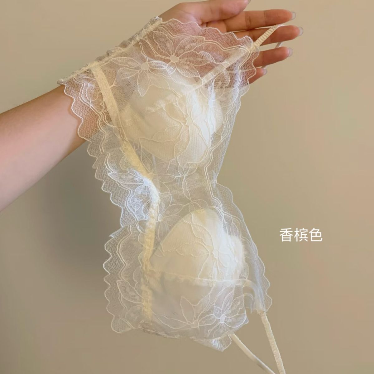 여름 여성용 프렌치 레이스 속옷, 얇고 통기성이 좋으며 와이어가 없으며 섹시한 스파게티 스트랩 아름다운 등 브라 2025 새로운 스타일