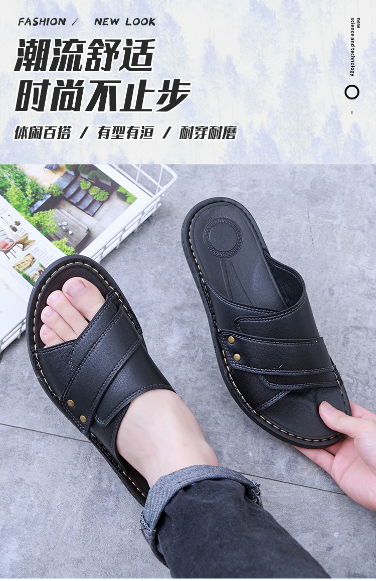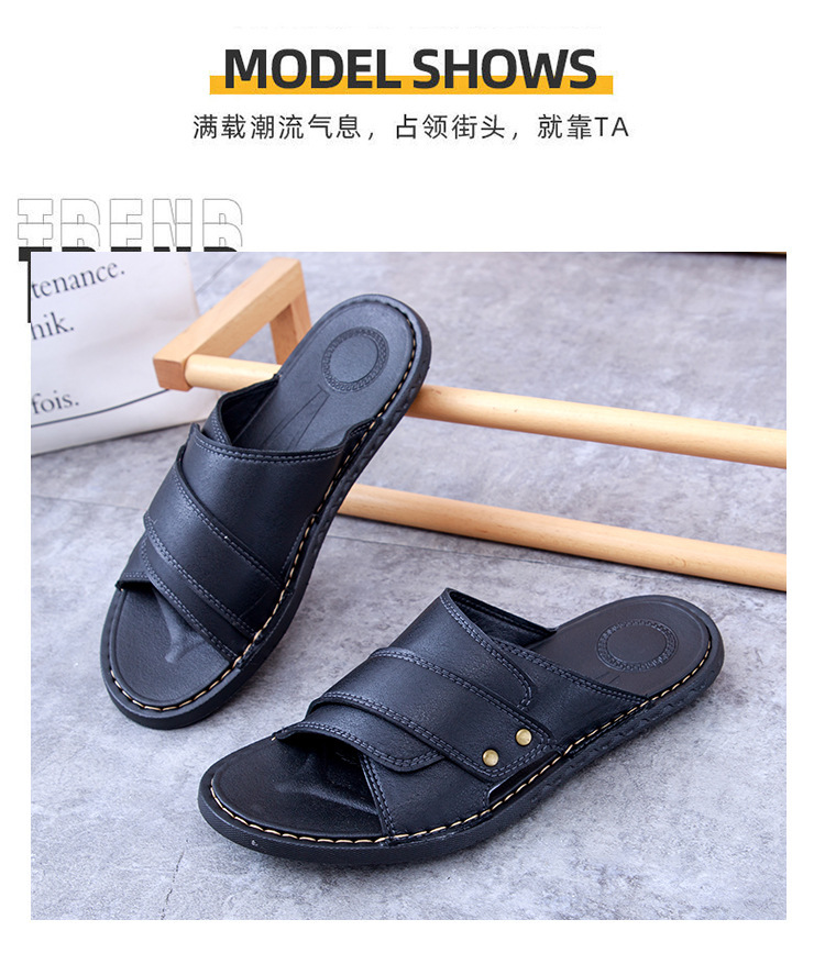 2025 남성 슬리퍼 여름 아우터 패션 내마모성 캐주얼 슬리퍼 가죽 샌들 남성 야외 슬리퍼스토어 가기