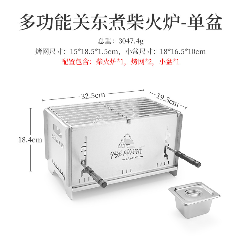 ISE MOUNT 야외 오뎅 장작 스토브 캠핑 다기능 스테인레스 스틸 사각형 분리형 스토브