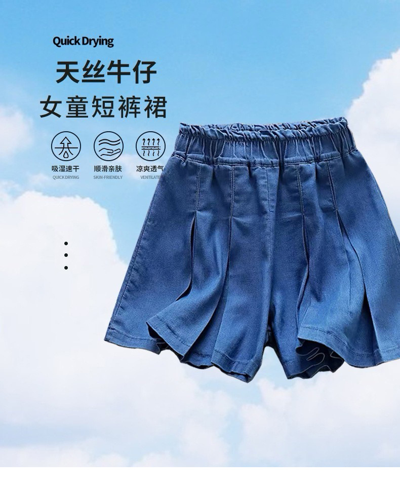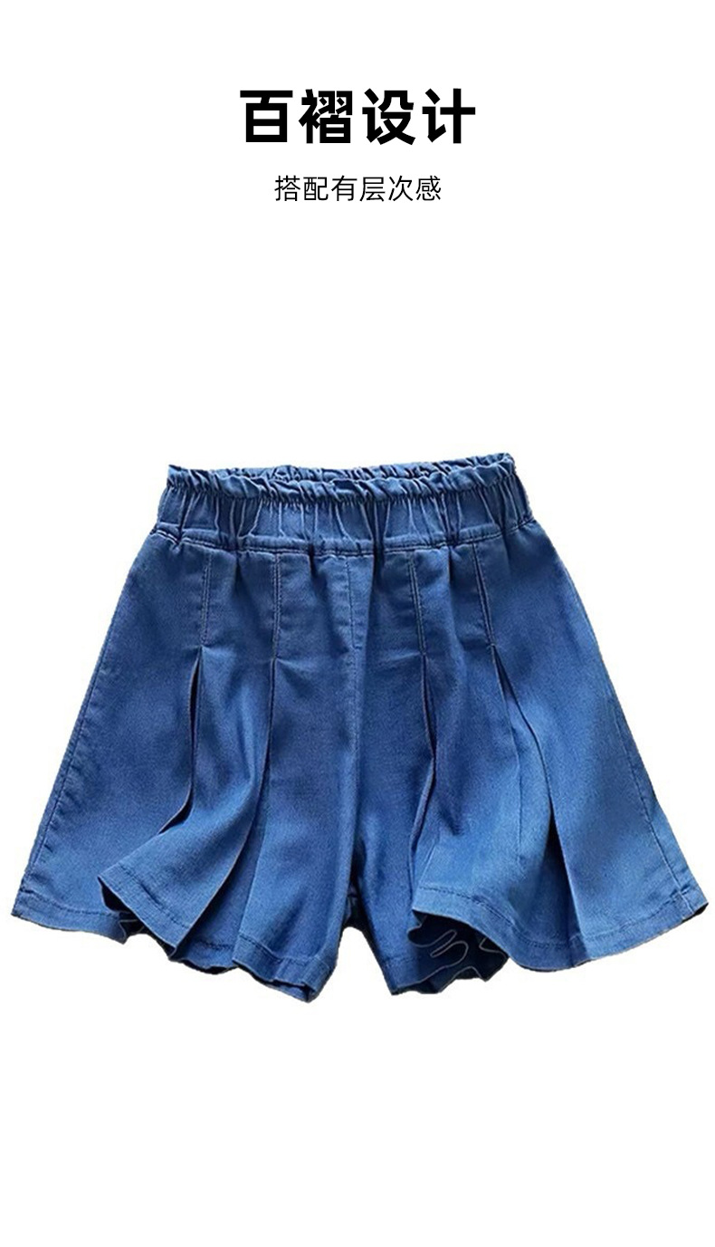 2025 새로운 여자 데님 반바지 여름 어린이 주름 치마 바지 중대형 어린이 여자 유행 스커트스토어 가기