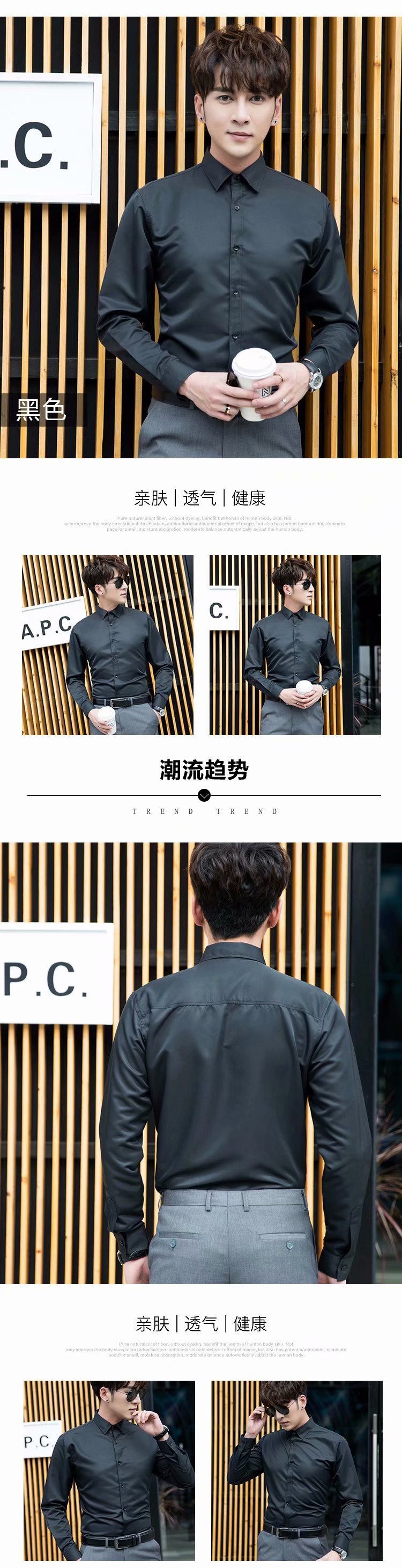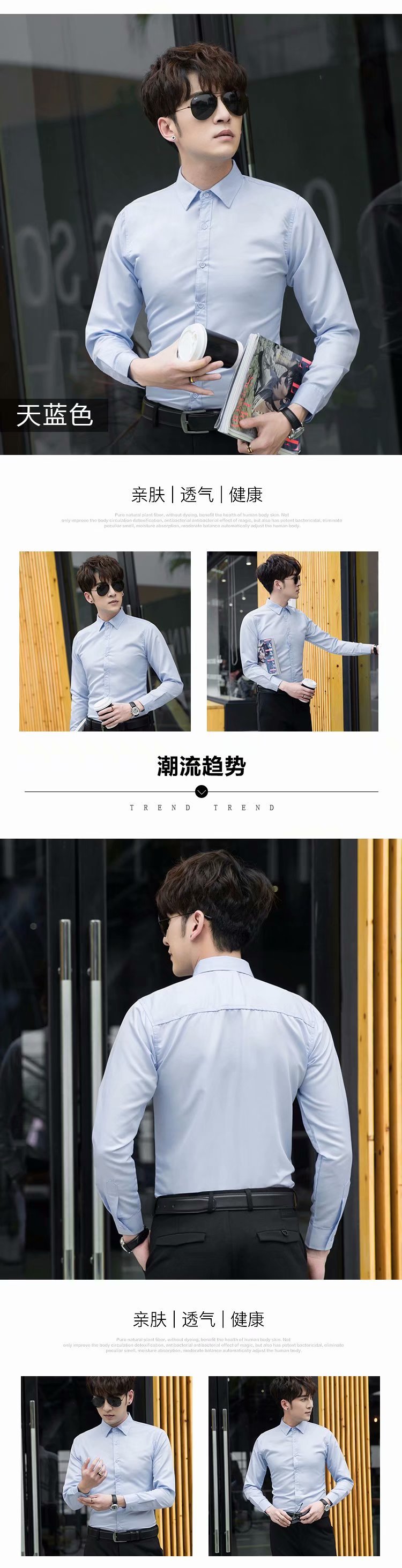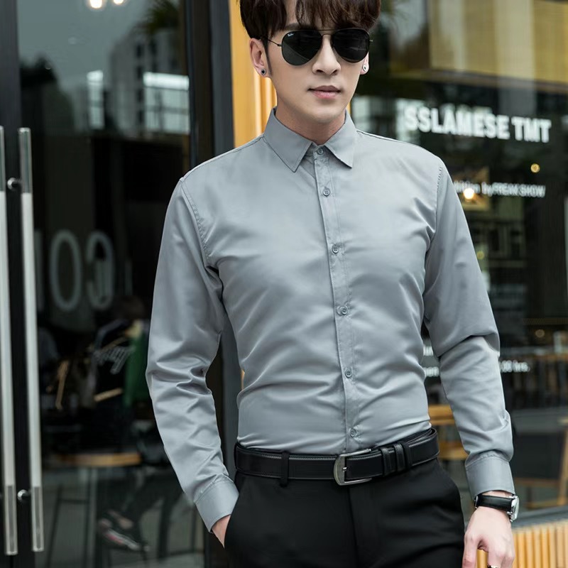 봄 여름 남성 셔츠 스트레치 긴팔 한국 스타일 슬림 비즈니스 셔츠 청소년 전문 작업복 남성용 캐주얼 화이트 셔츠스토어 가기