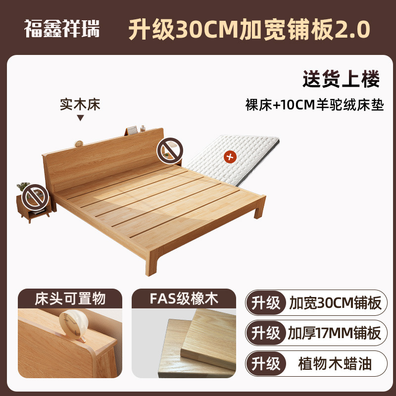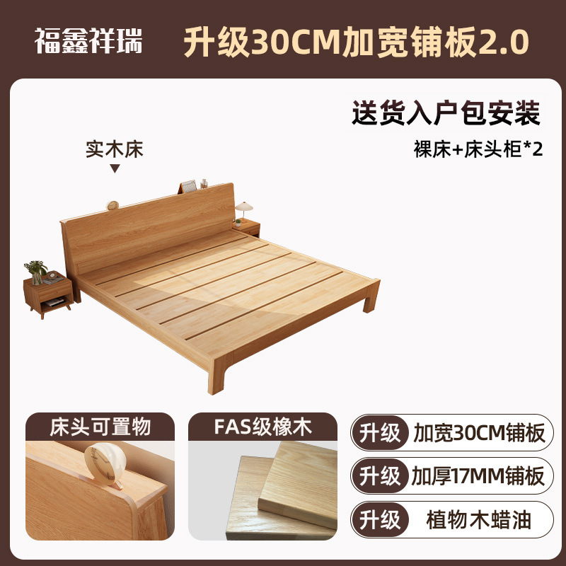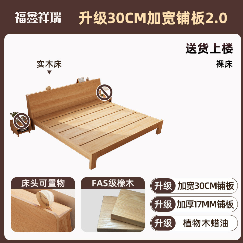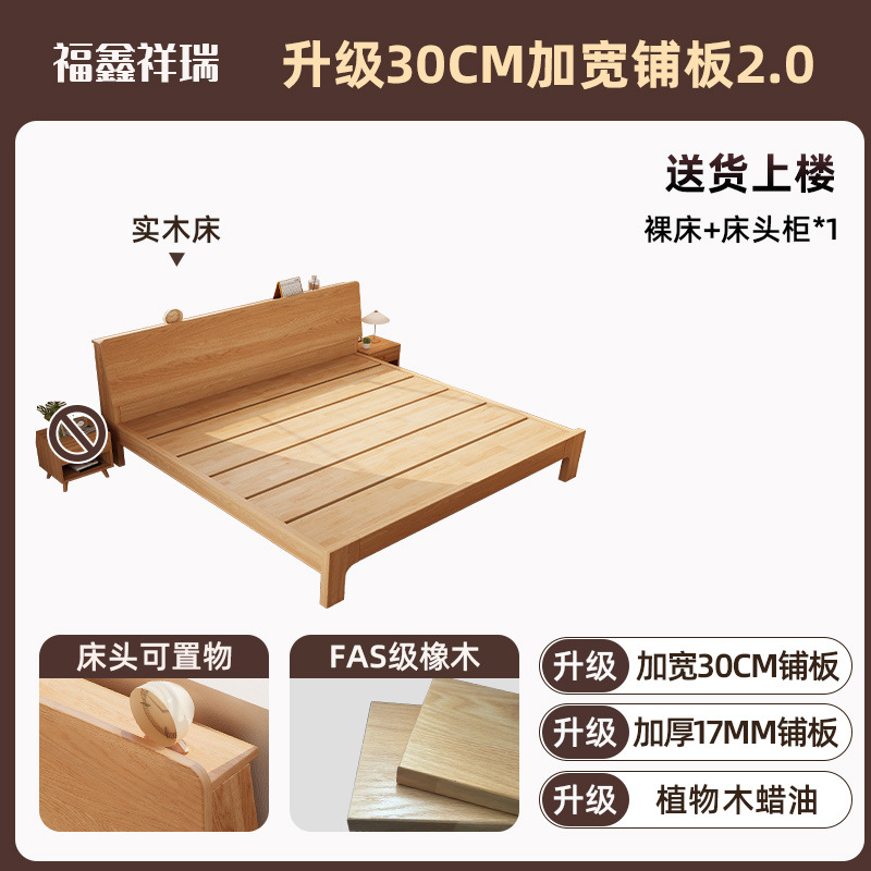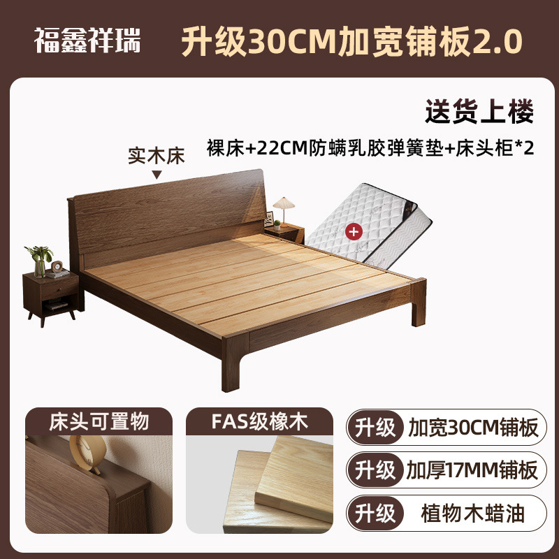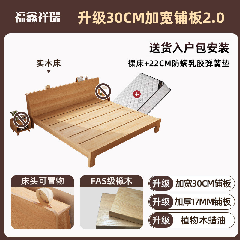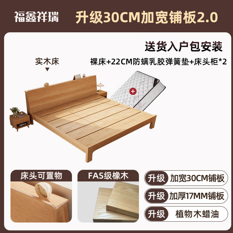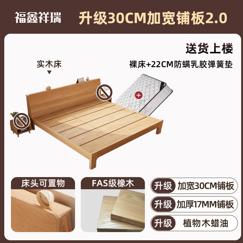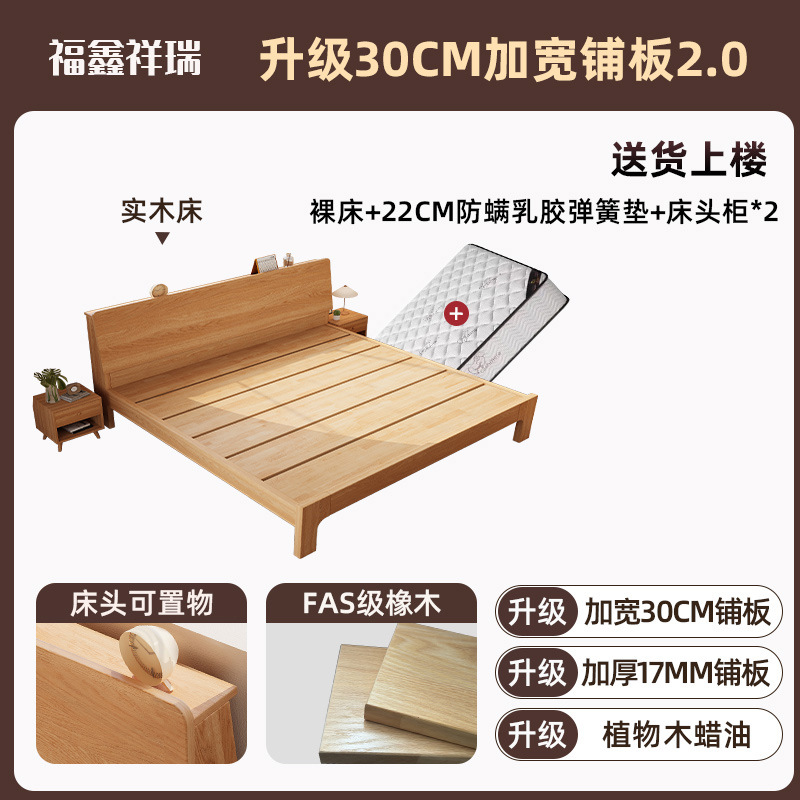 원목 침대, 모던 심플 오크 침대, 가정용 원목 싱글 및 더블 침대, 마스터 침실 1.8m 라이트 럭셔리 다다미 침대 프레임스토어 가기
