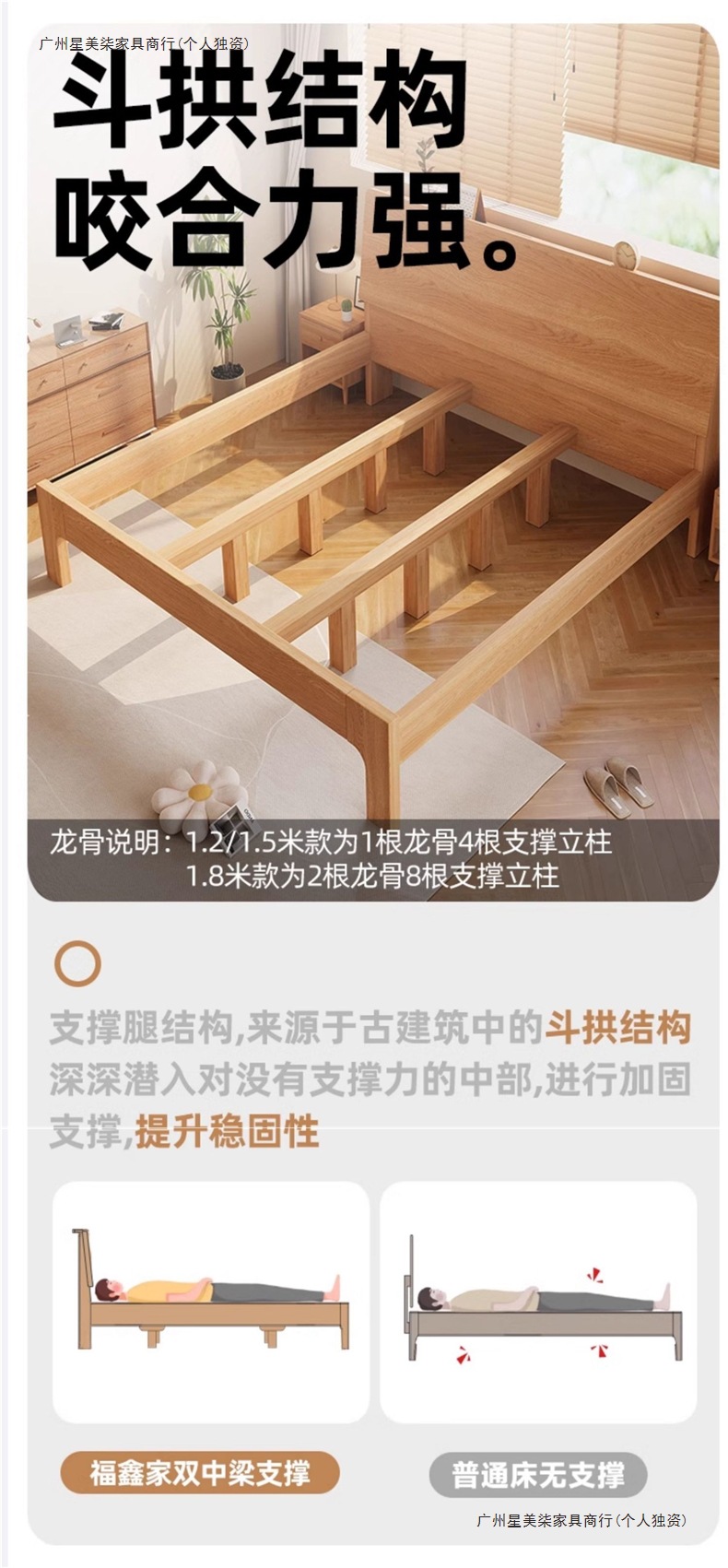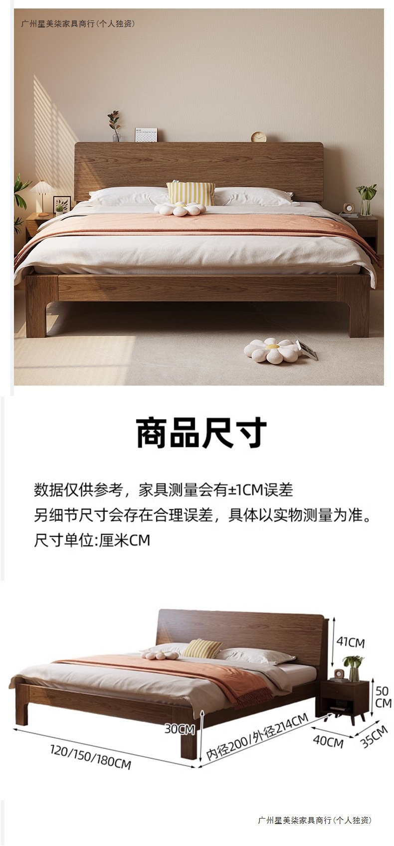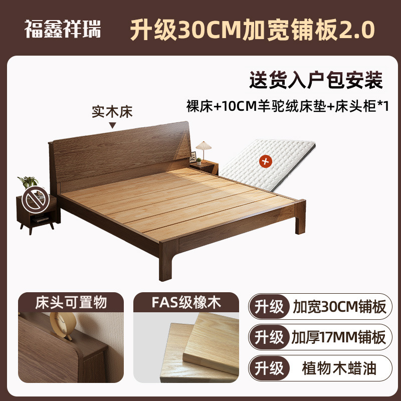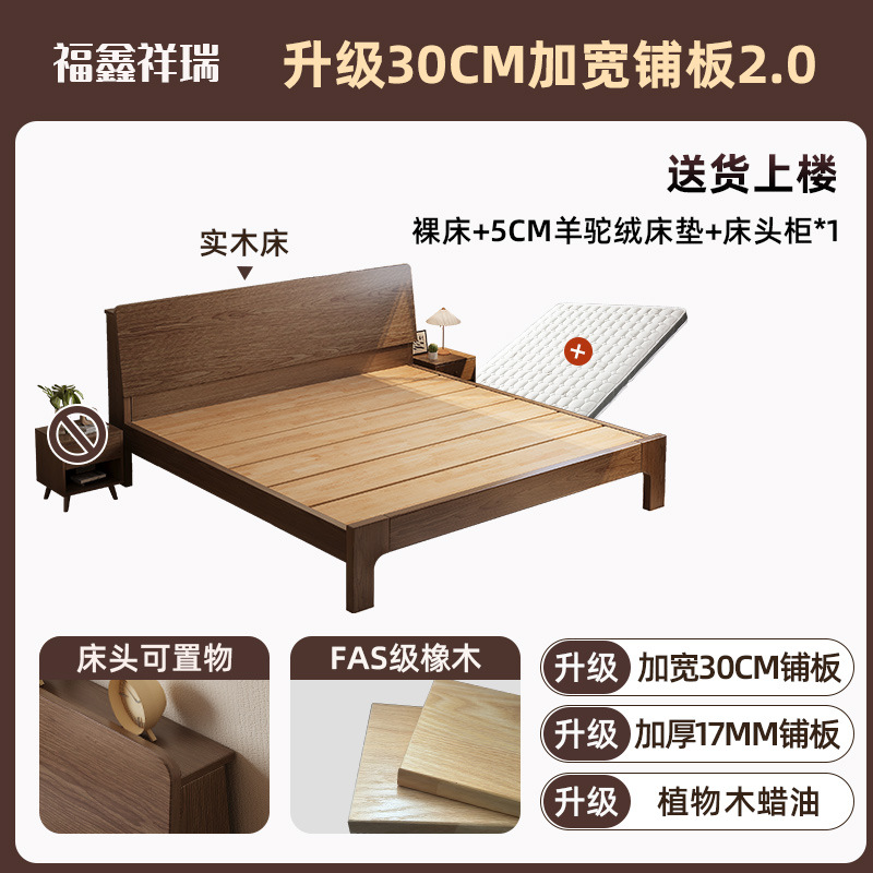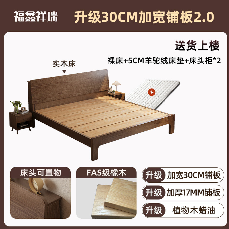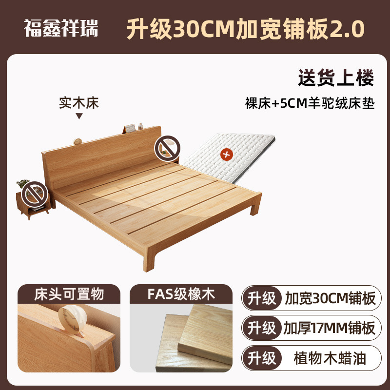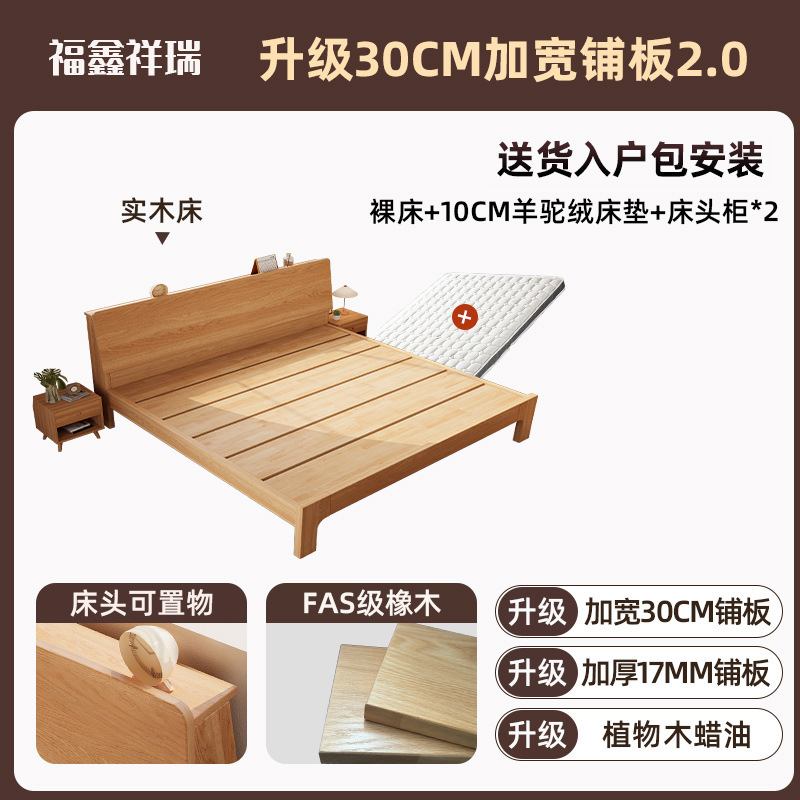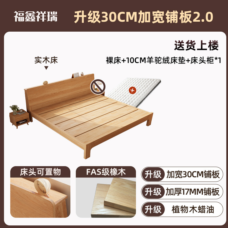 원목 침대, 모던 심플 오크 침대, 가정용 원목 싱글 및 더블 침대, 마스터 침실 1.8m 라이트 럭셔리 다다미 침대 프레임스토어 가기