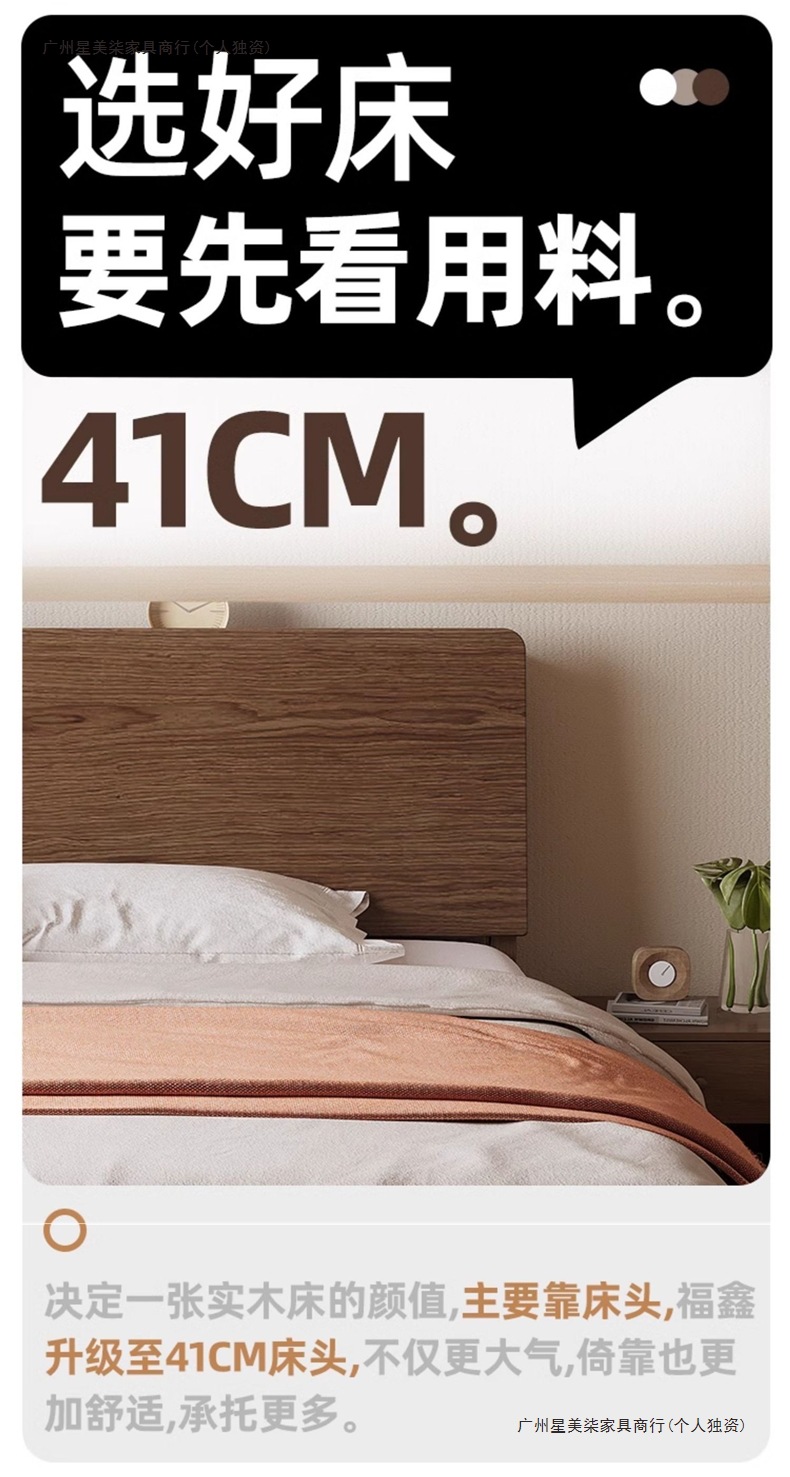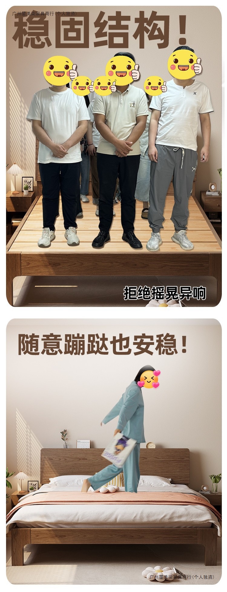 • [월넛 컬러] 오크 침대 + 22CM 진드기 방지 라텍스 스프링 매트리스 + 침대 옆 탁자 * 1 (위층 설치 포함)