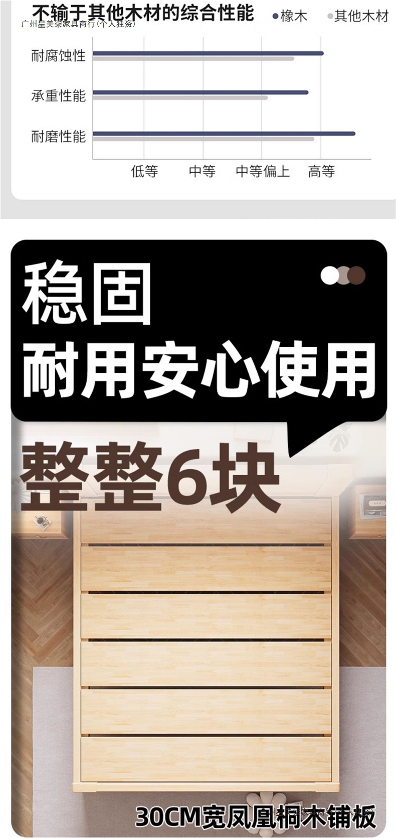 • [원목 색상] 오크 침대 + 22CM 진드기 방지 라텍스 스프링 매트리스 + 침대 옆 탁자 * 1 (위층 설치 포함)