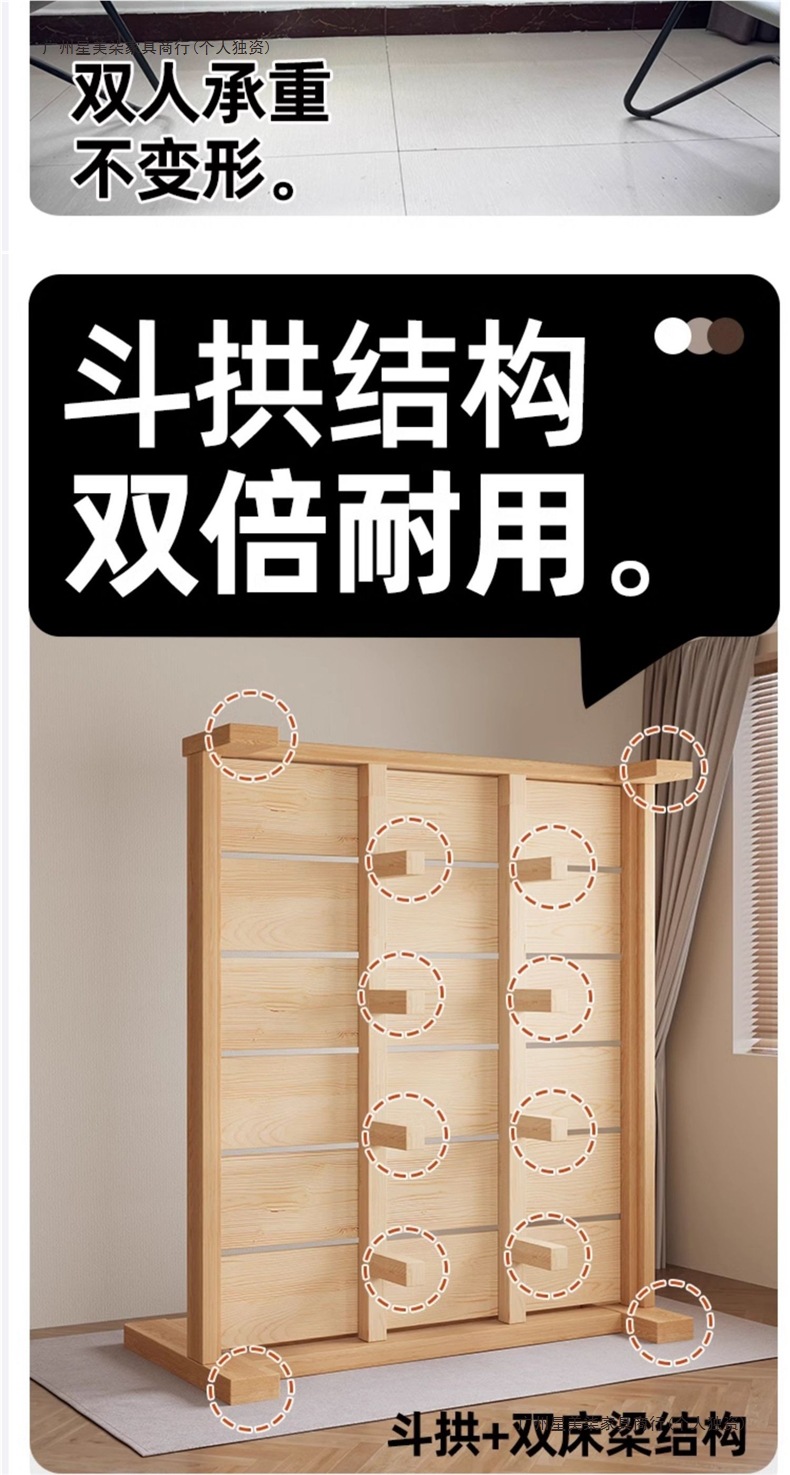 • [오리지널 컬러] 오크 침대 + 22CM 진드기 방지 라텍스 스프링 매트리스 (위층 설치 포함)