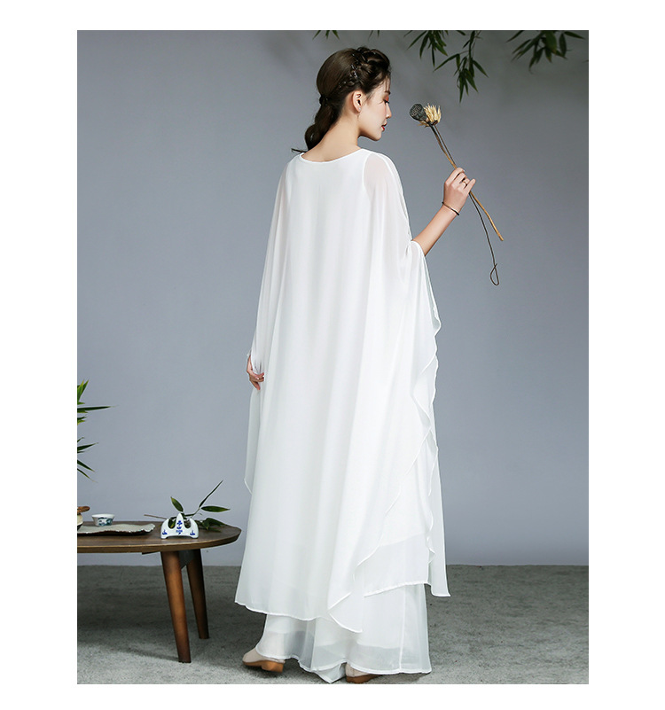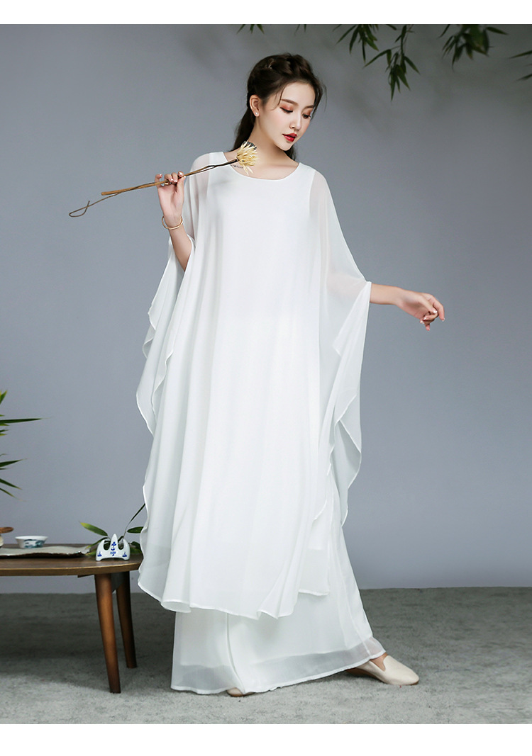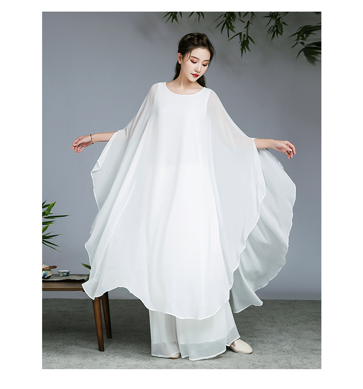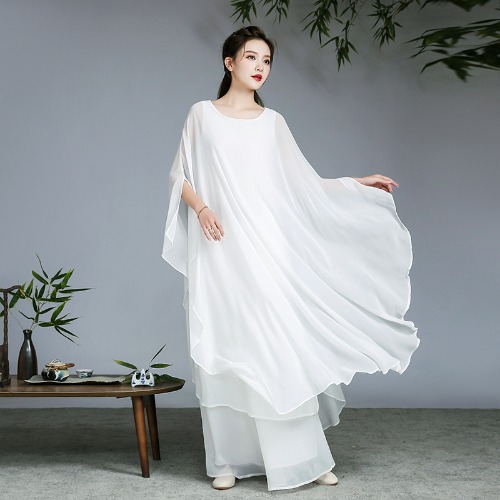 3겹 쉬폰 티슈트, 선(禪) 슈트, 와이드 팬츠 슈트, 명상 에스닉 댄스 퍼포먼스 드레스 여성용