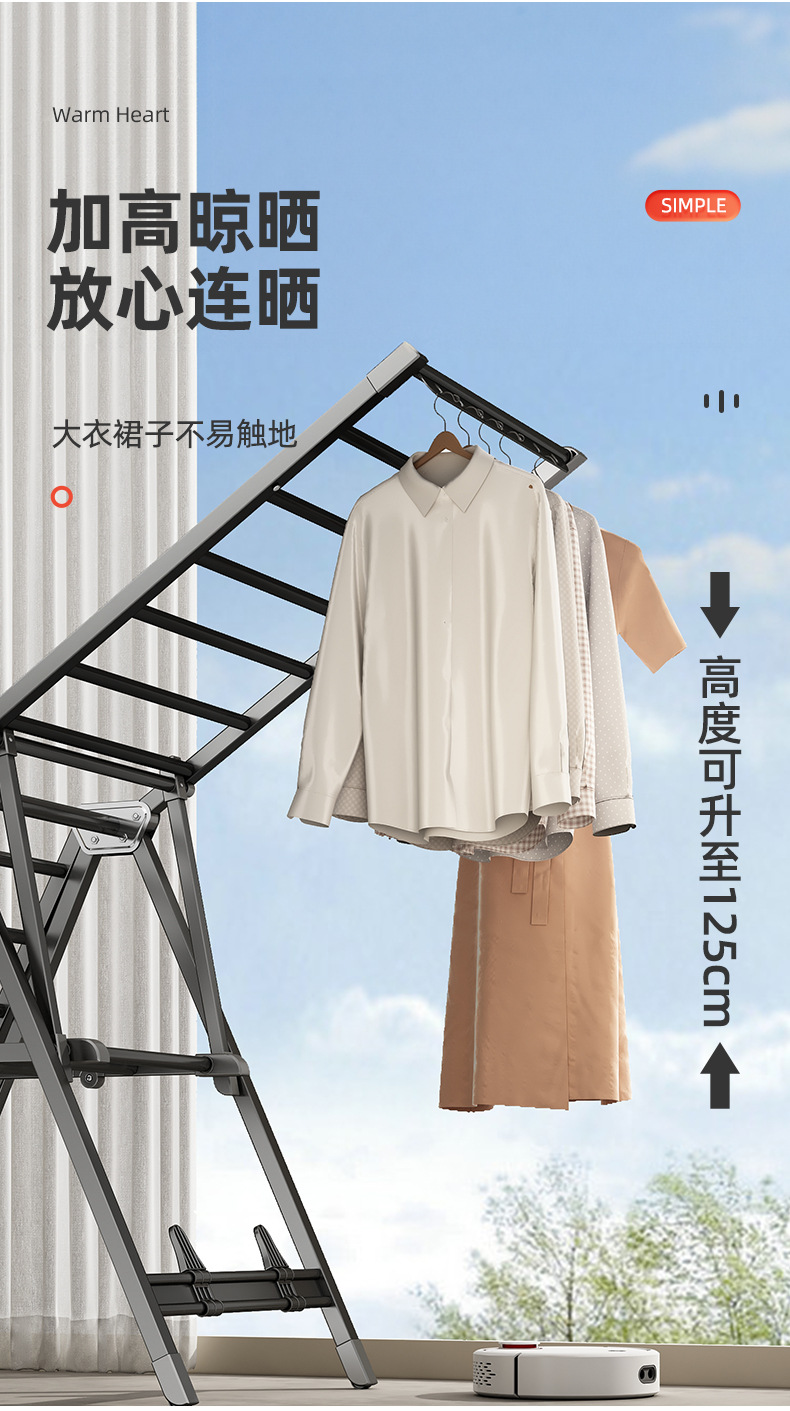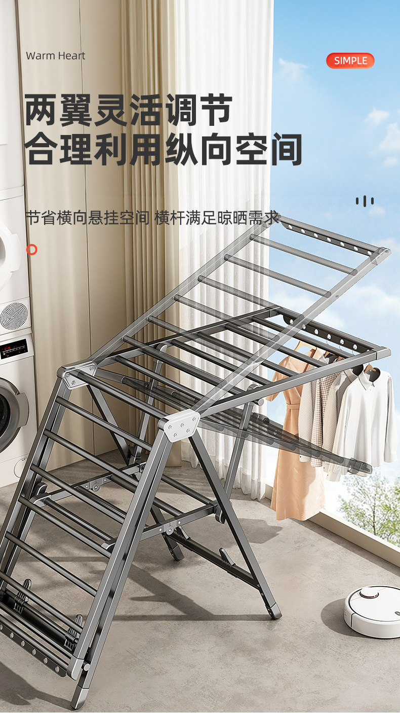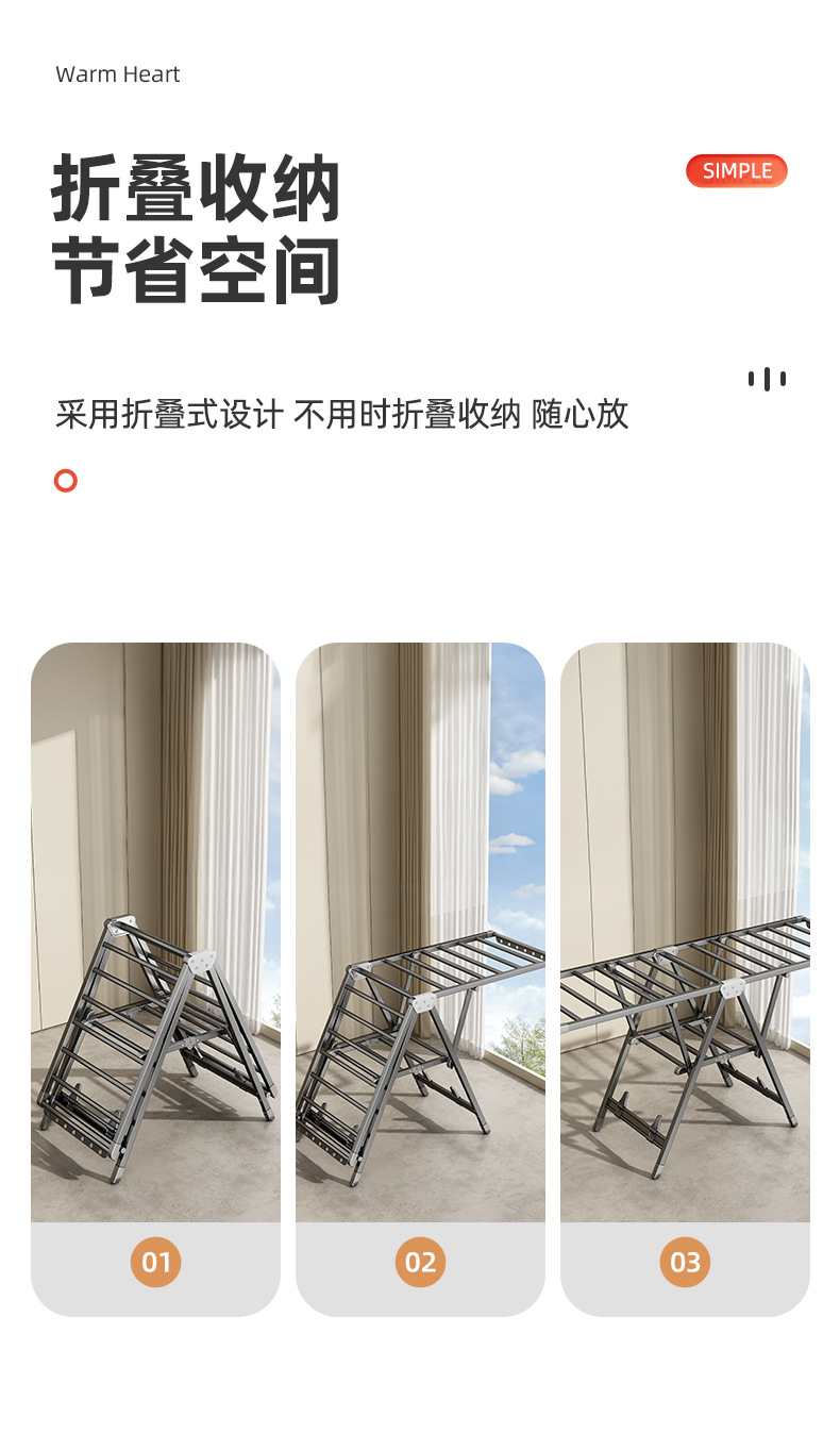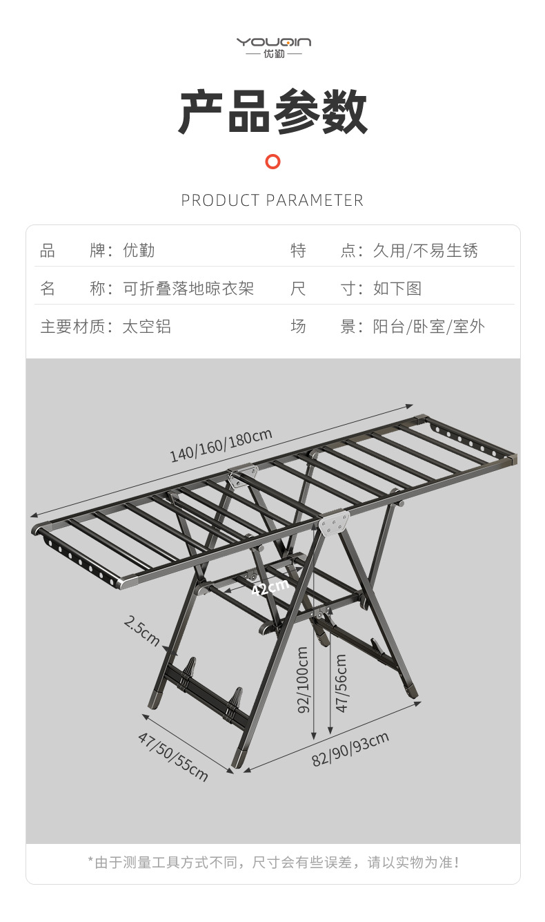 Youqin 접이식 옷 건조 랙 발코니 홈 바닥 스탠딩 알루미늄 합금 옷 레일 침실 야외 퀼트스토어 가기