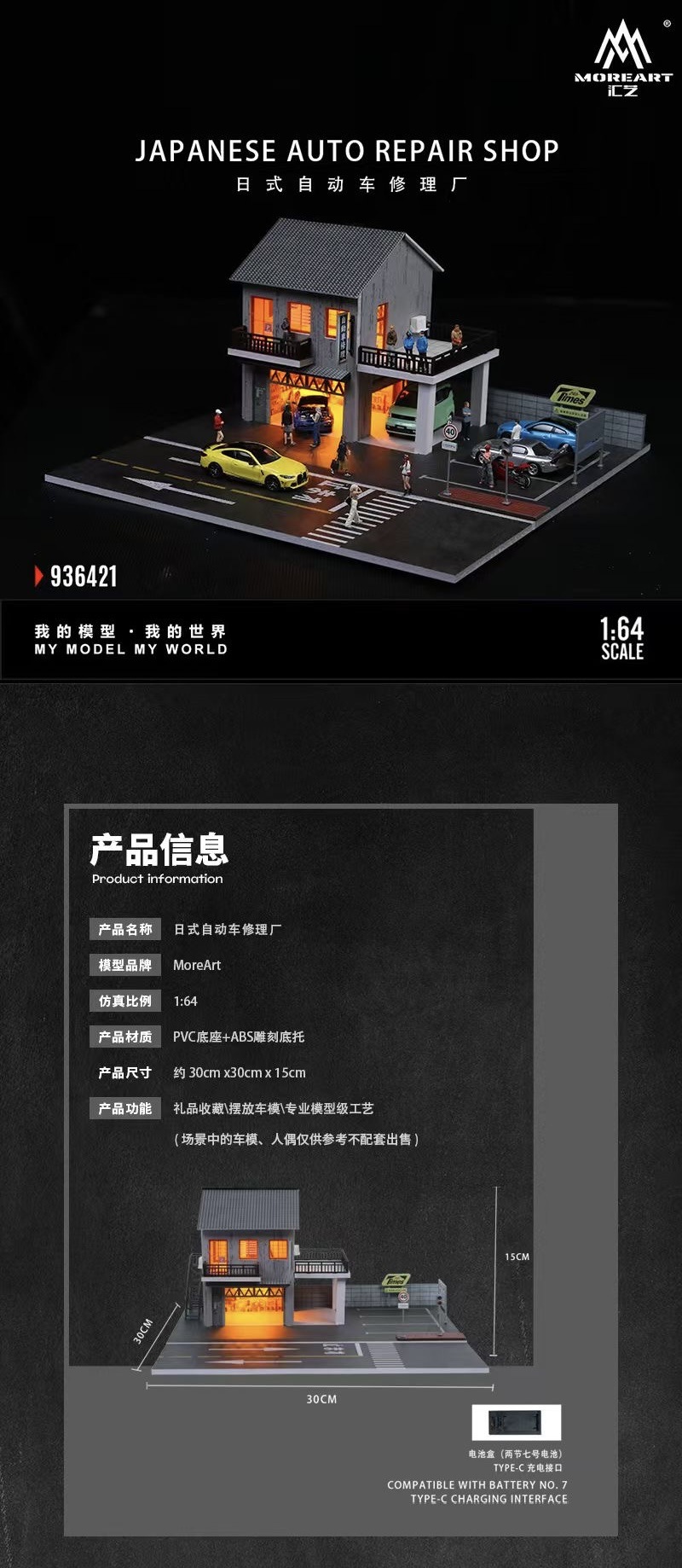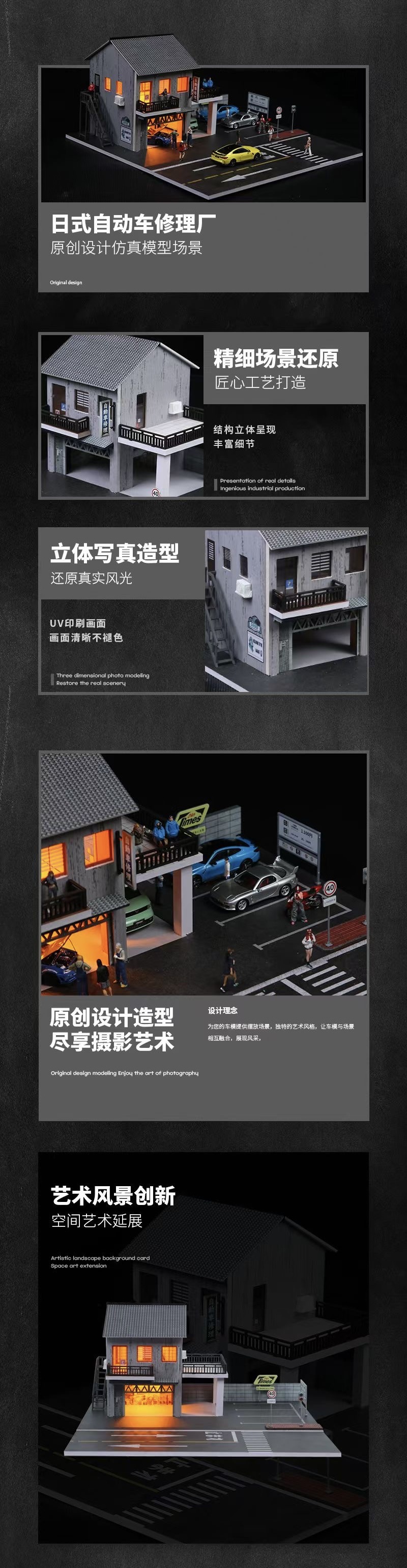 64 스케일 일본식 자동 수리점 조명 장면 시뮬레이션 모델스토어 가기