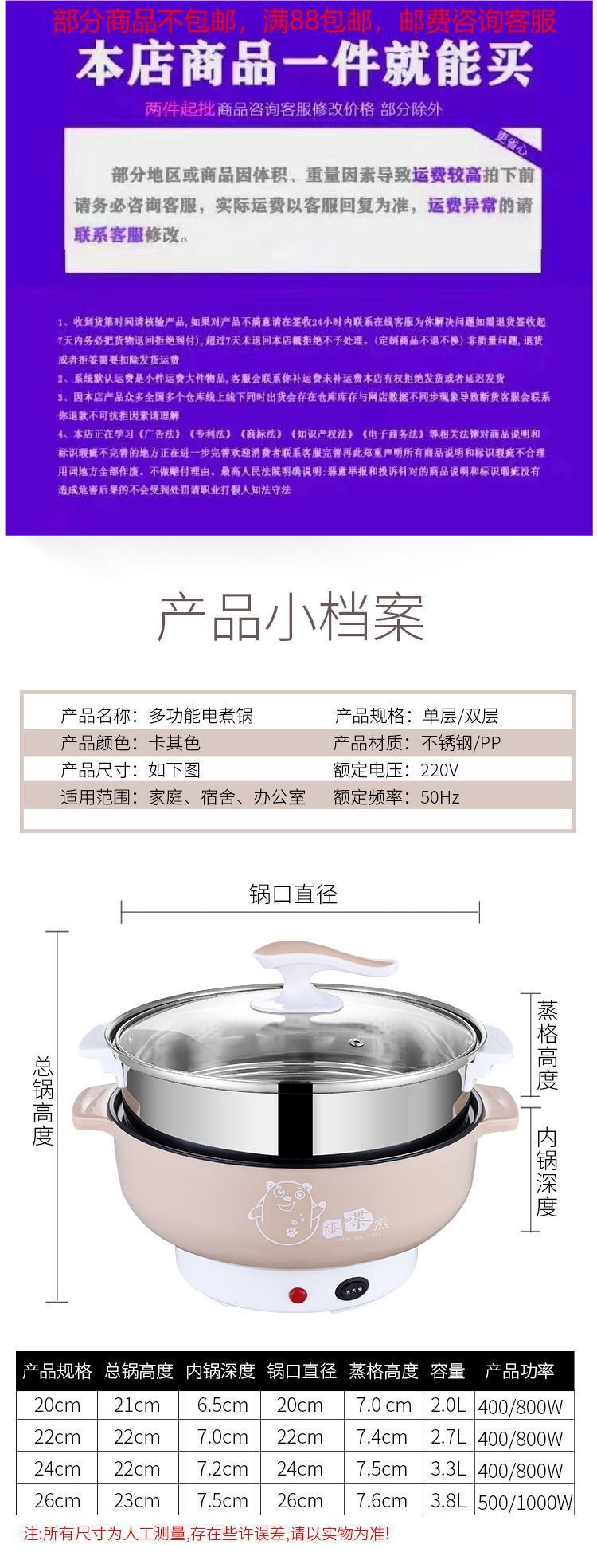 전기 냄비, 다기능 전기 냄비, 학생 기숙사 미니 전기 냄비, 소형 전기 냄비, 가정용 전골, 붙지 않는 소형 냄비