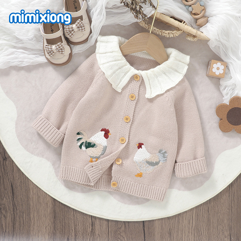 봄 가을 겨울 새로운 유아 니트 귀여운 병아리 자수 아기 소녀 코트 탑