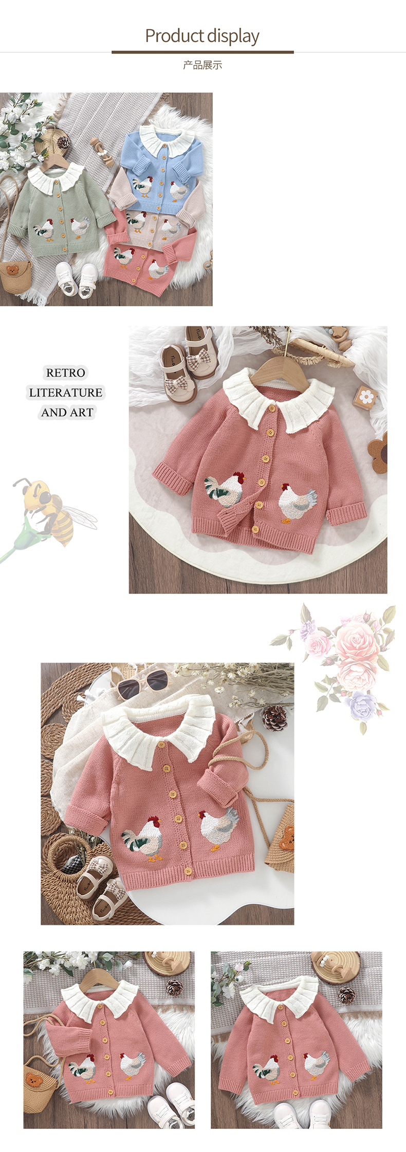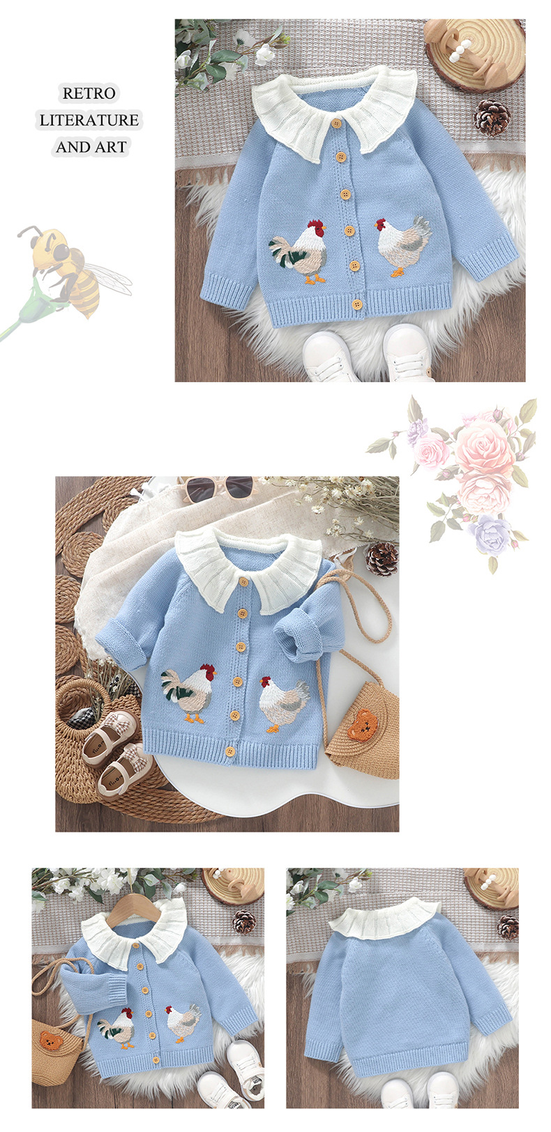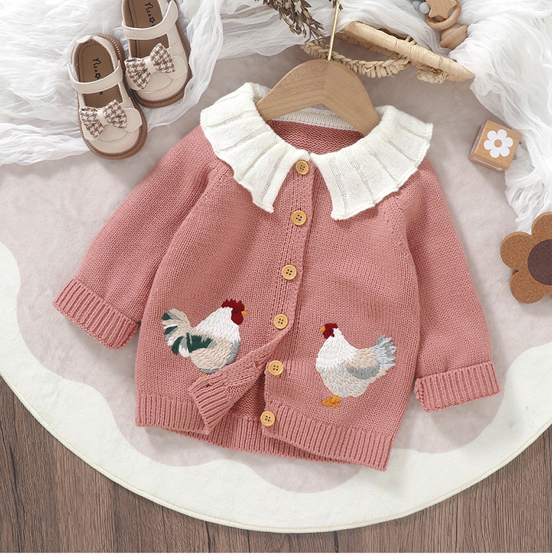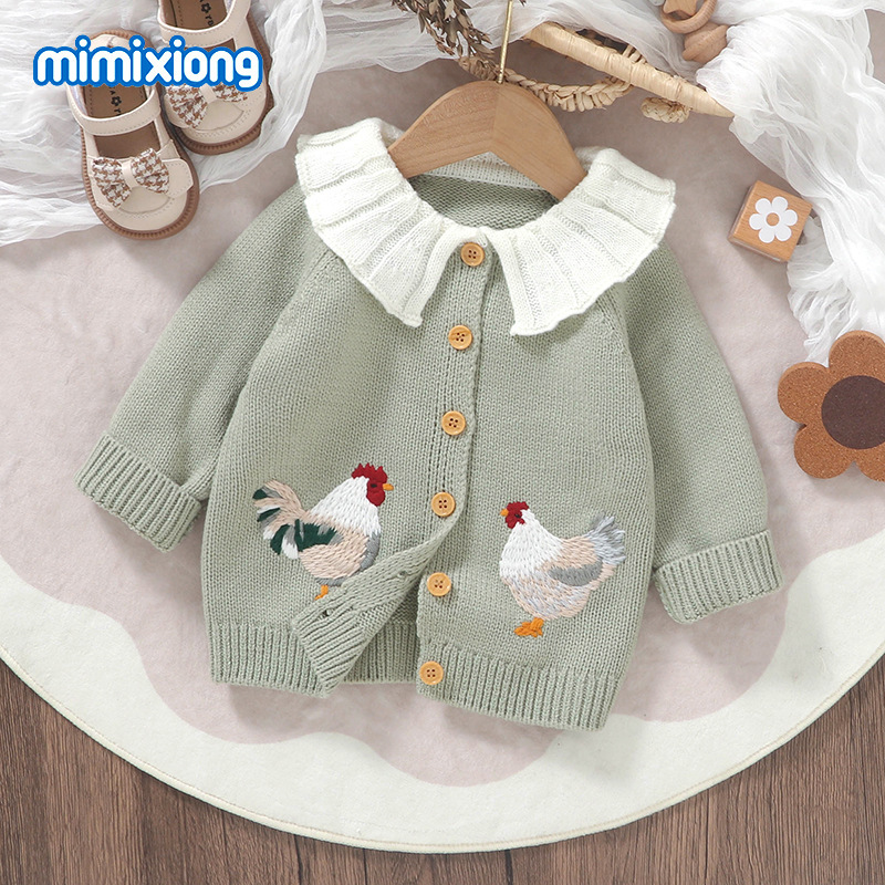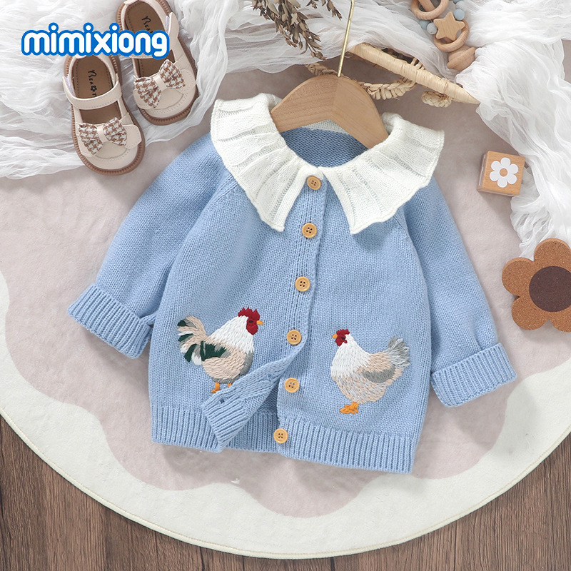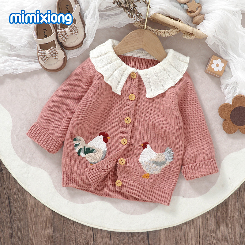 봄 가을 겨울 새로운 유아 니트 귀여운 병아리 자수 아기 소녀 코트 탑스토어 가기