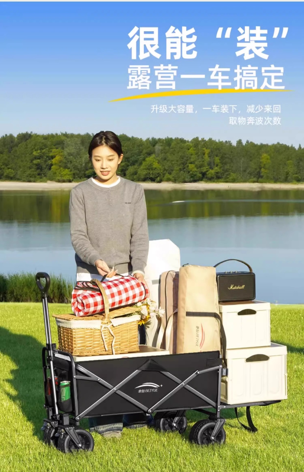 캠핑카 트레일러 카트 야외 여행 캠핑카 후면 도어 카트 피크닉 풀링 익스프레스 접이식 소형 트레일러