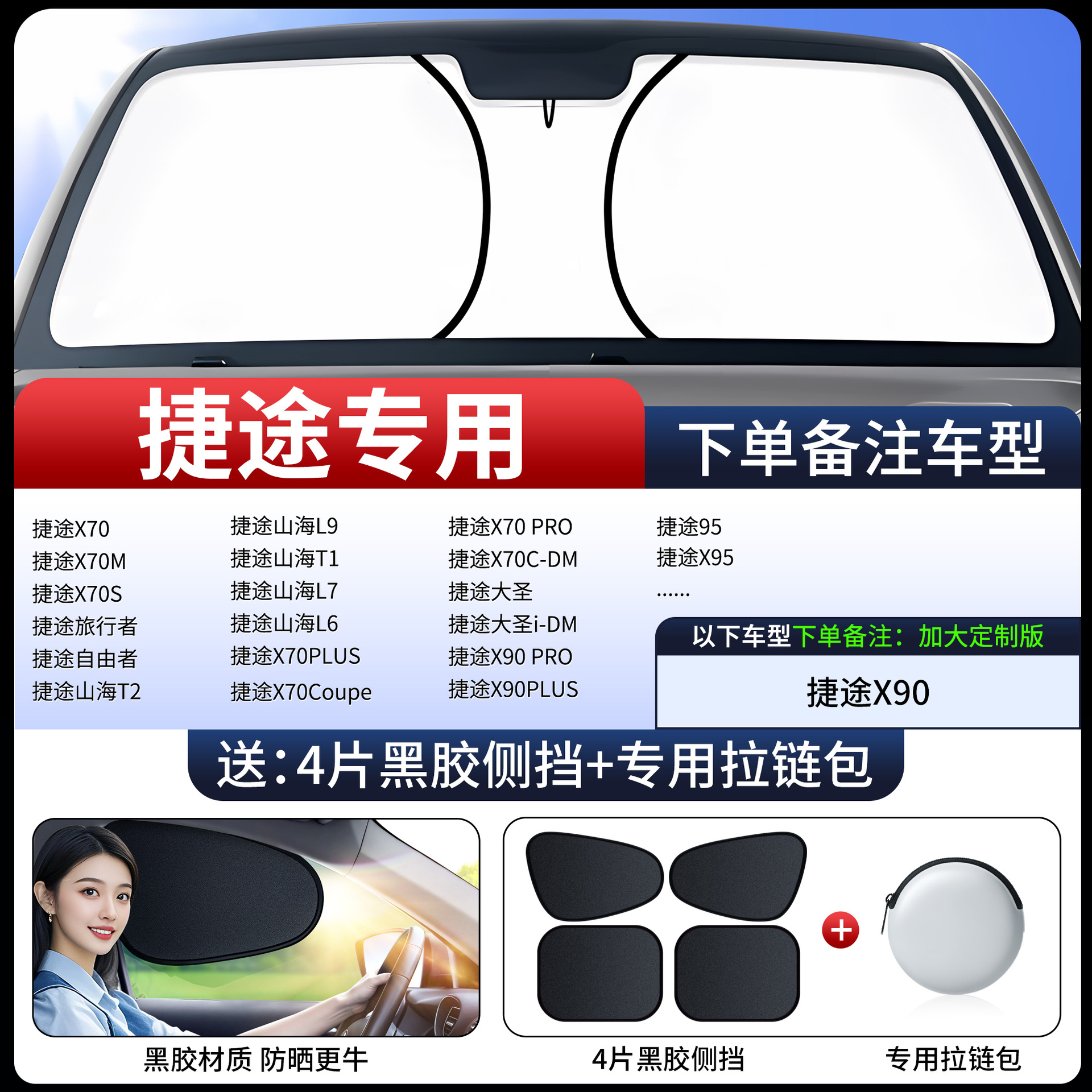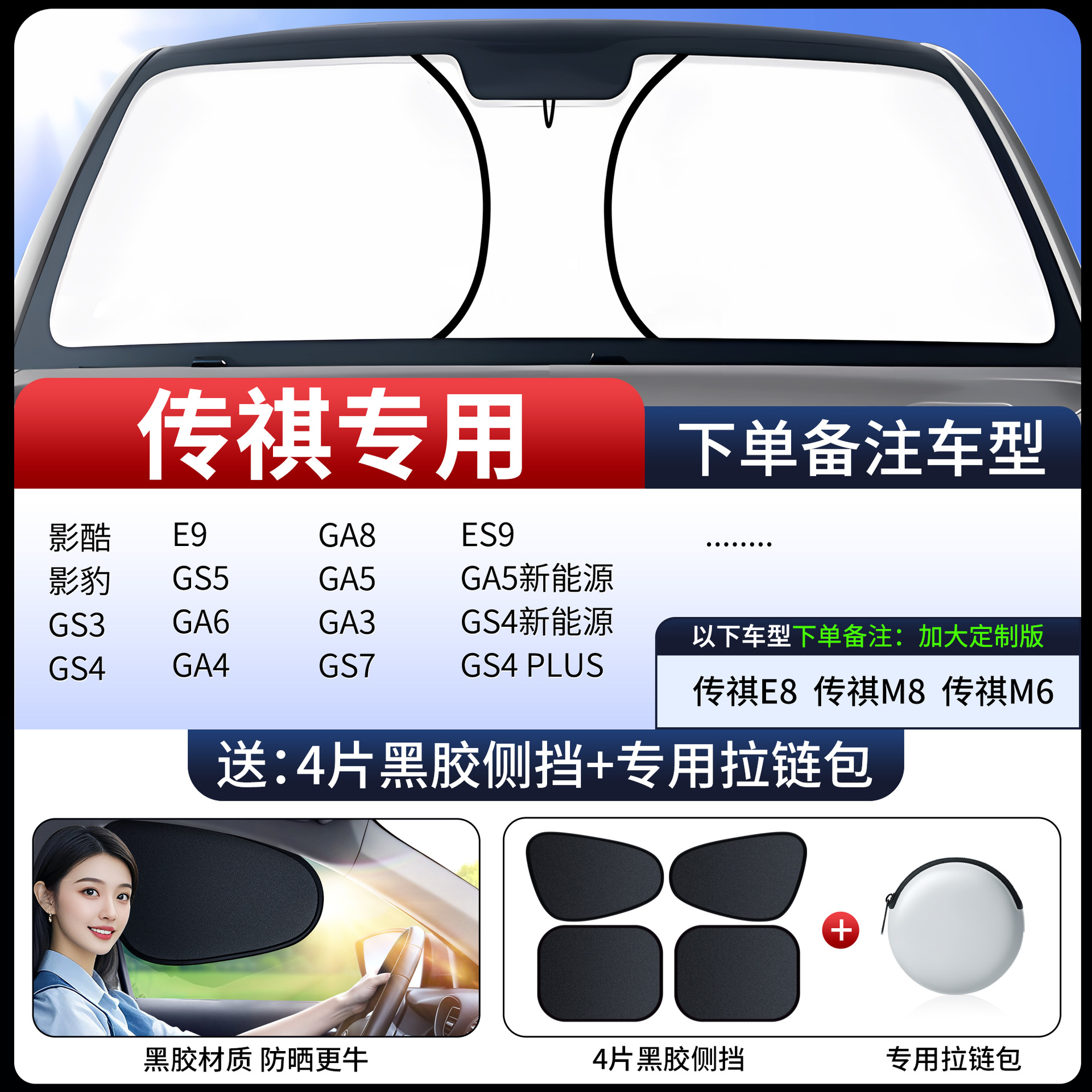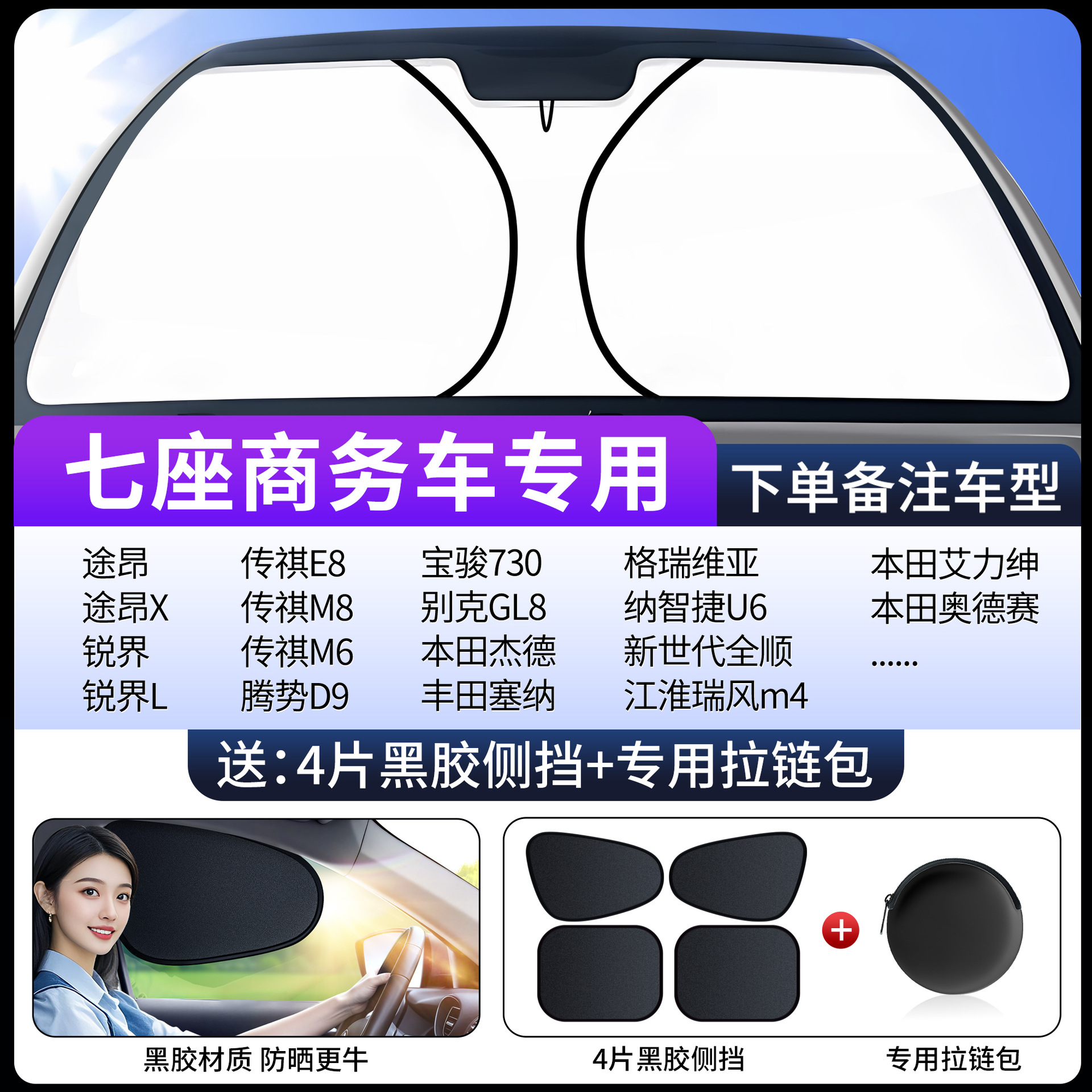 • [7인승/MPV 상용차 확대 버전 특별 촬영] 비닐 사이드 가드 4개 무료 + 특수 지퍼백丨하드코어 자외선 차단 기능이 더욱 강력해졌습니다.