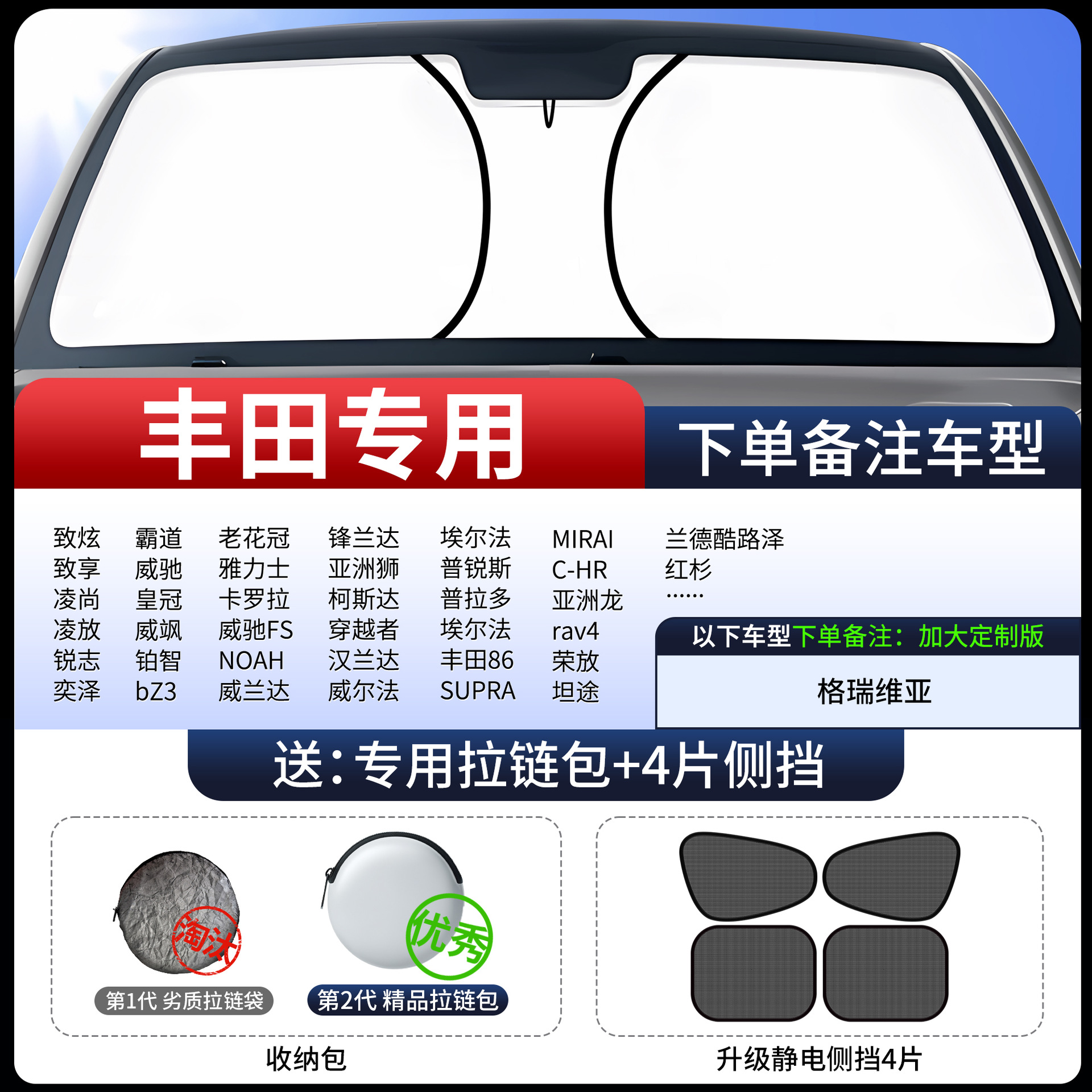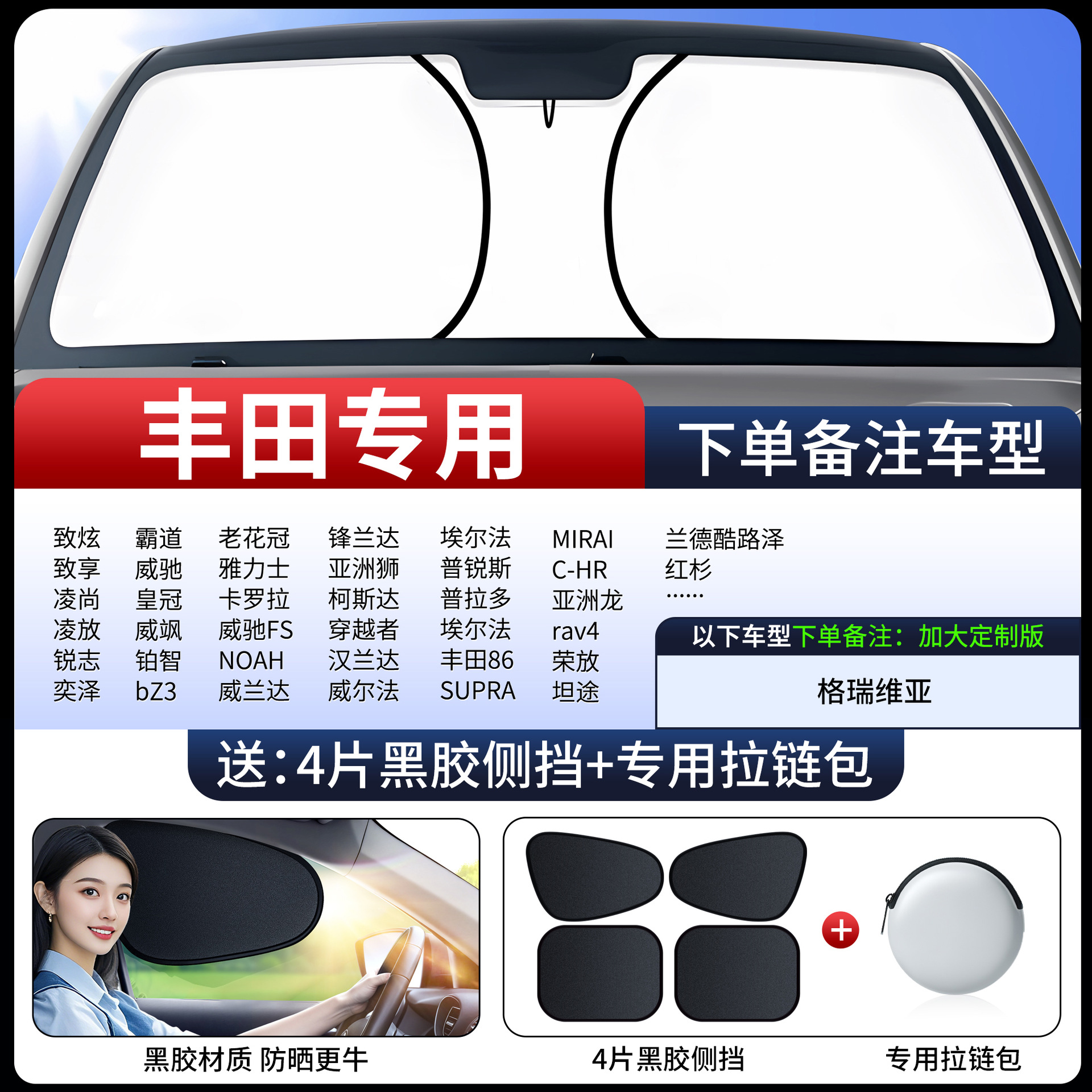 • 1:1 하이엔드 커스터마이징 [도요타 전용] 비닐 사이드 가드 4개 무료 + 특수 지퍼백丨하드코어 자외선 차단 기능이 더욱 강력해졌습니다.