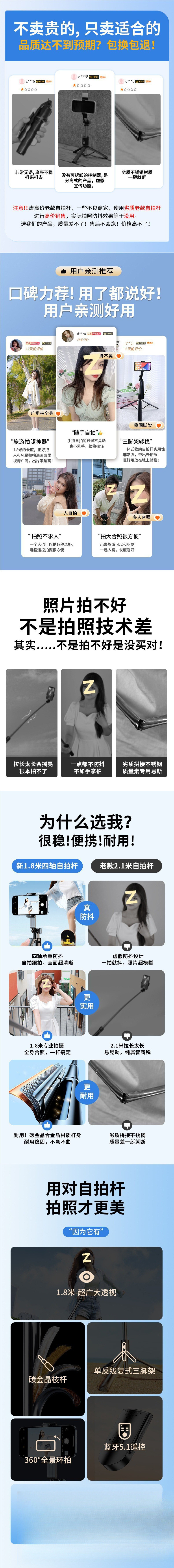 • 흰색【1.8m 손떨림 방지 모델】4축 손떨림 방지★브이로그 후속촬영★탄소강 샤프트★블루투스 원격 제어