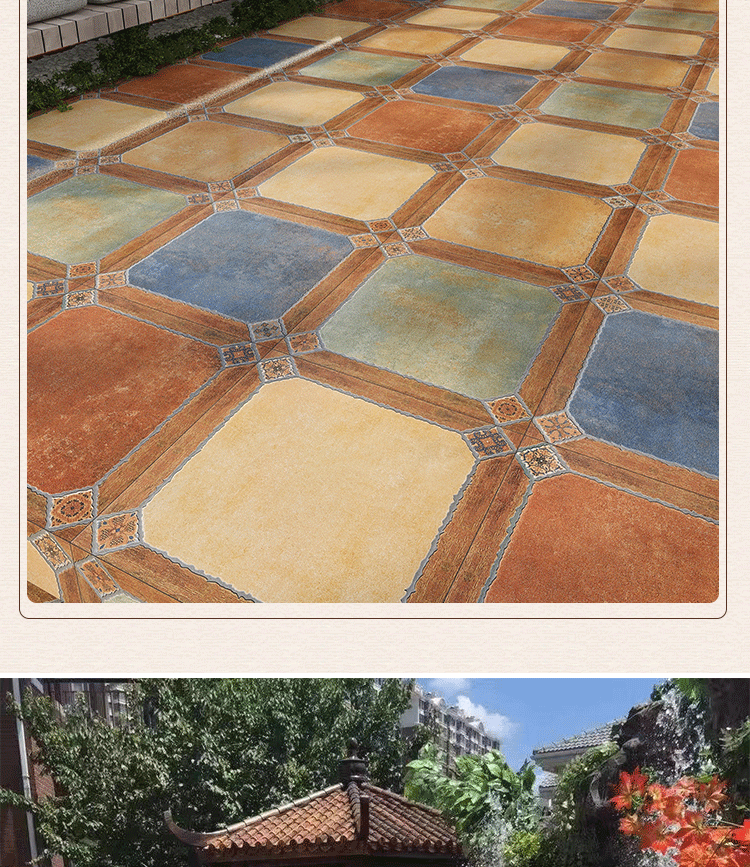 정원 타일 600x 미국 600 복고풍 타일 야외 안뜰 바닥 타일 미끄럼 방지 테라스 마당 발코니 골동품 타일스토어 가기