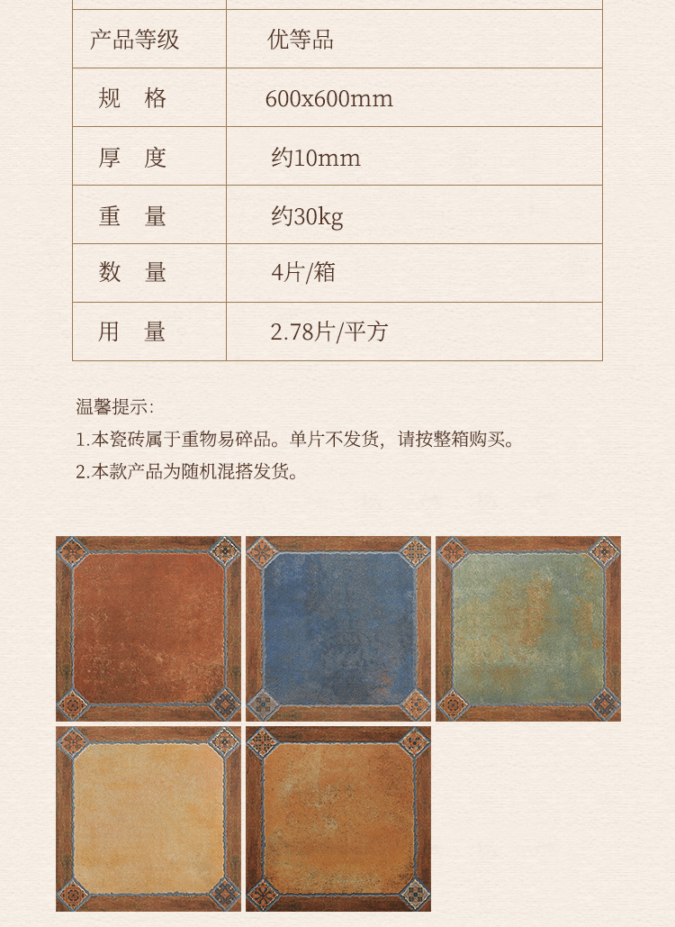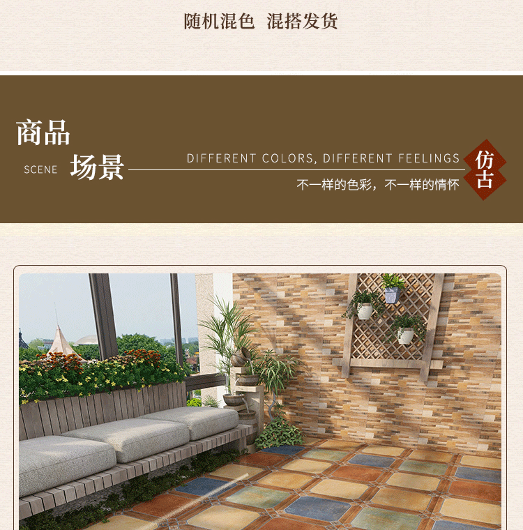 정원 타일 600x 미국 600 복고풍 타일 야외 안뜰 바닥 타일 미끄럼 방지 테라스 마당 발코니 골동품 타일